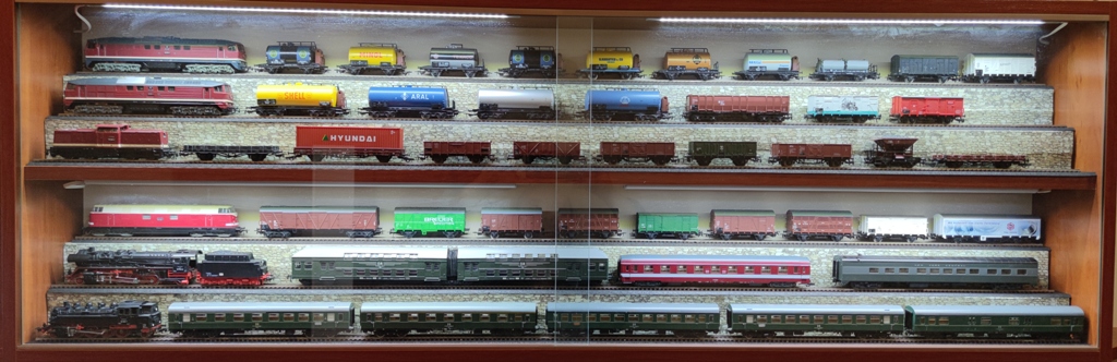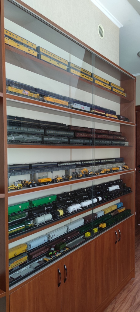 На этих выходных закончил восстановление выставки. Правда, подсветку сделал только в одном шкафу. Делал я ее еще до войны, во втором шкафу просто не успел. Шкафы находятся в коридоре, фотографировать пришлось телефоном с близкого расстояния. Поэтому на фотографиях геометрические искажения и не совсем удачные ракурсы. Второй шкаф находится напротив окна, поэтому чтобы минимизировать отражение окна в стеклах пришлось снимать сбоку.