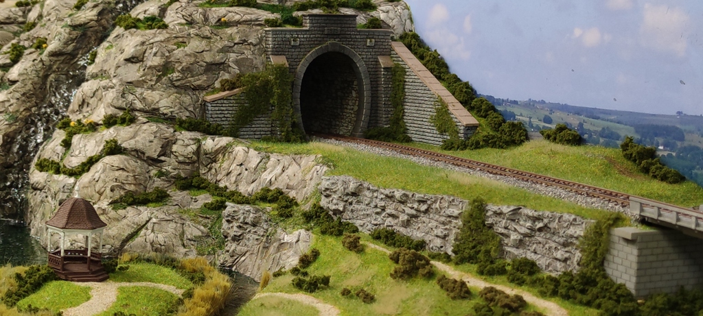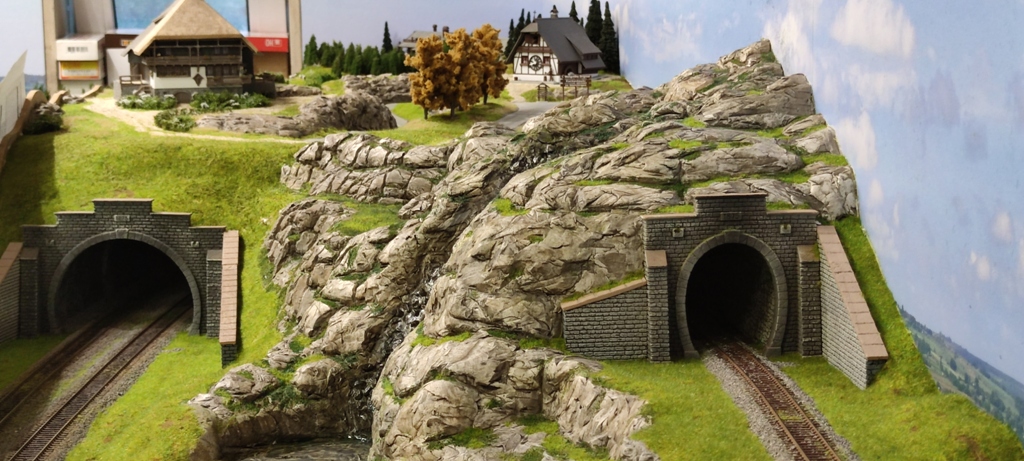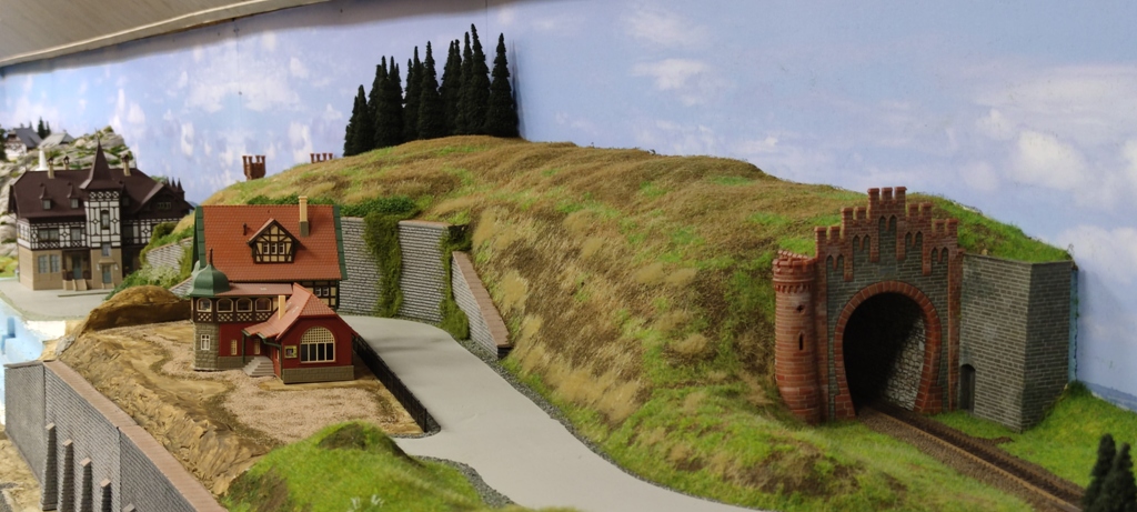 Постепенно рельефные работы по макету приближаются к завершению. Закончил последний туннель. На фотографиях показаны основные этапы работ. Из-за ограниченного места пришлось сделать подпорные стены у подножия горы. Эту гору я решил делать без скал, но зато полностью покрытую лесом. И вот здесь возникла проблема. Начал "высаживать" елки, посмотрел и, увы, такой лес мне как-то не понравился...