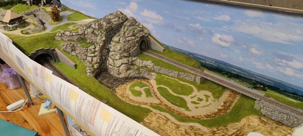 Перед самой войной я начал делать, наверное, самый интересный элемент макета - водопад. До войны успел сделать только основу рельефа из ЭППС и начал делать скалы. И вот продолжение.