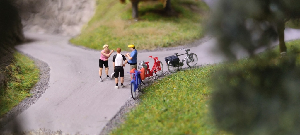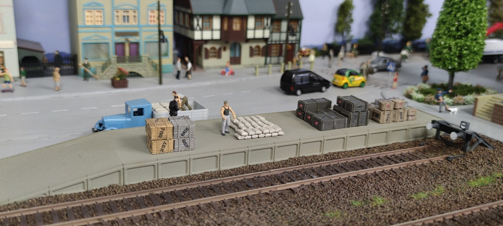 А по макету продвинулся совсем немного. Добавил пару сценок в Альпах и на станции в Старом городе появились грузы и, соответственно, грузчики. Неожиданно для себя обнаружил отсутствие в закромах небольших грузовиков. Нашелся единственный, вот в него-то и грузят мешки. Будем считать, что это строители из какой-то глухомани приехали за цементом на том, что у них было... А велосипедисты спорят куда ехать. Здесь, как всегда, права женщина. :D Как-то так.