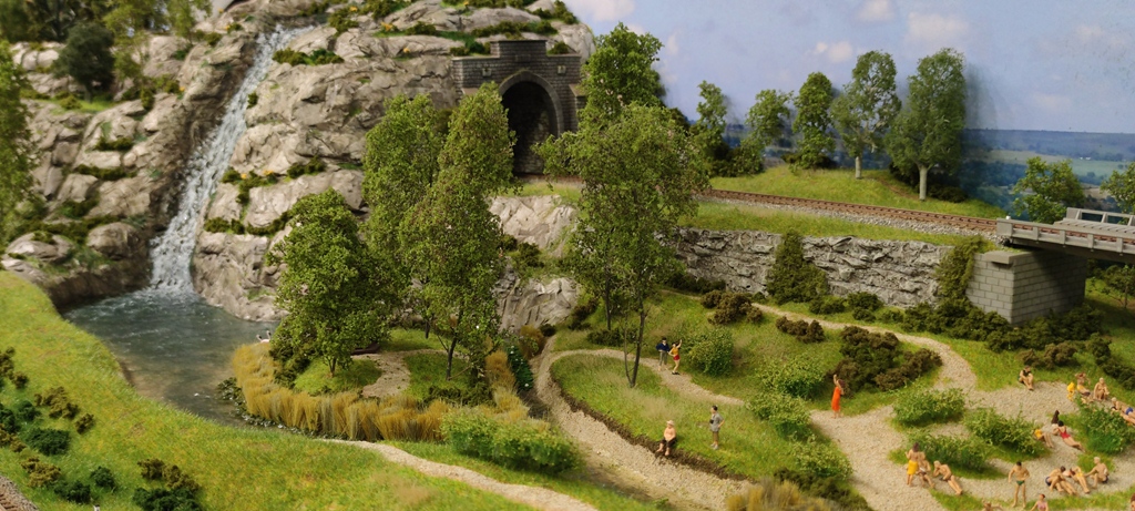 Пока едут недостающие привода для стрелок, сделал пляж. Пока еще не хватает кустов и деревьев, но это дело наживное.