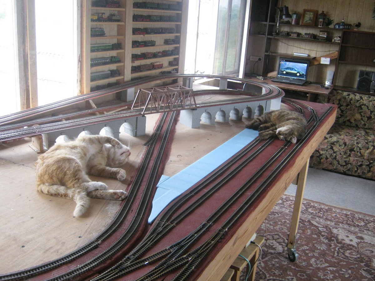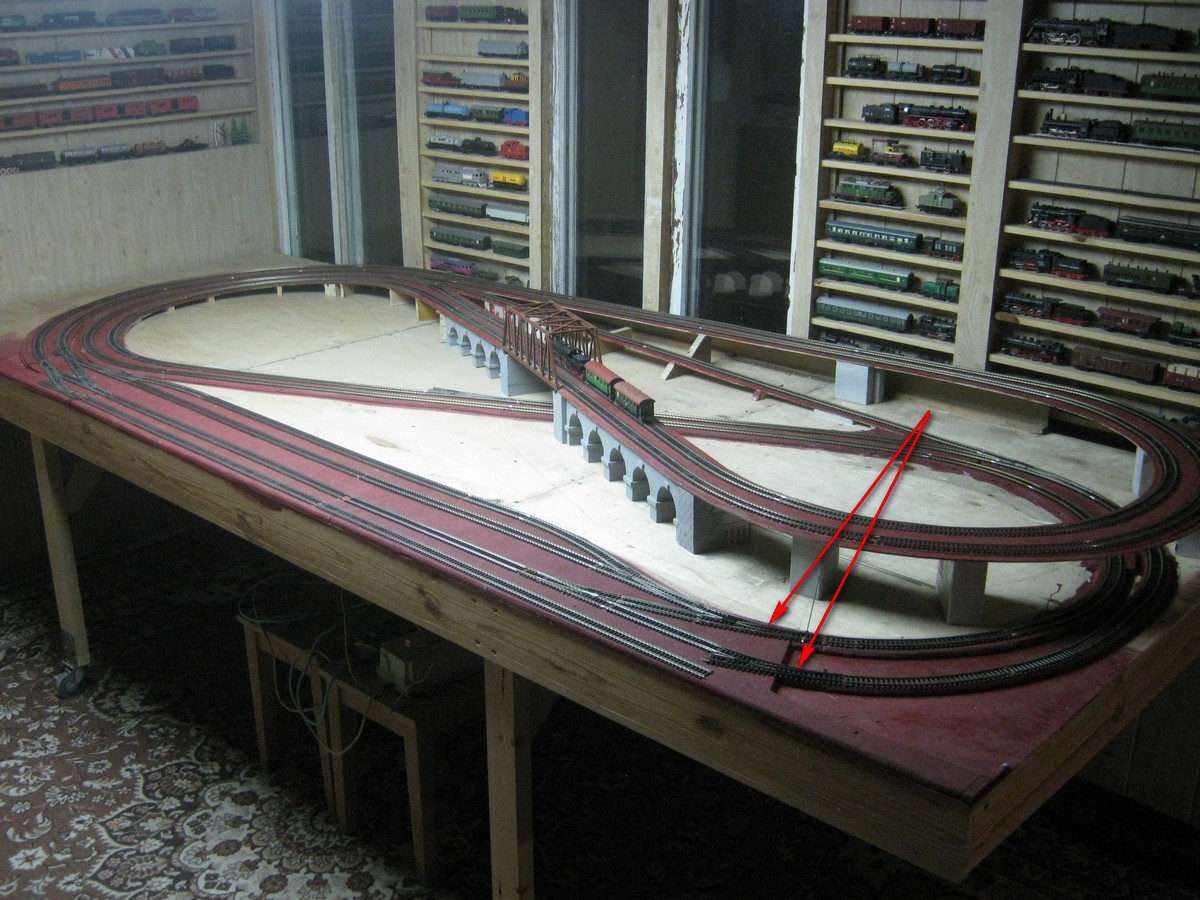 На днях получил от нашего коллеги http://oef.com.ua/viewtopic.php?f=11&t=744 обычные прямые стрелки Atlas. Добавил их к имеющемуся путевому материалу и горловина теперь выглядит так. Проблемы вроде исчезли, но для полной уверенности конечно надо интенсивно погонять, о чём уже упоминал. Только никак не получается...