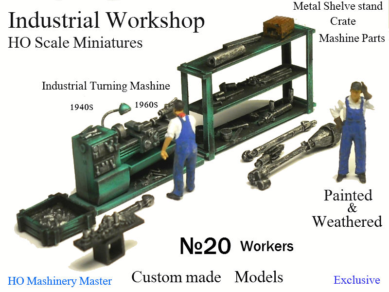 Мне достались только станки. Вот все вентили, возможно какую-то проводку и прочее, предстоит ещё добавить. Станки будут видны, только через ворота. Либо при условии, что я сделаю съёмную крышу в депо, через крышу. Но хочет если уж делать, то делать. Макет ведь для себя и для души. В административную часть, вероятно поставлю стеллажи, может одно из помещений, тоже под мастерскую. Склад со стеллажами. В офисную часть, подбираю из нескольких вариантов композиций, наборы фигур. Со столами и всем офисным антуражем. Имеется у производителей несколько. Ещё хочется озвучить макет и часть фигур сделать подвижными. Видел на Рижском вокзале на макете и мне эта подвижность фигур, очень понравилась. Но это не скоро и показ из разряда - хочется.