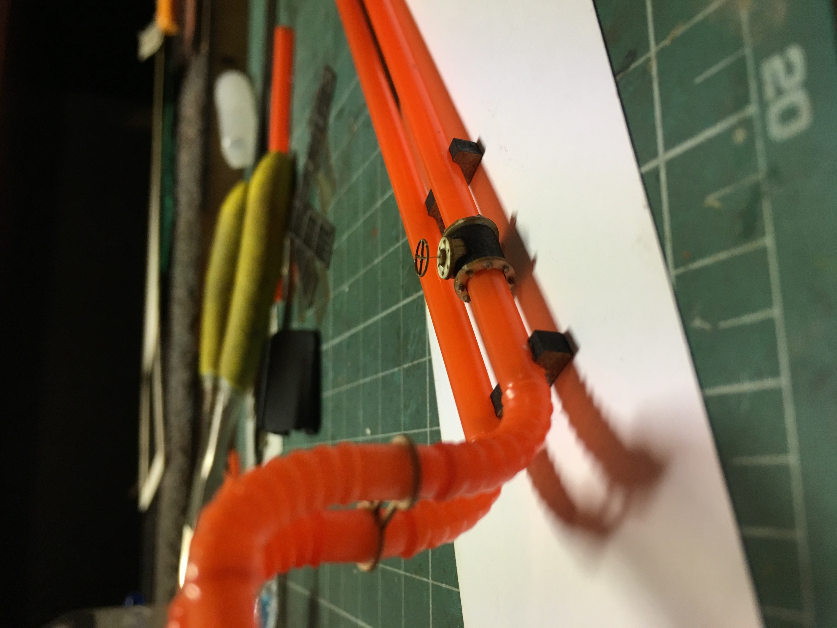 на что фантазии хватит. Окон достаточно в пристройке нефтекачки, интерьер при освещении, должно быть неплохо видно. Собственно ниже начало оформления трубопровода. Трубы из трубочек от детских соков Агуша. Сгибы, как и возможно все трубы, заверну в подобие утеплителя. Пока не углубился в эту авантюру, хочется мнения услышать. Пилить Шуре гири дальше, или забить на это мероприятие? Внутри вентилей, скрою стык зеркальных деталей труб. От входа труба к полу опускается, идёт по полу пристройки и перед дверью в башню, которую тоже уже приготовил, так же поднимется и уйдёт над дверью в стену башни.