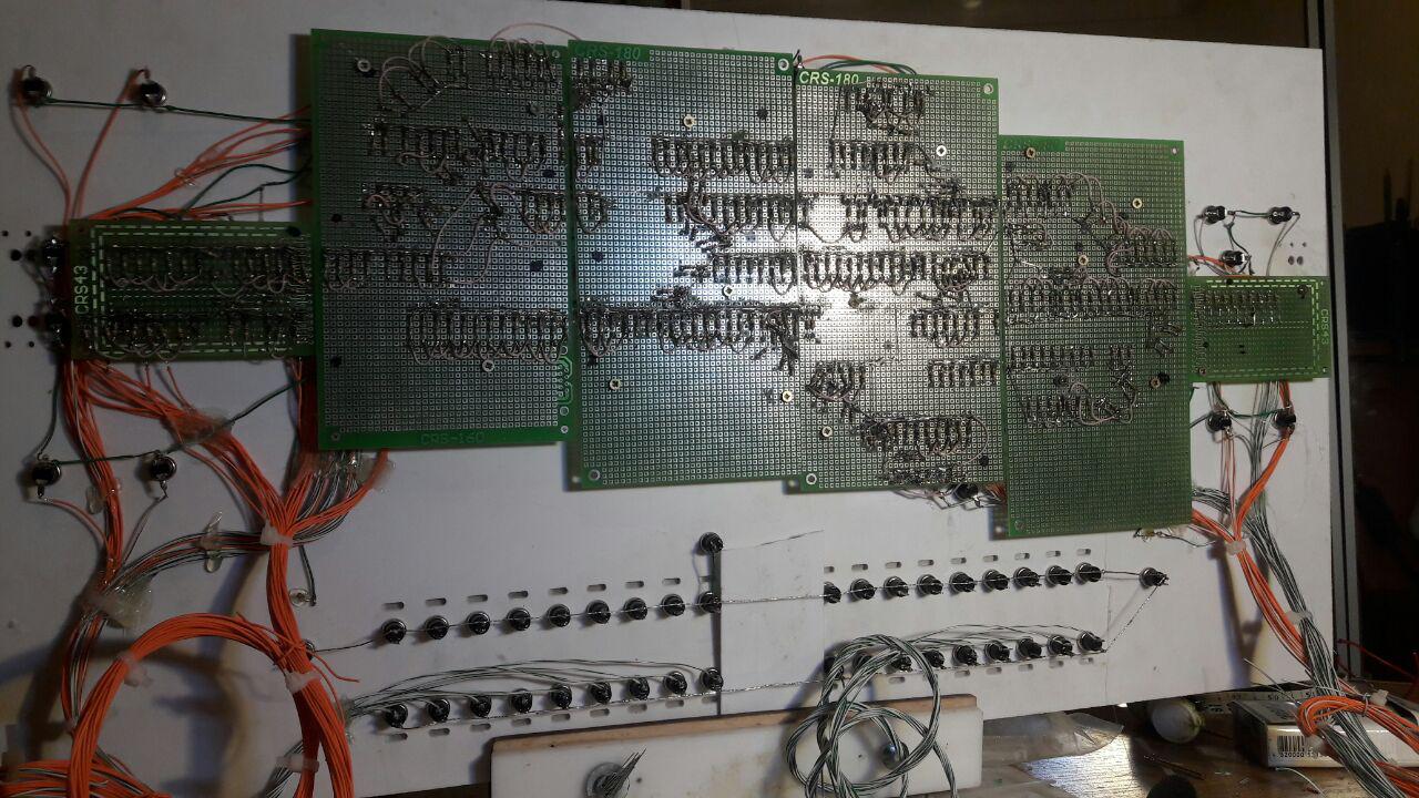 Почти закончили укладку путей на станции, осталось уложить полтора модуля. По пульту полностью пришлось перепаять светодиоды, теперь сделал их на платах. После того как перепаял светодиоды, начал паять провода) вышло около 30-40 метров провода.