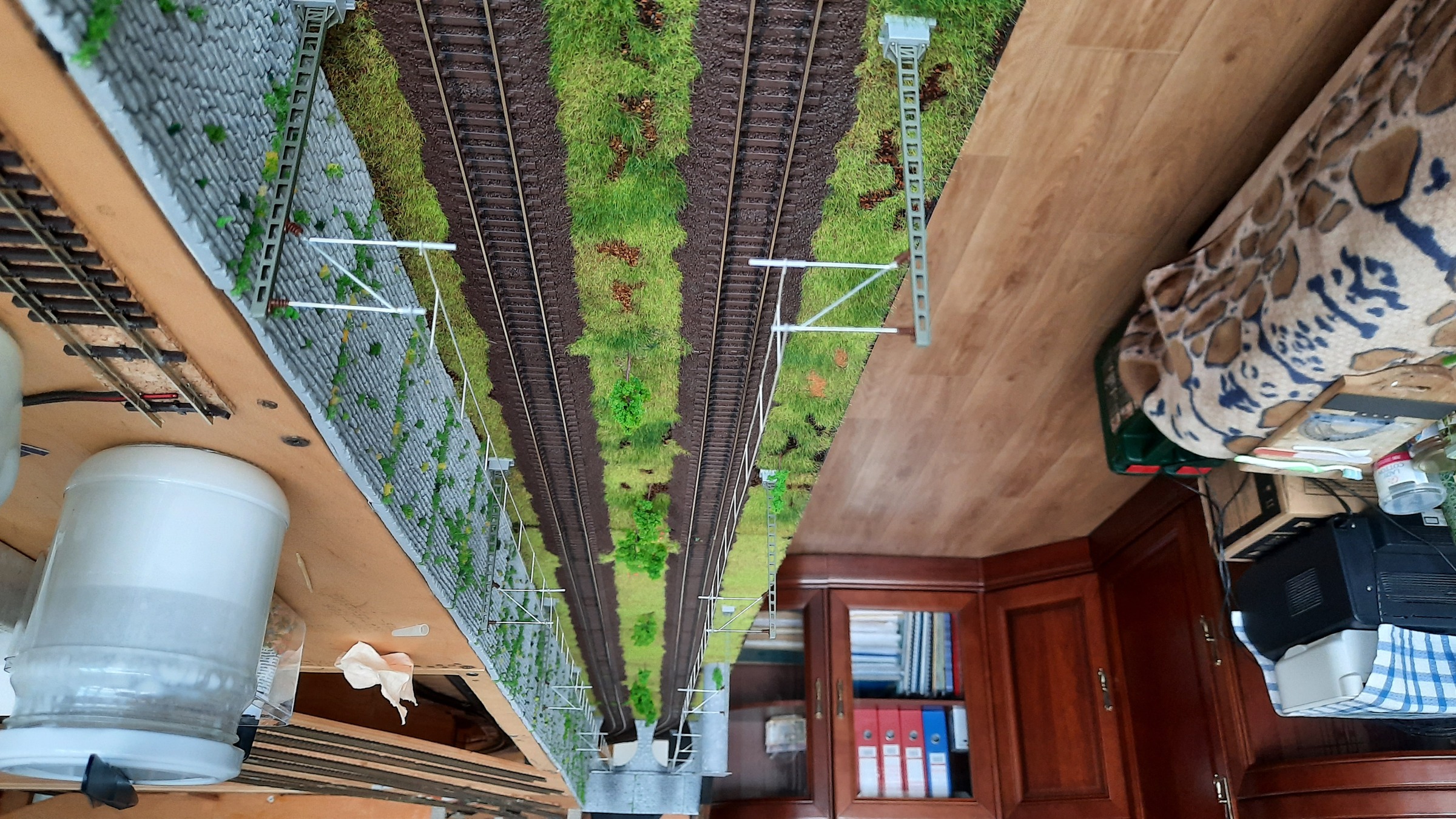Это не вынужденная мера. Просто когда я уже проложил пути на первом модуле, приступая ко второму, немного поменял в лучшую сторону расположение путей на двух подземных уровнях. А чтобы выйти на другую плоскость, пришлось S-образ легкий сделать... Я посмотрю как вся эта история себя поведет в дальнейшем. Пока всё гладко. Если будут проблемы - перекладу рельсы ровно...