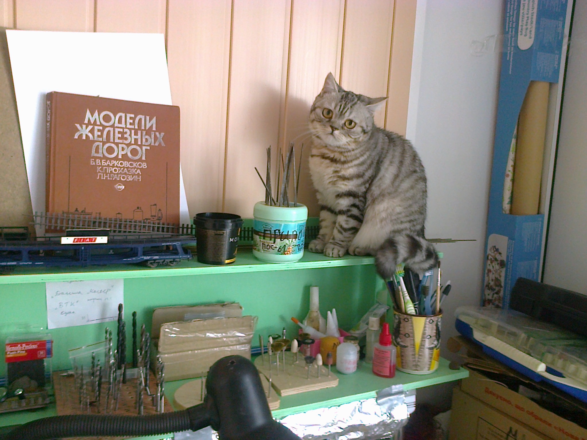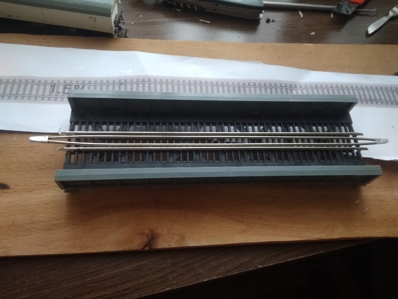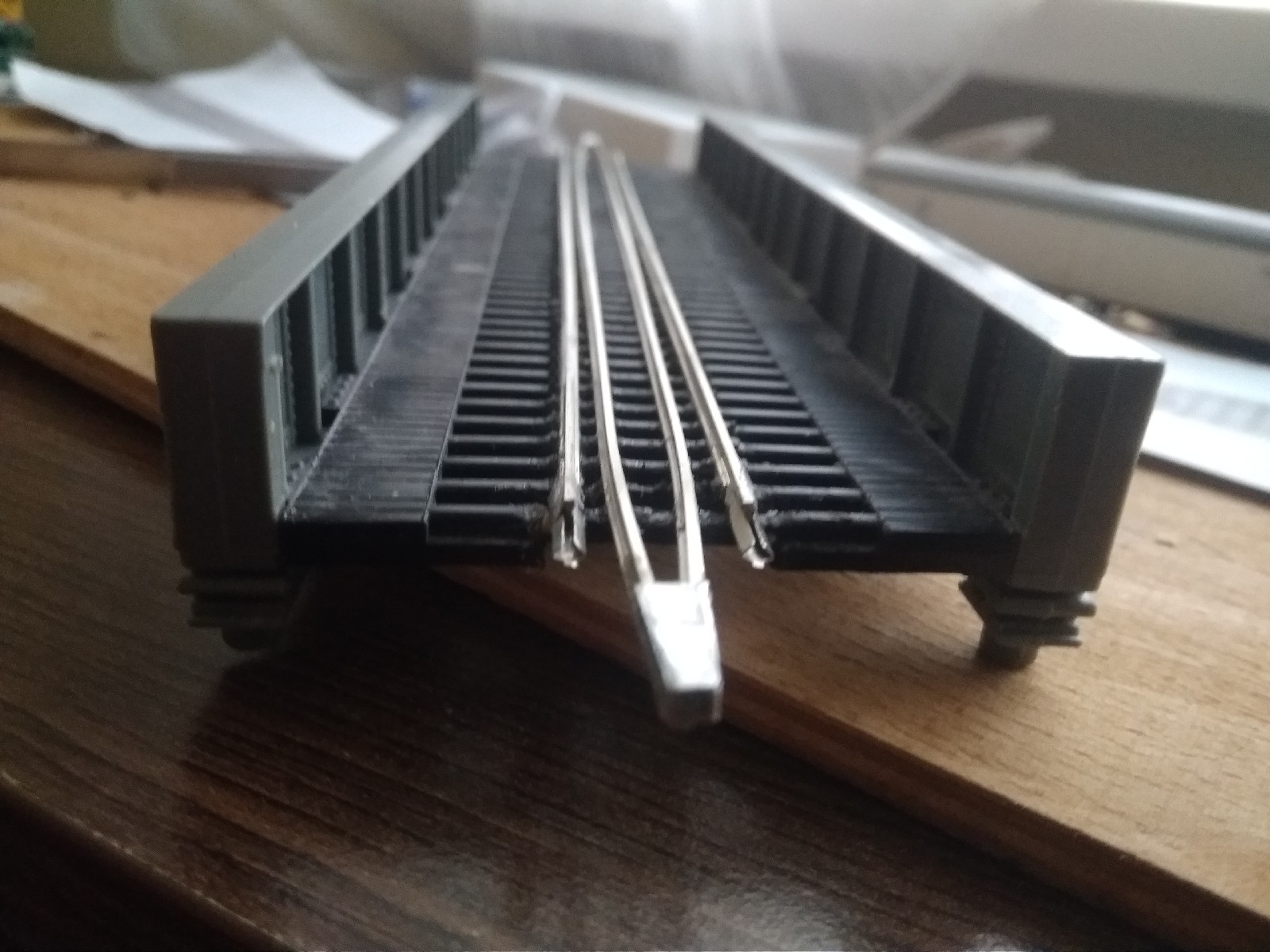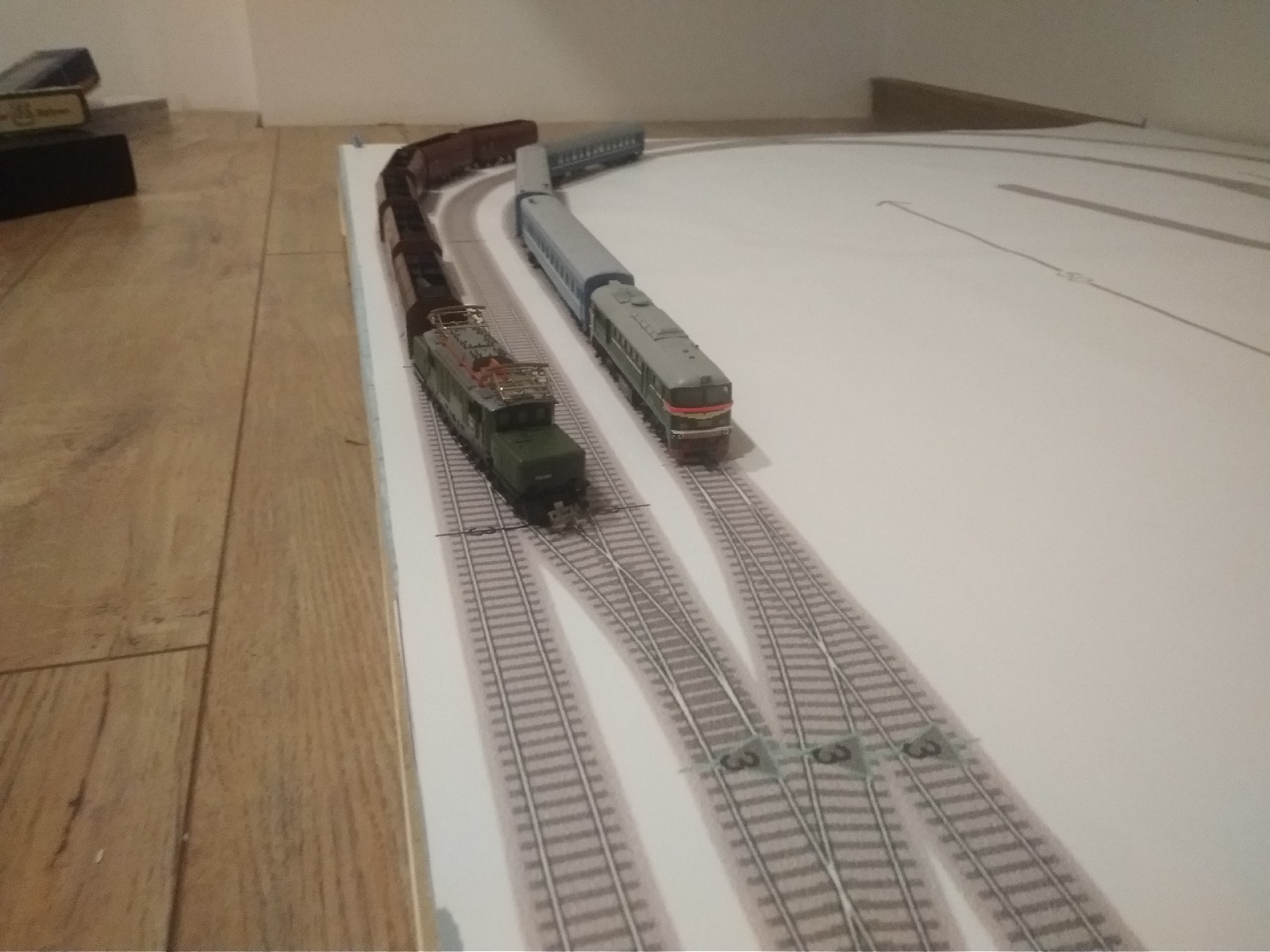 Тепер щодо бортиків - у мене на старому макеті вони зі шматка старої шафи, на фотках є. І вони надійно захищають рухомий склад від падіння з висоти внаслідок випадкового удару, у мене все таки дитина мала, тут якщо навіть макет лежить на підлозі, висота до головки рельса буде 5-6см, при чому по краях колії місцями ідуть по самій кромці. Також на них зручно монтувати всякі роз"єми, органи управління, я навіть подумую чи не впихнути на макет вольтметр/амперметр