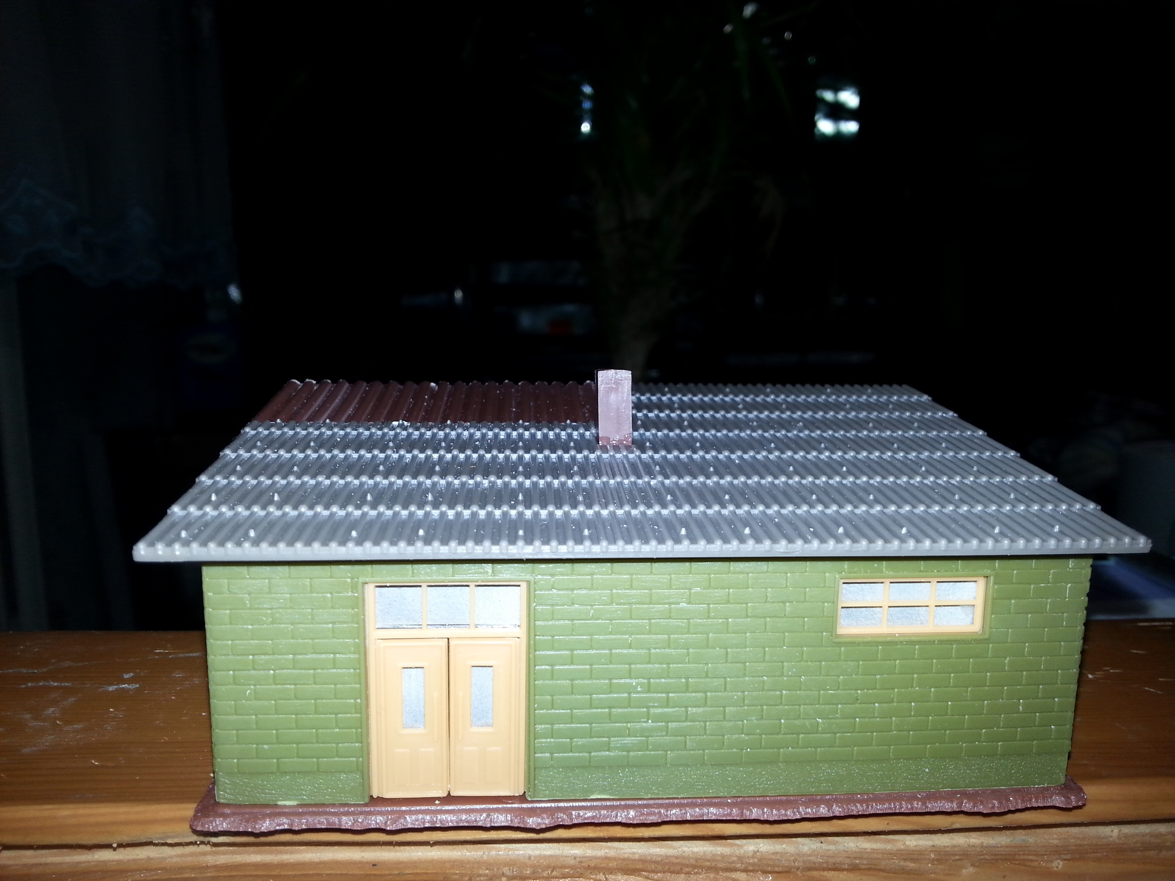Отличное здание. Можно для разнообразия сделать имитацию крыши с кровельным железом, окрашенным суриком ( красный грунт) или зелёным, на фронтонах написать , например, 1900 , но это уже из области помечтать...