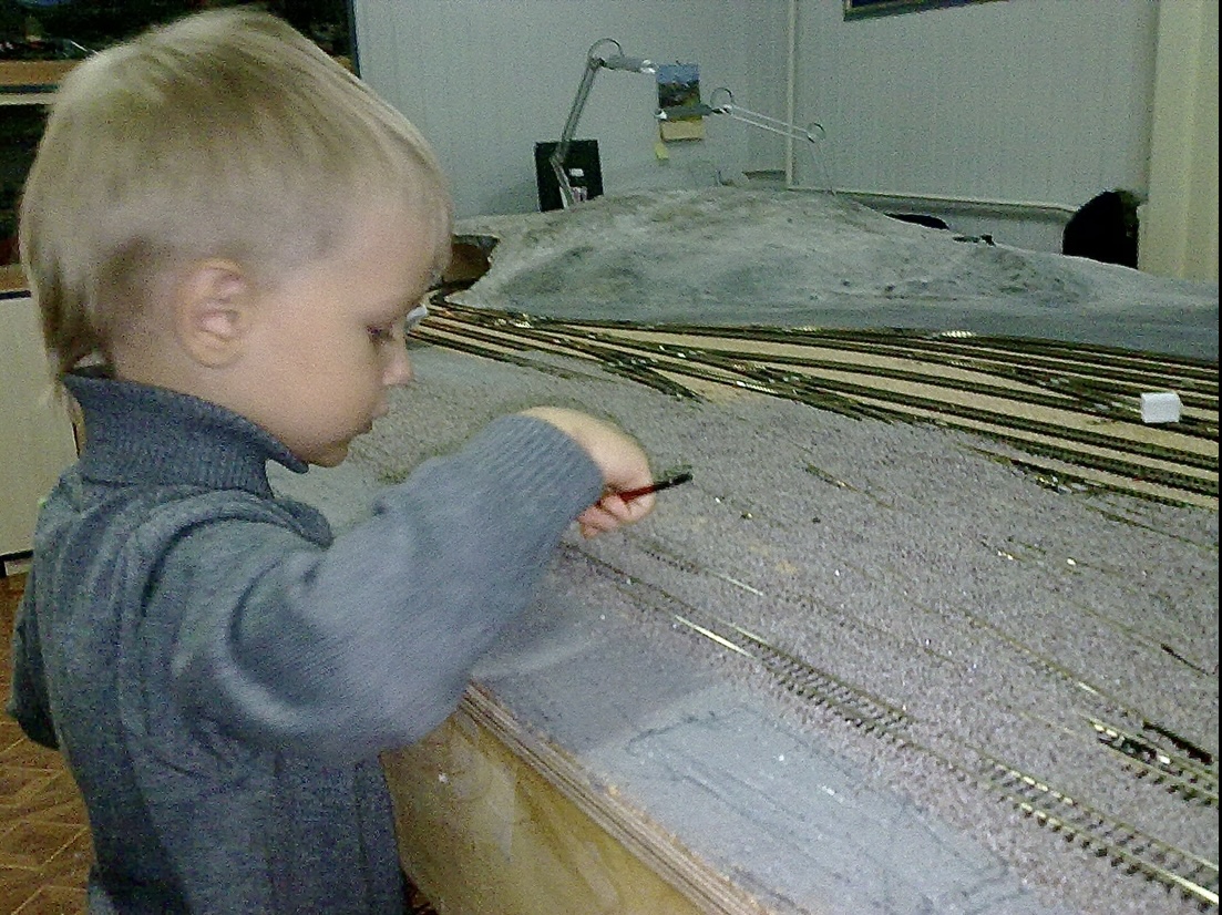 Немного помогала изготавливать деревья на макет, так мне дерево дешевле обходились, чем покупать фирменные.