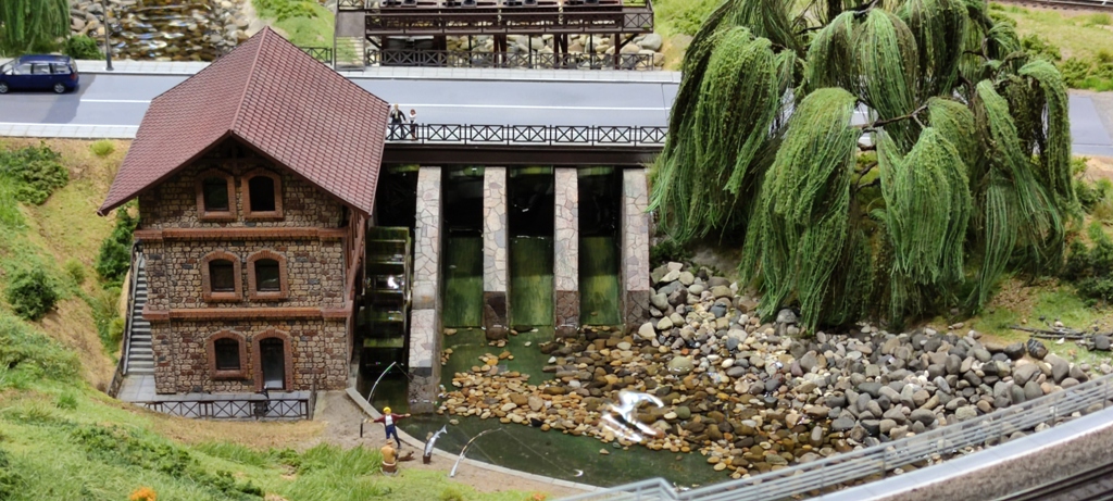 К идее реки с реальной водой я изначально относился весьма скептически, но ведь сделали таки. Вода течет, колесо на мельнице крутится, рыбаки рыбу ловят...