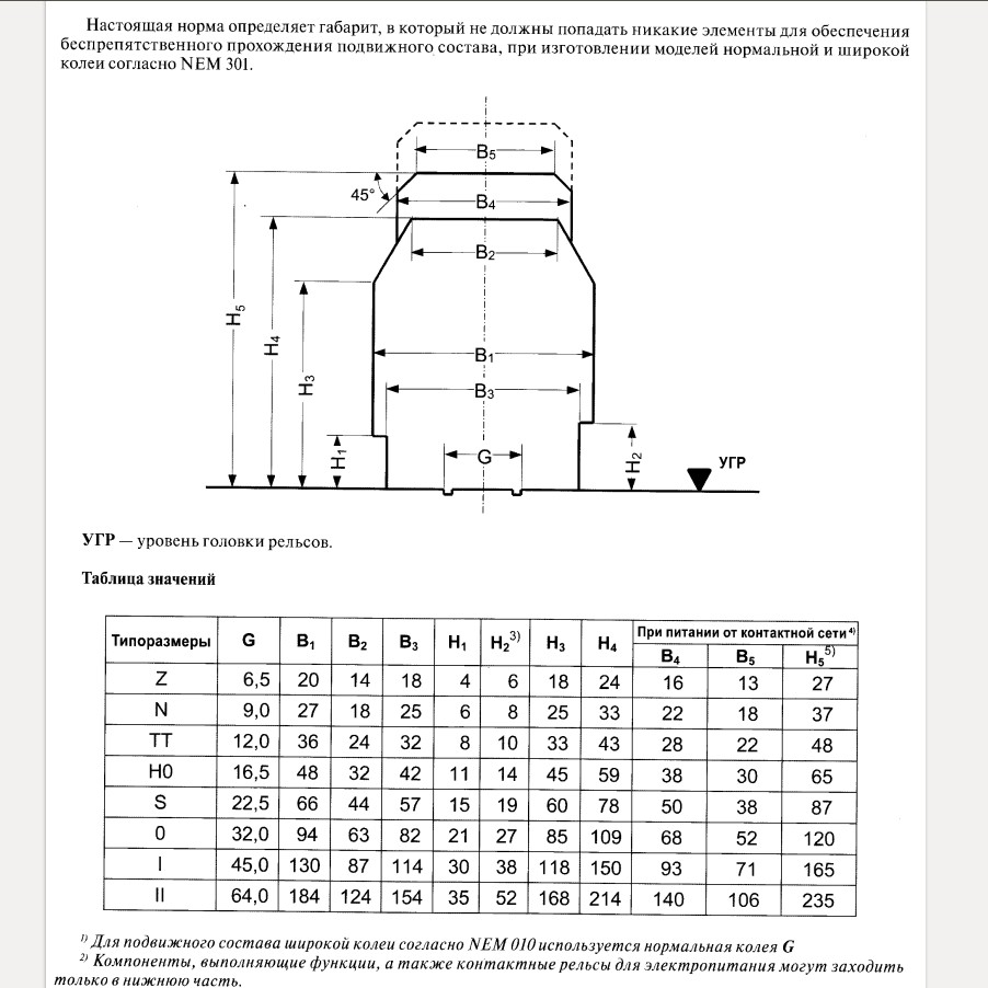 Контур верхнего строения пути принимается в соответствии с NEM 122.