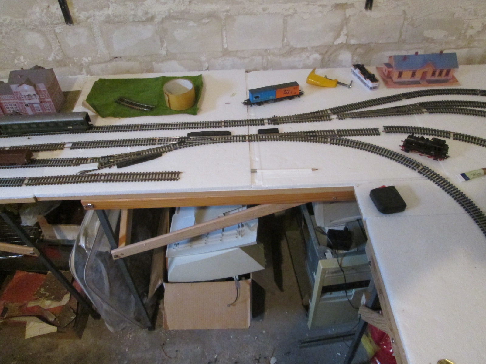 сегодня спустился к макету, соскучился по нему ) досыпал подъем купил я себе пробковый пласт под балласт высотой 5 мм, вырезал прямую и примерил
