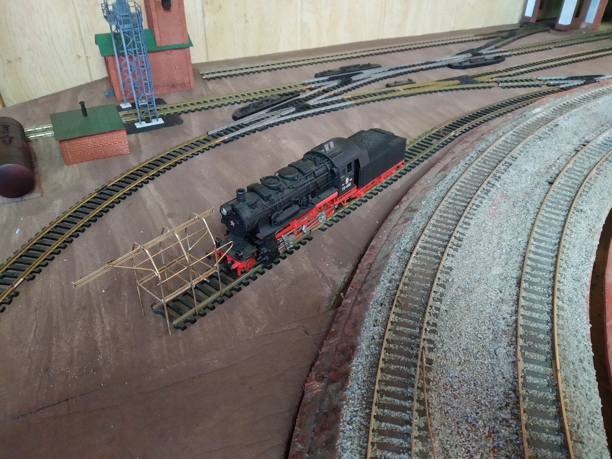 Пока нарисовалась такая заготовка. Латунный пруток 1,0 и 0,8. Рельсы нейзильбер(?).