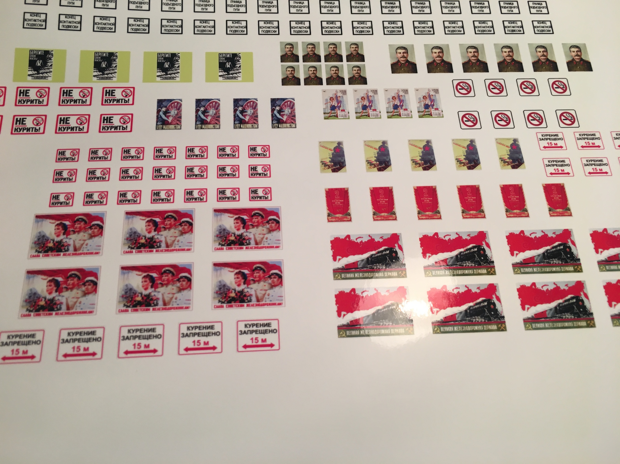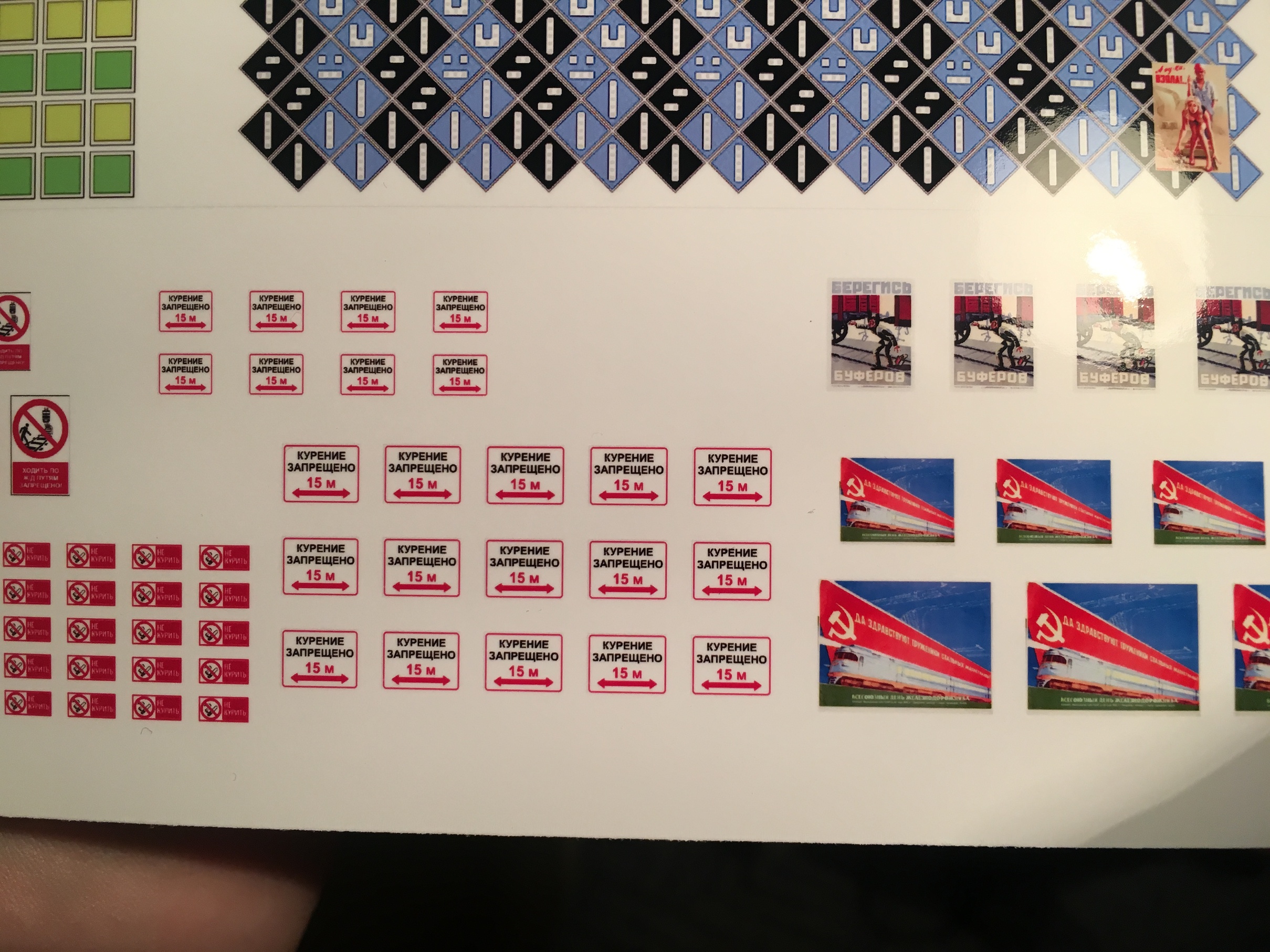 Не стал искать с телефона картинки, отснял с ноута. Часть собственно и использовал в распечатках. И у меня есть большая подборка советских плакатов на жд тематику. Частично и оттуда позаимствовал. Будут висеть в разных местах на территории.