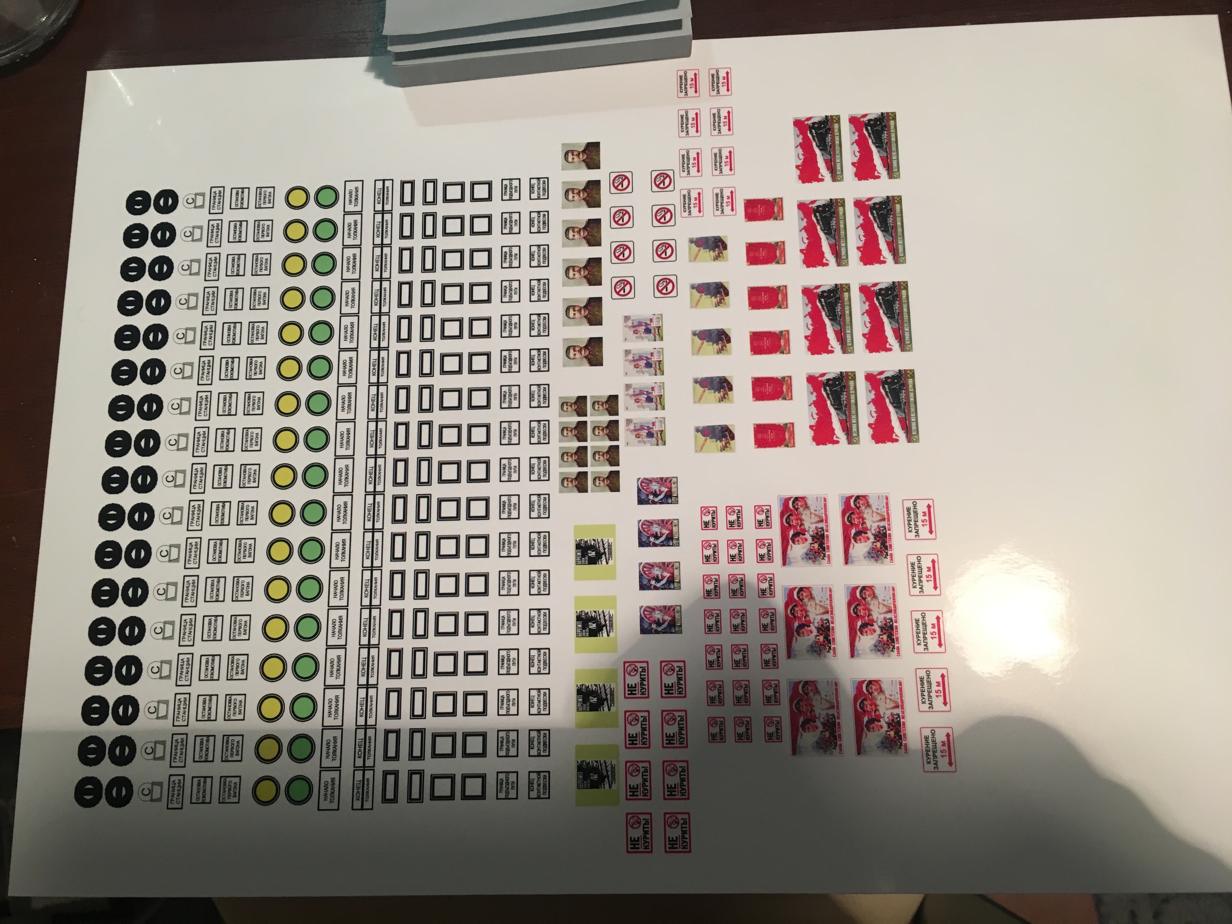 На этом пока всё. Пора бы уже заканчивать с интерьером и начинать заниматься экстерьером здания. Ну и как обычно, критика и особенно советы и идеи, только приветствуются. И ниже несколько фото того, что распечатывал и что ещё будет где-то развешено, расклеено. На одном из листов, правильные по размеру, переносные знаки. За файл, спасибо ЮрСанычу.