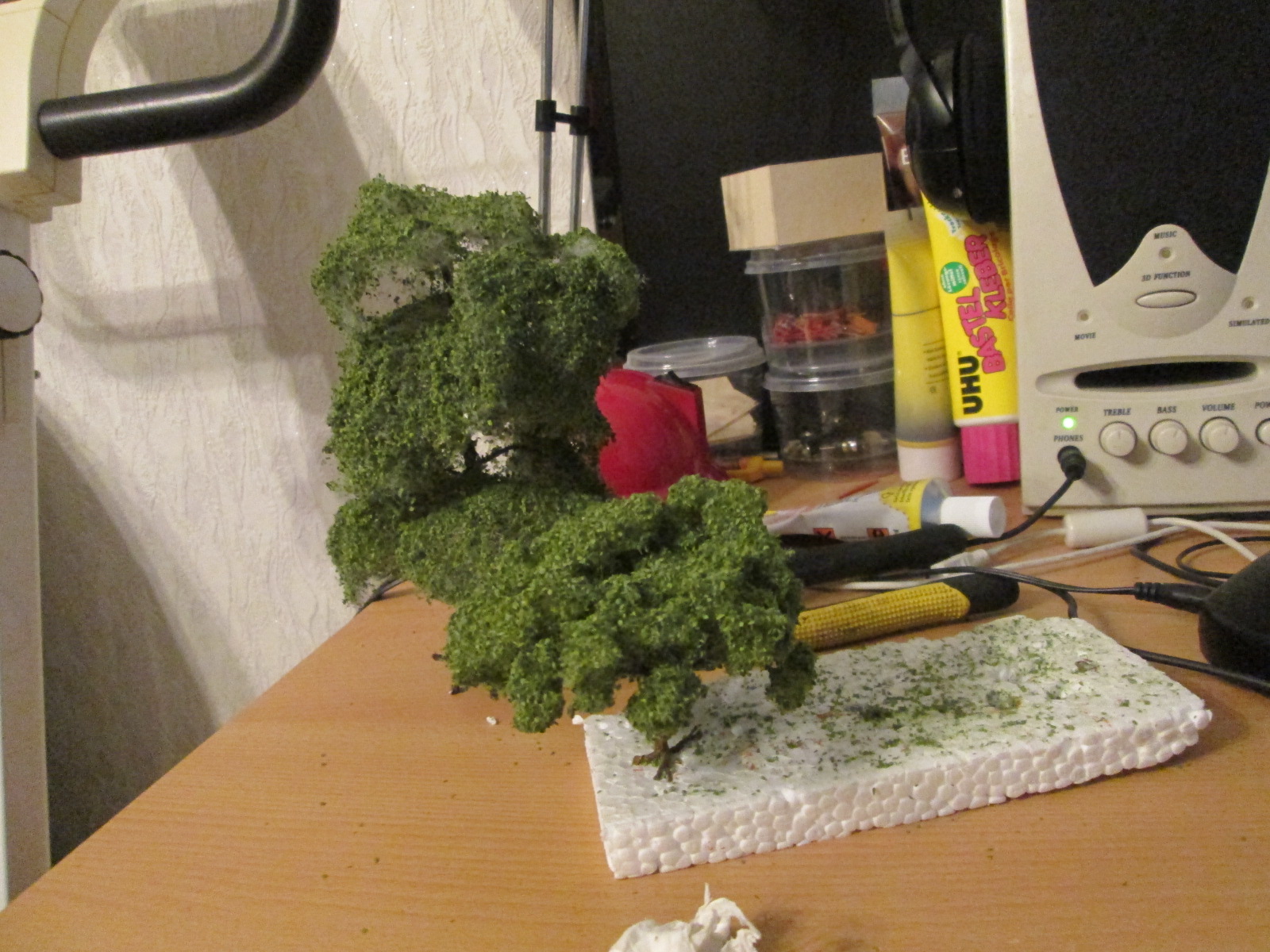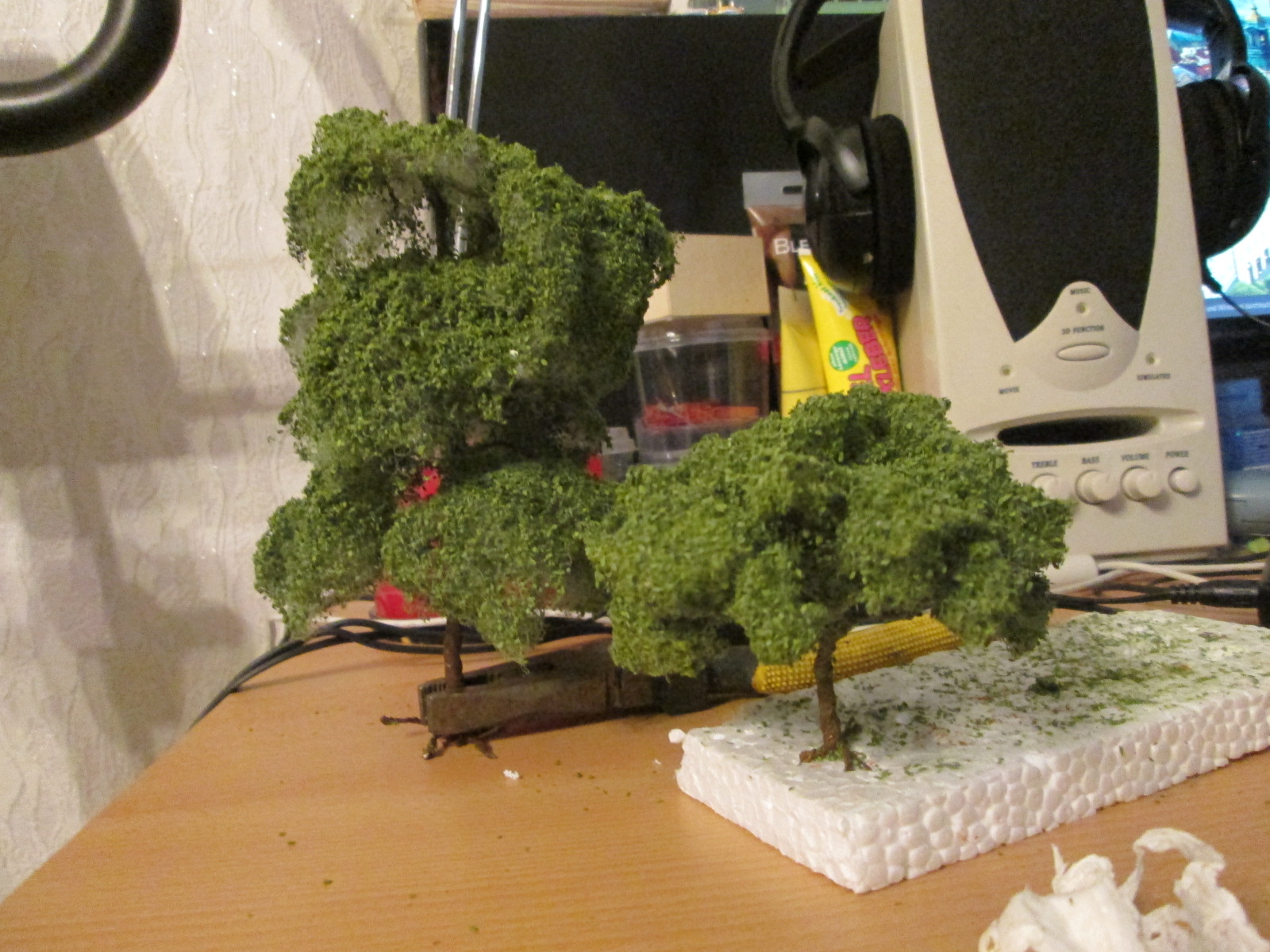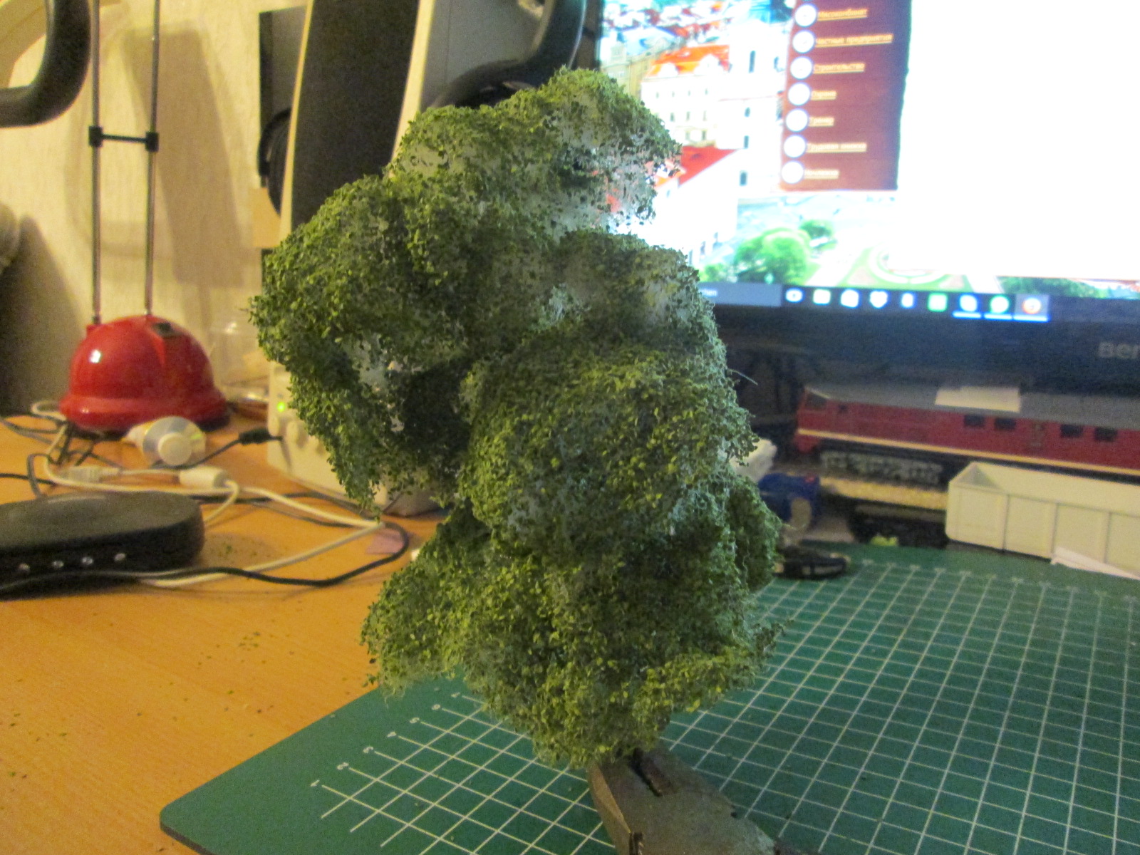 Спасибо, Сергей. Все эти сылки я уже пересмотрел от самых простых до самых дорогих. Конечно втой ветки ищется все то что можно применить не покупая, к чему и я стремлюсь. Синтепон в минус подвел тем что он не подкрашен. с низу именно подкрашенный синтепон в зеленый, а вот верхняя часть сильно себя выдает. в зависимости от типа дерева применяется своя технология. вы же присыпку листовую через флок не сделаете, флок только дает вид реальной ветки, хотя и без него можно сделать. что я пробовал с первым деревом и там корешками придал вид веток. а вот для елей флокатор более менее идет чтобы придать вид иголок, но и тут можно другим способом пойти. Я лично видел как делаются деревья у нас на выставках. чего опять жду февраля чтобы туда попасть.Сергей Вдовенко писав:Макет крут! Здания впечатляют особенно. Да.