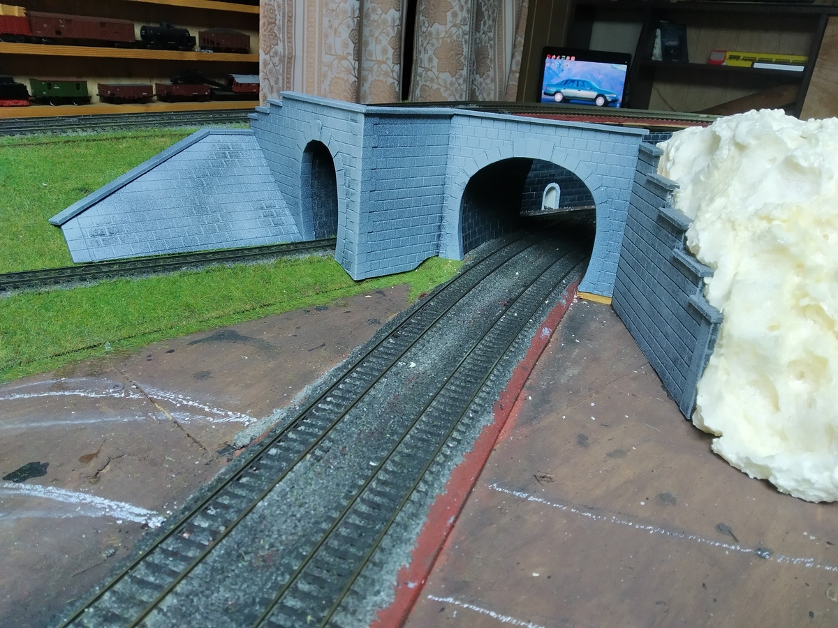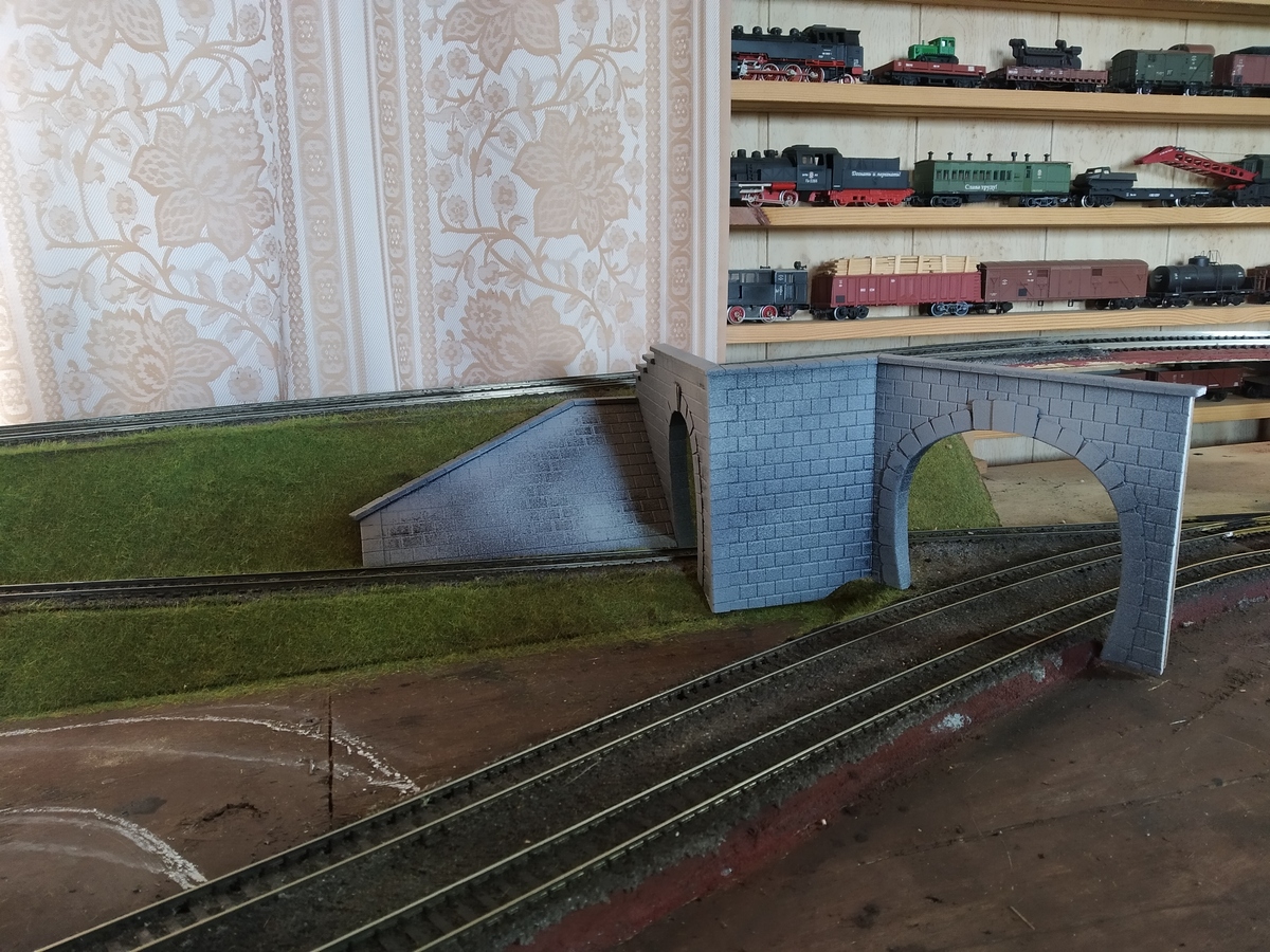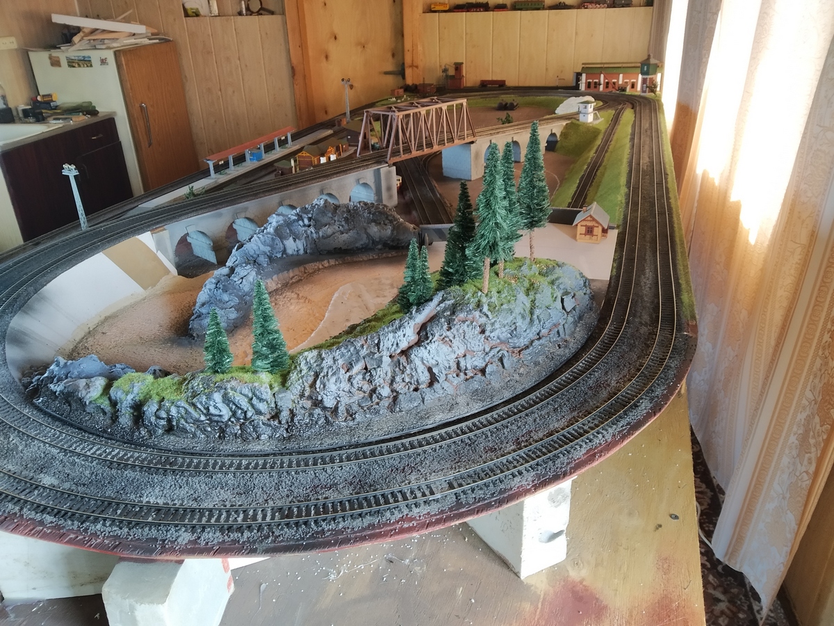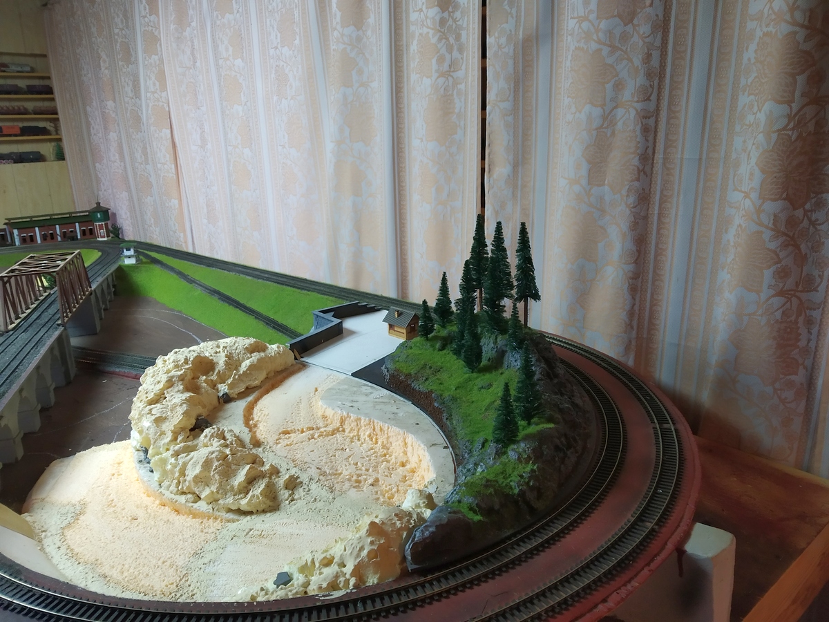 Не придумал лучшей идеи, как вывести автодорогу за пределы макета. Перевал - это слишком сильно сказано. Дорога поднимается на 100 мм от нулевого уровня макета, а это всего лишь 8,7 м в 1:1.vover писав:Идея с дорогой через перевал мне тоже очень понравилась - аж вспомнились дни, когда я сам через Карпаты машиной гонял