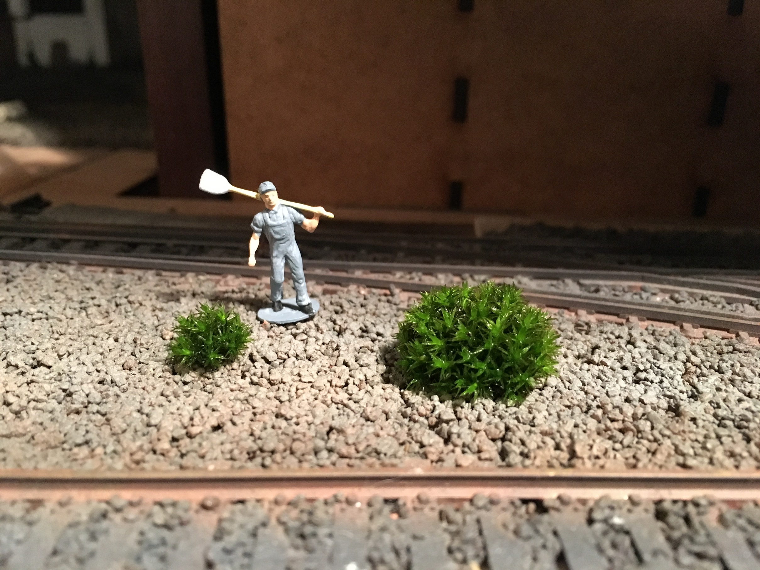 Продолжу по макету. Гуляя с детьми, начал опять пополнять запасы природных материалов. Нашёлся мох, не ковром, а кустиками. Причём забавно то, что даже на деревьях, без влаги, он сохнет моментально. А только проходит дождь, опять сочный. В домашних условиях, такое превращение происходит за секунду. Беру пинцетом кучку сухого мха, окунаю в воду и моментально сочный куст получаю. По итогам, я пропитал часть собранных кустов очень жидким пва и сверху обработал лаком для волос. Как это всё настоялось, через сутки покрасил. Результатом доволен, запасы мха и производство таких кустов и местами даже цветущих кустиков, буду пополнять и дальше. Ниже фото вышеописанного.