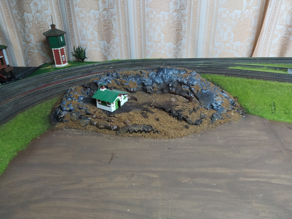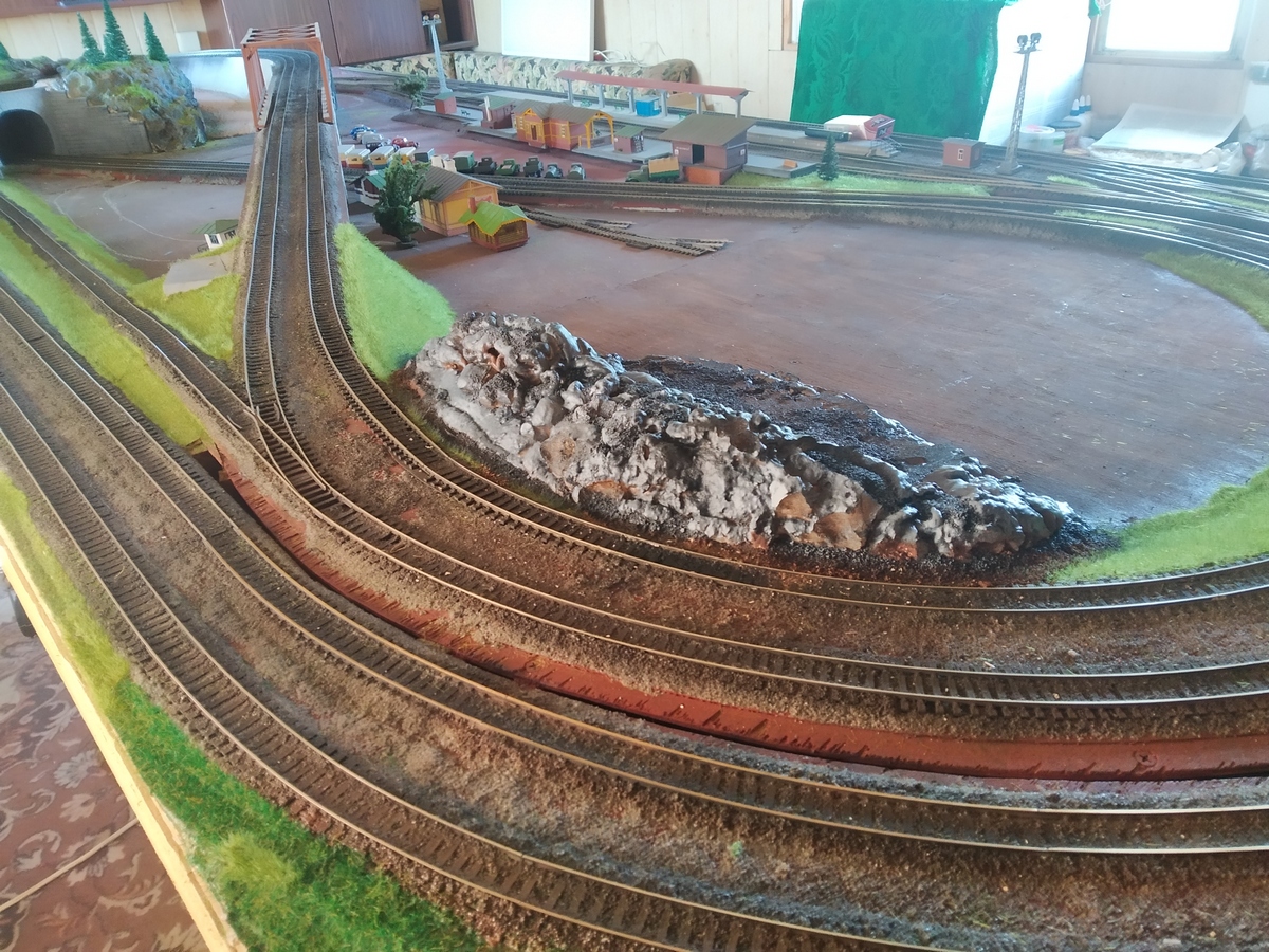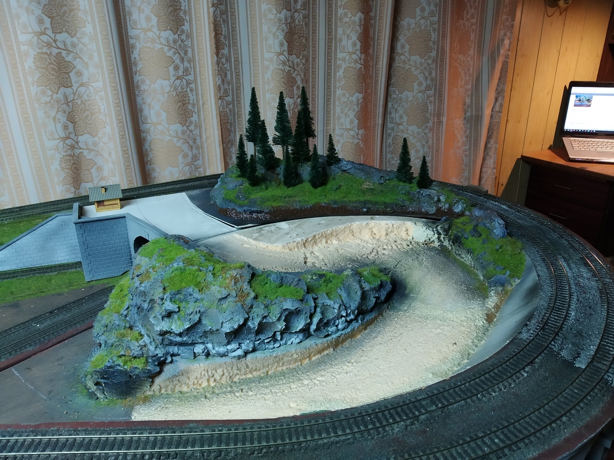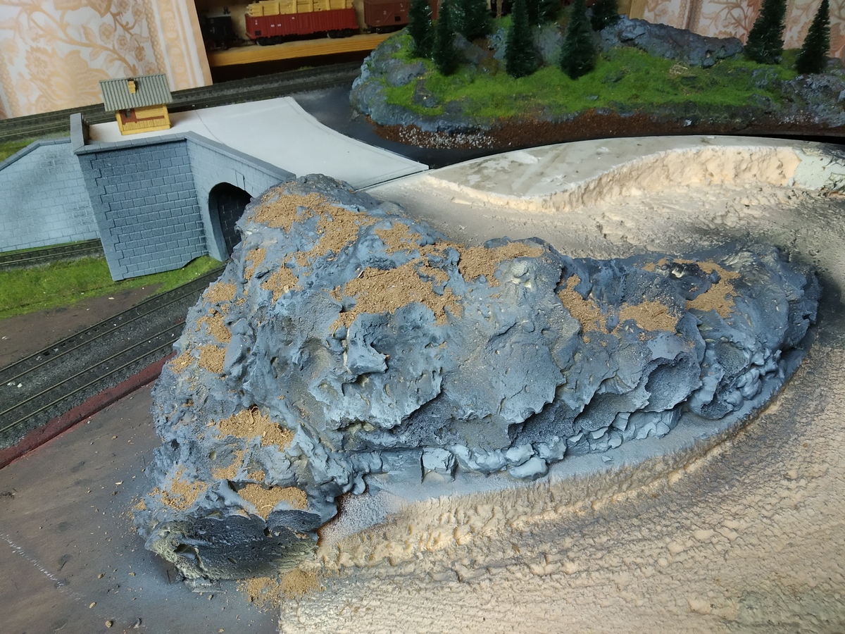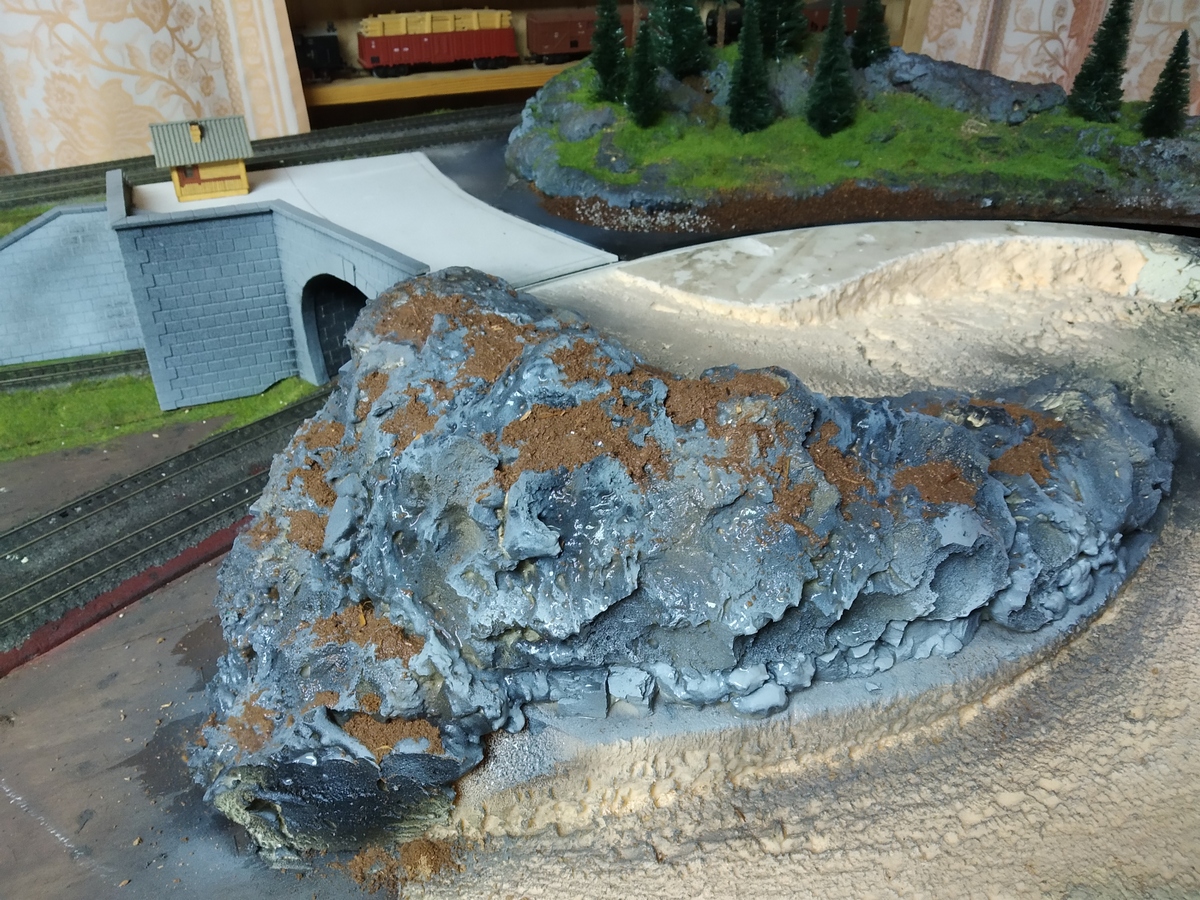 Идея иногда формируется очень сложно, но есть и светлые моменты прозрения в этом деле. На днях, работая с горой, просто временно переставил верхушку на свободное место на макете, чтобы не мешала ковыряться в тоннеле. Переставил и забыл. А затем в перекуре глянул на эту верхушку с другого ракурса. И сразу сообразил, что это пришла Муза - надо срочно закрывать все окна, двери...