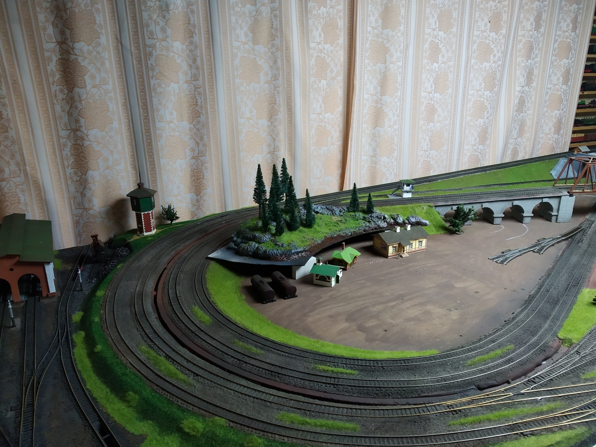 В моём селе масштабы другие, но маленькую конторку на пригорке вполне можно расположить. Можно и в кубики поиграться. Маловероятно, что в первой половине 50-х возле депо и ПМС была действующая церковь, но в те времена сильно практиковали переоборудование под клубы. Тоже вариант. Но большие здания там ставить не хочу.