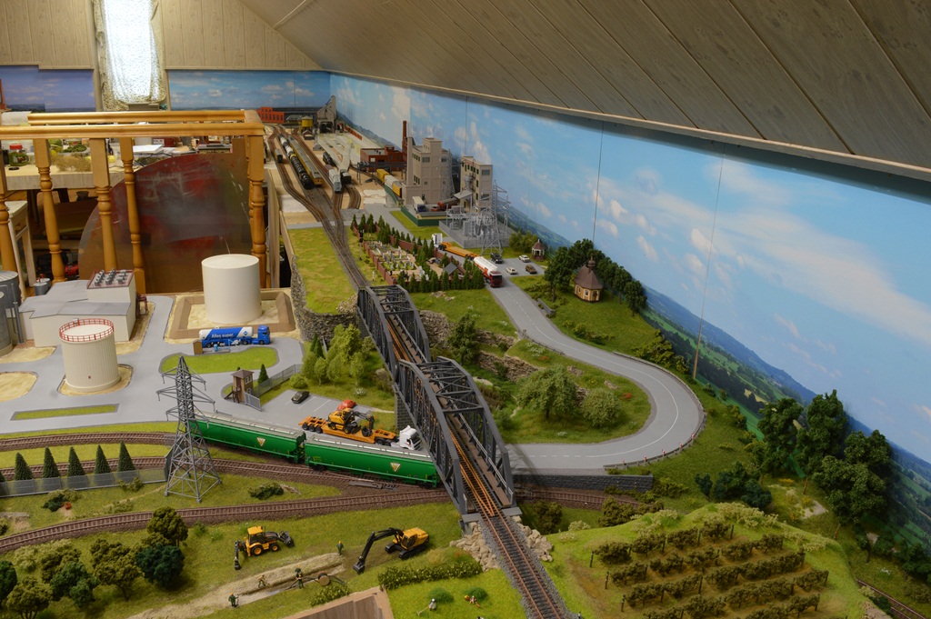 Этот участок макета я называю "старым городом", поскольку здесь собраны домики, которые я клеил еще школьником (страшно сказать!) около 45 - 50 лет тому назад. Это еще VERO. Для полноценного города добавил чуть более новые станцию, депо, лесопилку и водонапорную башню. Им примерно лет по 25...