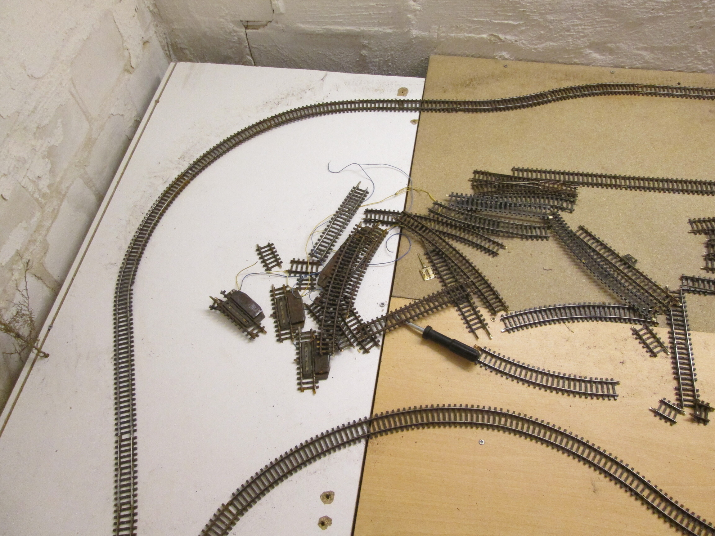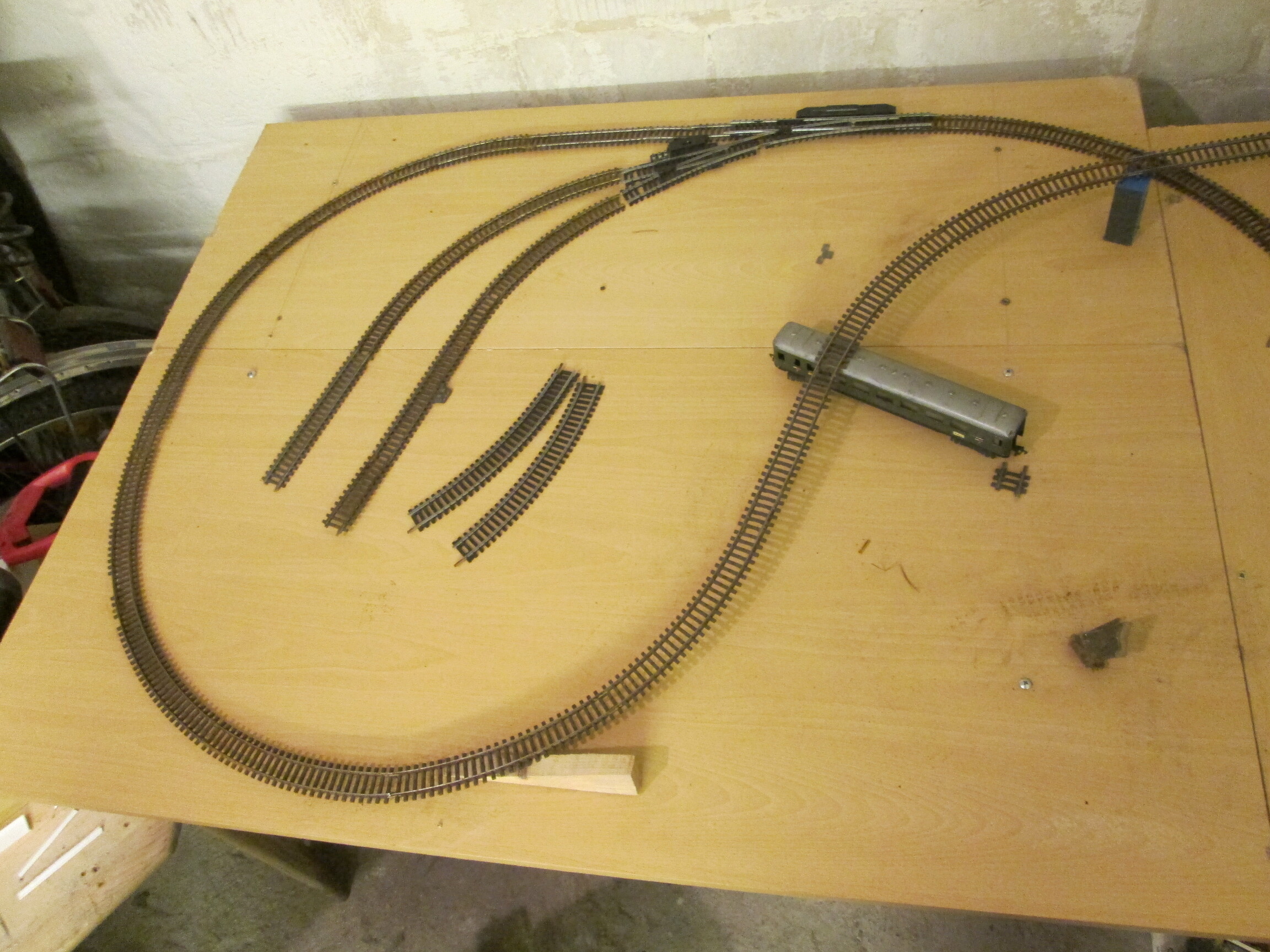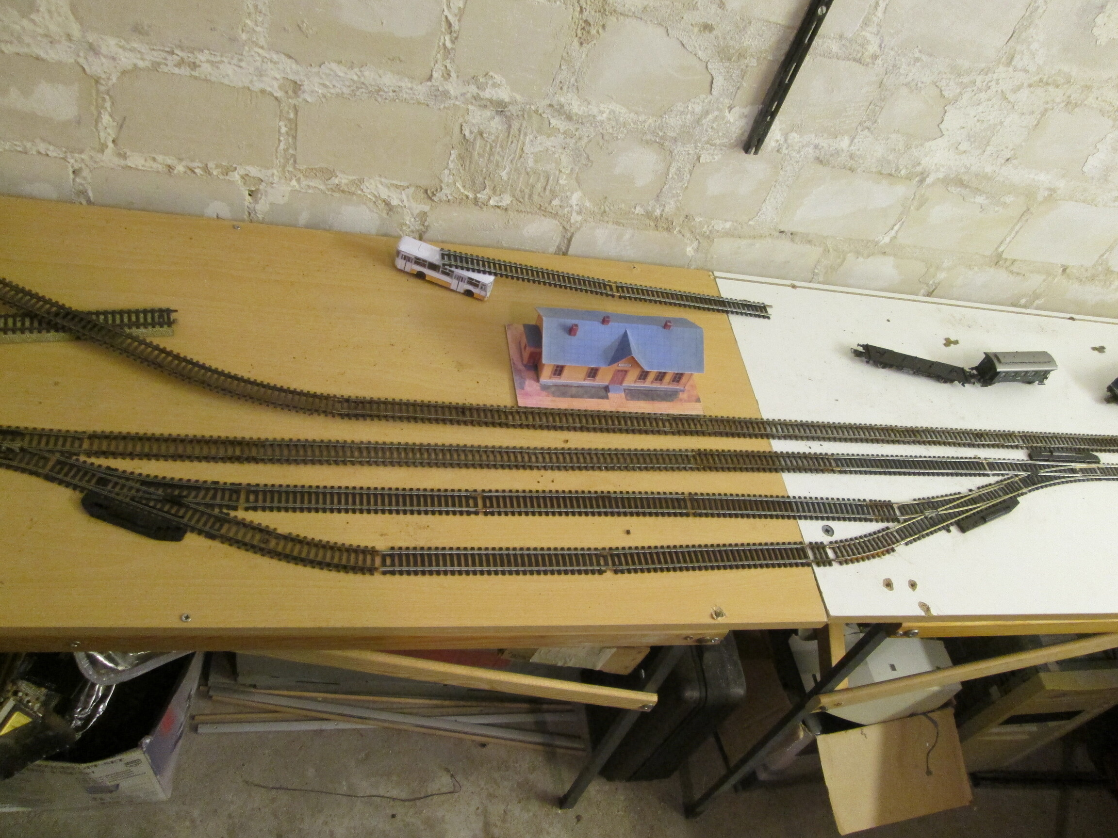 Вообще-то - Андрюха конечно разгильдяй, но что мне очень нравится в его подходе к постройке макета, так это поиск оптимального решения реальной раскладкой реального путевого. Вот это исключительно по делу! Одобряю.