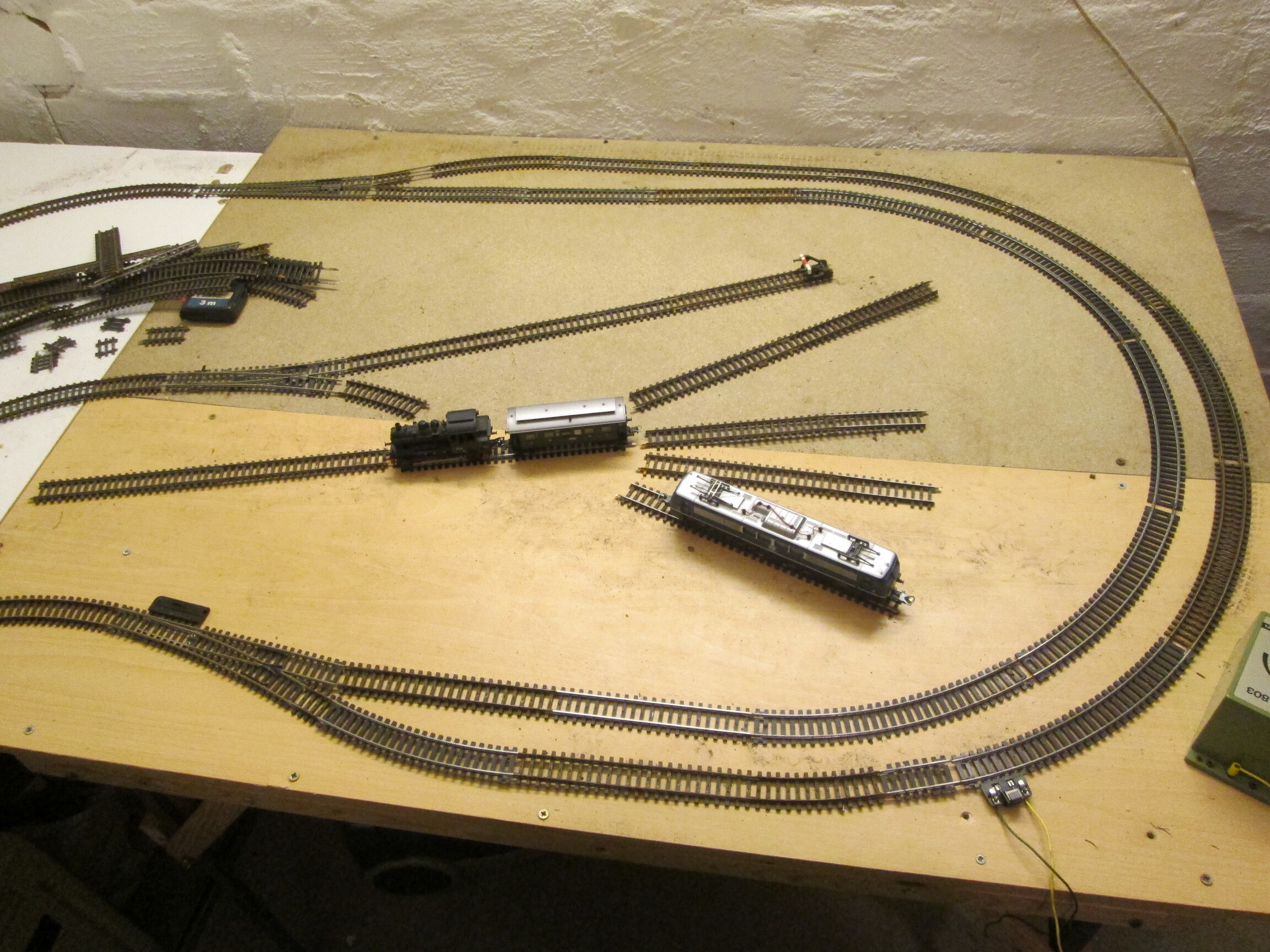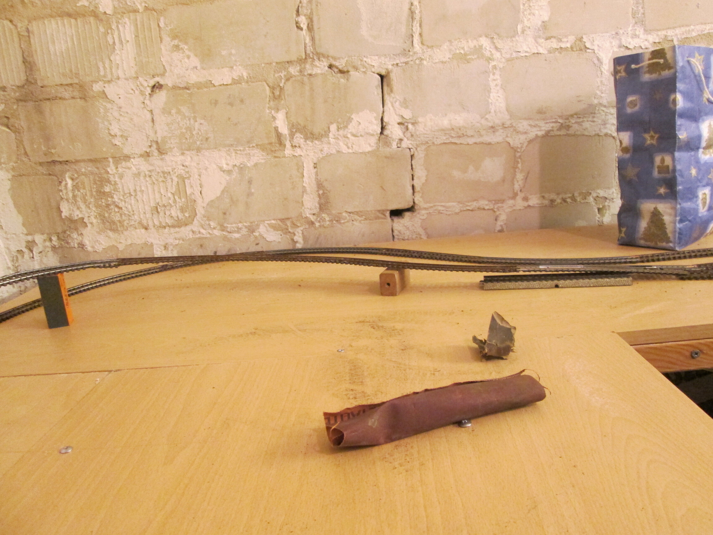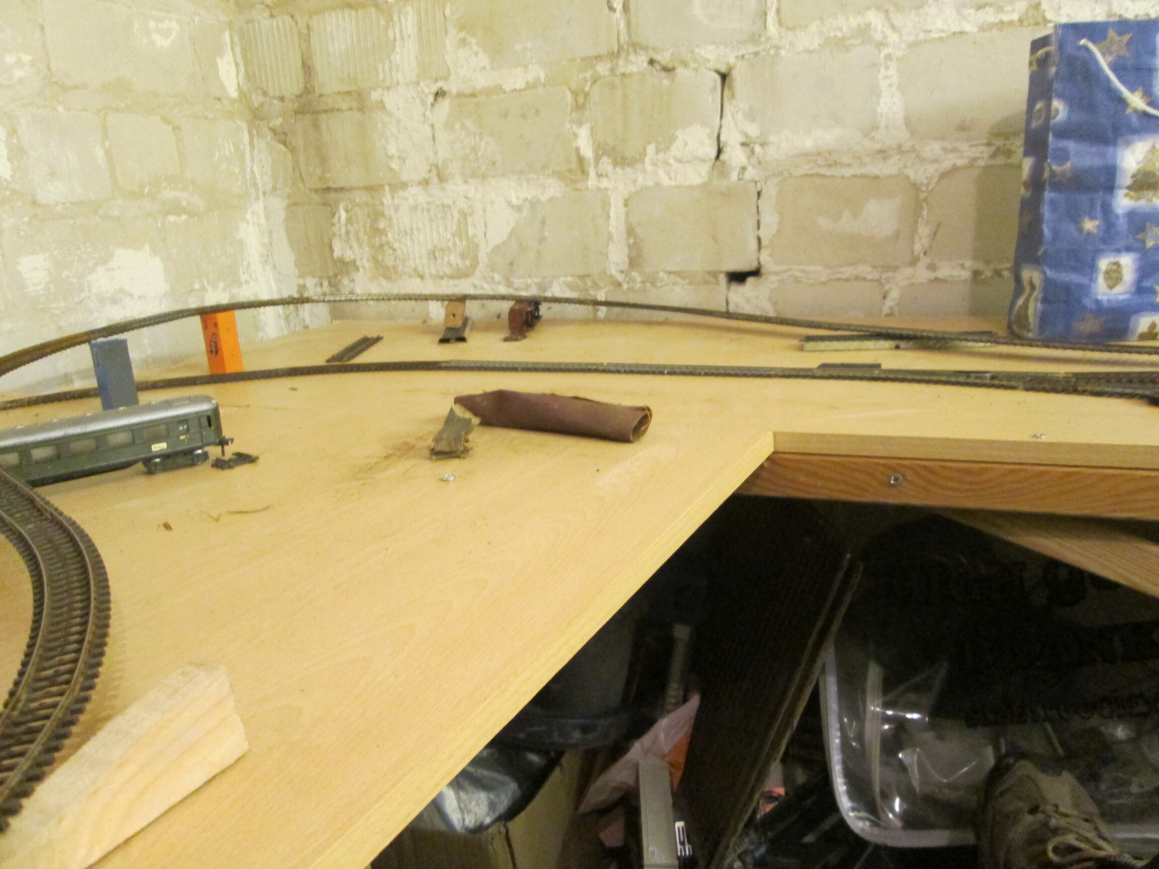 Вообще-то - Андрюха конечно разгильдяй, но что мне очень нравится в его подходе к постройке макета, так это поиск оптимального решения реальной раскладкой реального путевого. Вот это исключительно по делу! Одобряю.
