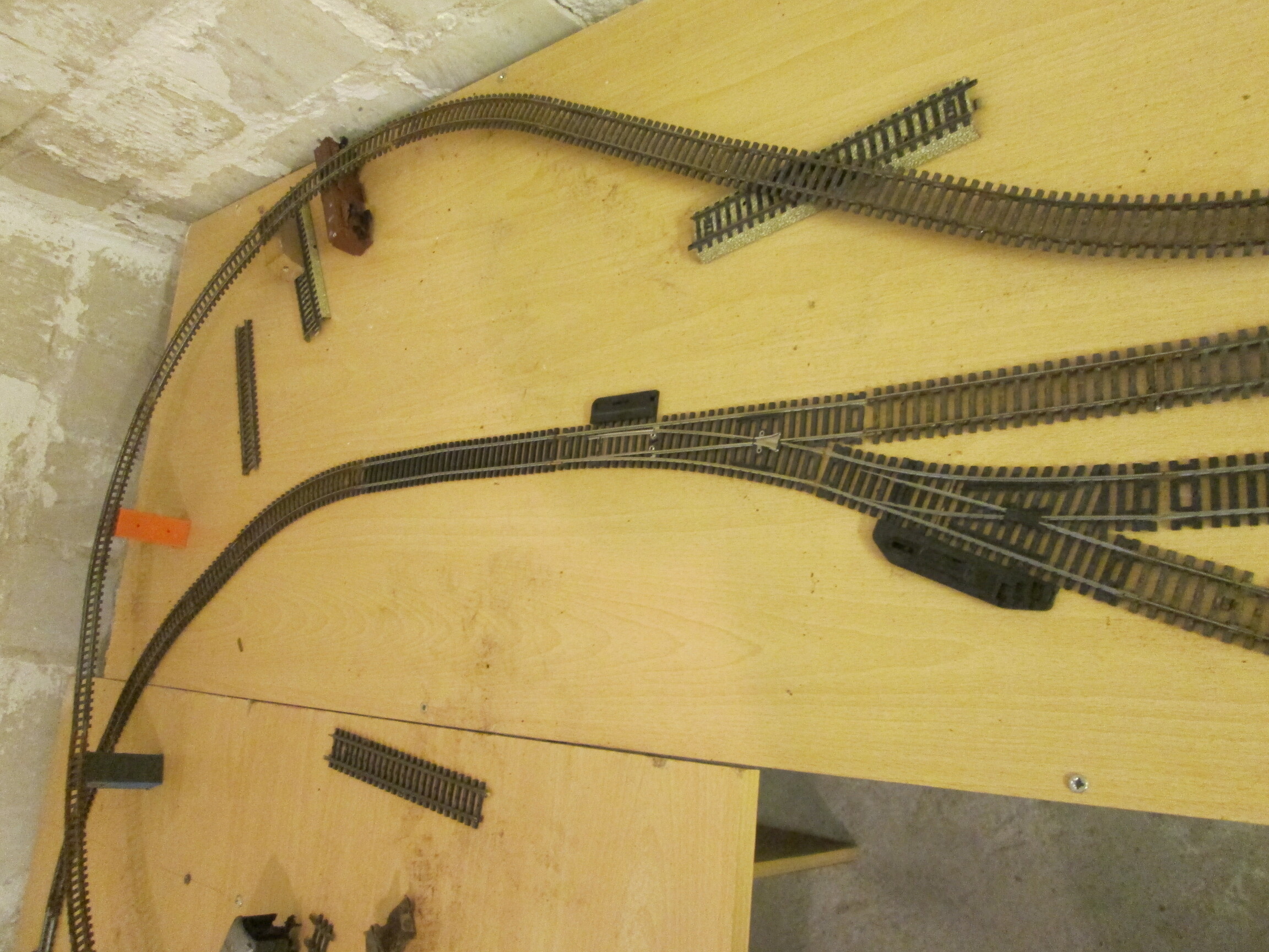 было а стало теперь так завтра и после завтра буду доводить некоторые места стыковки. это на станции (при сдвиге ветки поворота немного разобрал станционный участок. плюс подумываю об увеличении длины маленького запасного участка либо переформировать сами пути) и на последнем фото справа стрелка (там пока просто приложено)