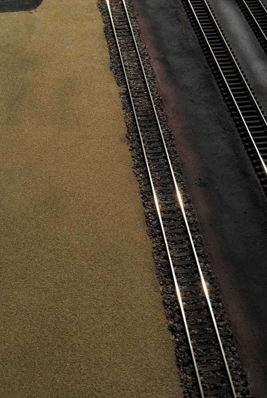Всім привіт. Потроху просуваюсь. Як то кажуть "очі бояться, а руки роблять". Відсипав майже все, загадив, щоб прикинути як воно буде. На мою думку непогано. Ще травичка розбавить однотонність. Біля вихідних замазутив інтенсивніше, бо локомотиви довше простоюють під сигналами. Тільки от думаю може ще чорним глянцевим додати мазутних плям, а?