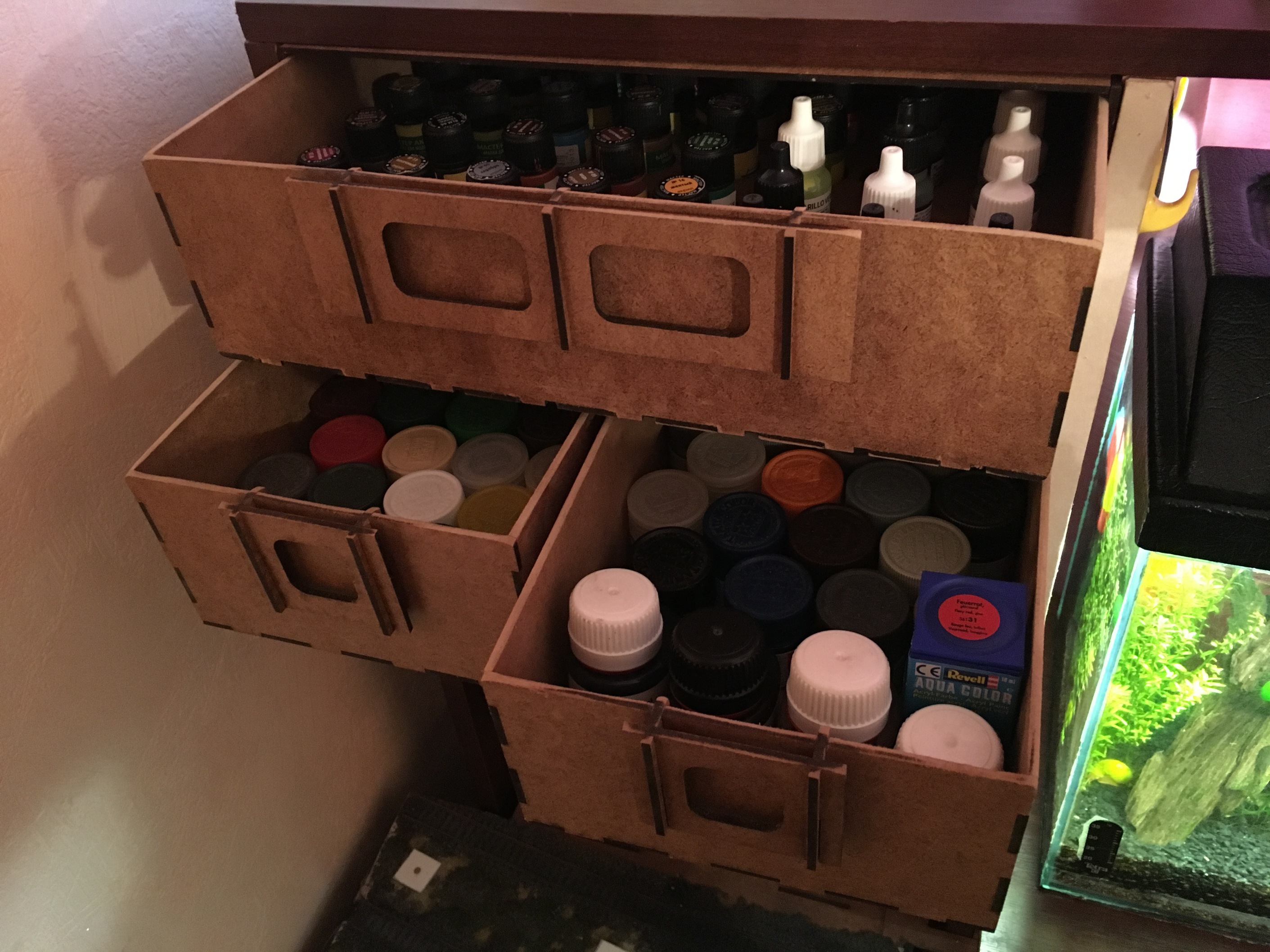 Забыл ещё написать. Наконец дошли руки и сделал ящики слева на столе. Разложил там краски и кучу разной мелочевки.