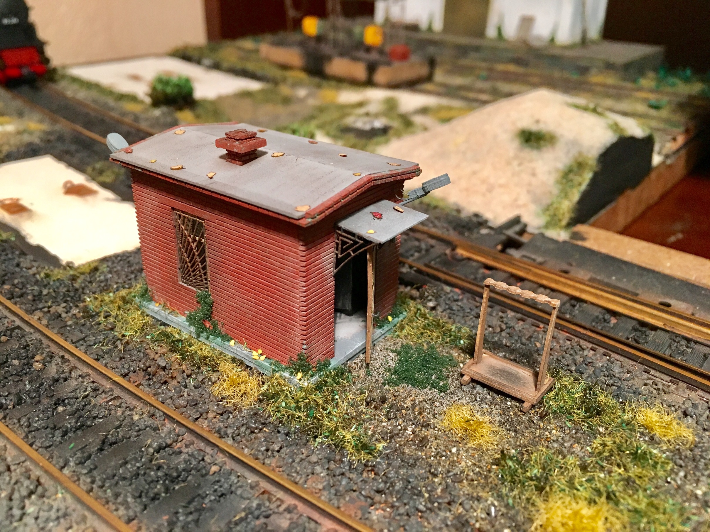 Я уже писал раньше. В плане макета как жд игрушки, ничего толком нет по сути. Два пути по метру, две стрелки. Детализация, это единственный на мой взгляд выход из ситуации, чтоб макет был живым. Более того, хотелось бы реализовать звуковое сопровождение в перспективе. Пара динамиков для стерео, да звуковые дорожки со звуками повседневной работы жд. Лай собак, птички и прочее. В общем хотелка большая, а что там в итоге получится, я не загадываю. Изначально вообще планировал это как шутку. Не думал, что до реализации чего-то дойдёт. Аппетит во время еды пришёл.