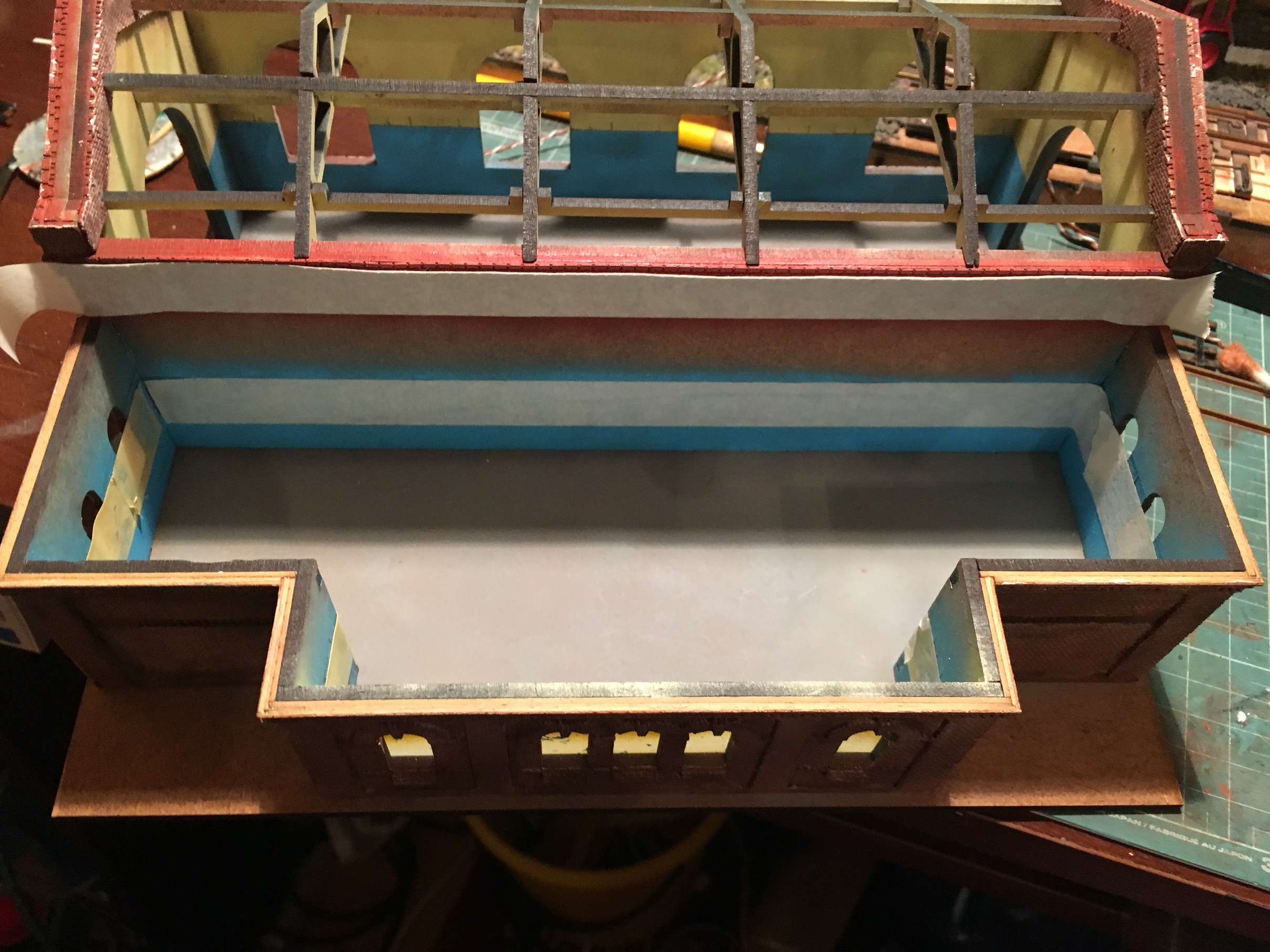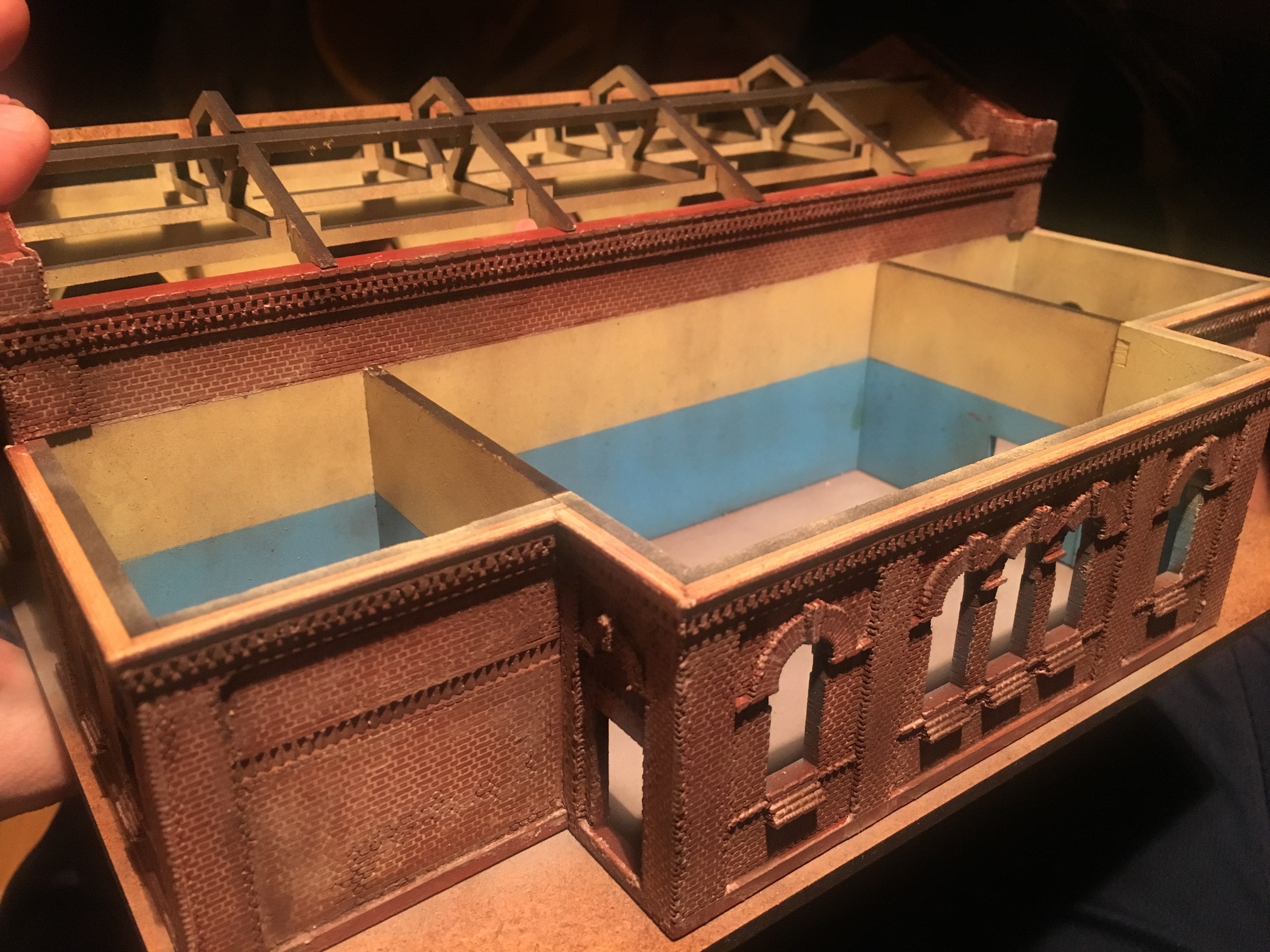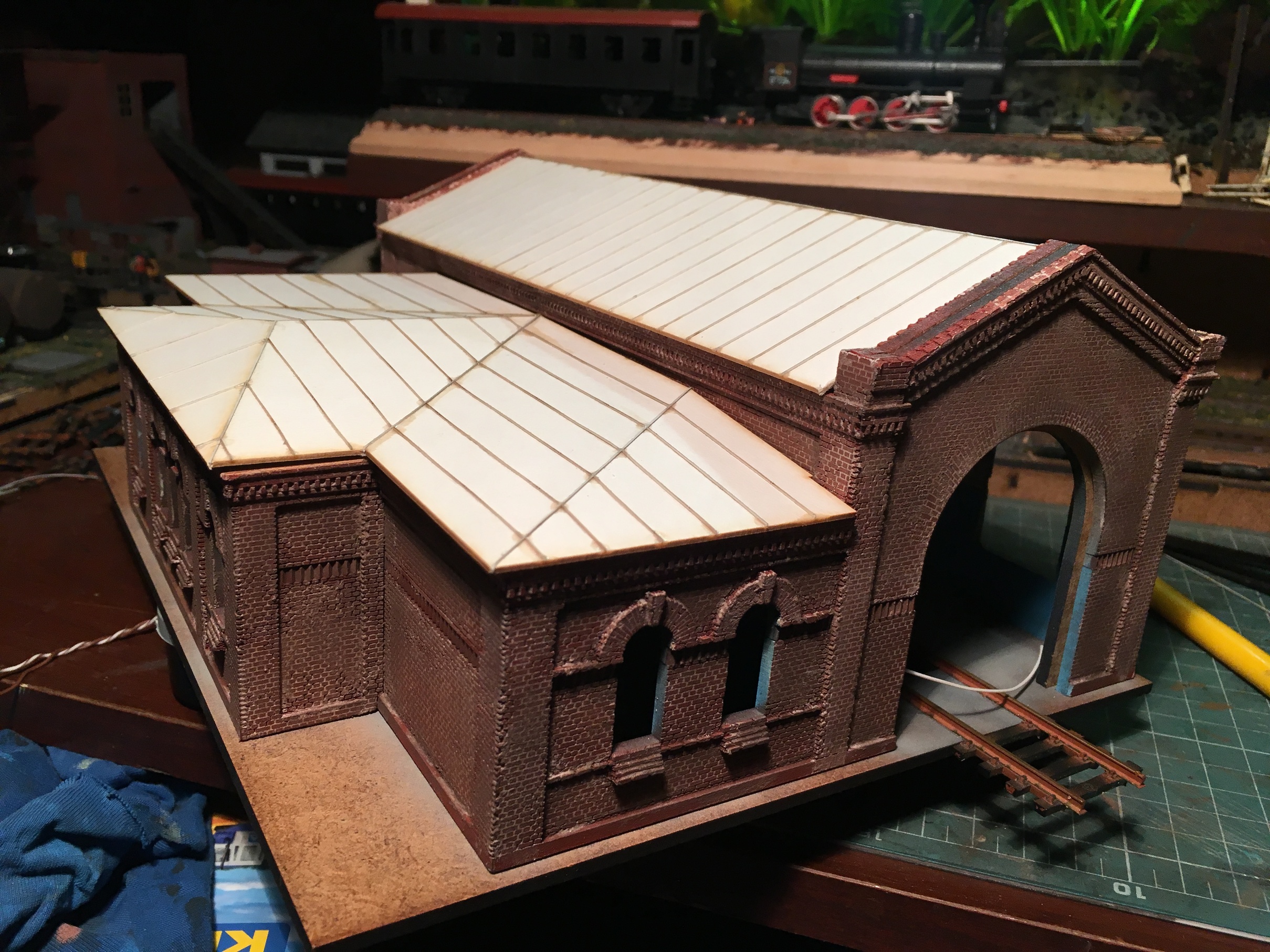 Продолжил. Доделал внутреннее освещение. Далее внешнее освещение, да наполнение внутреннего пространства депо.