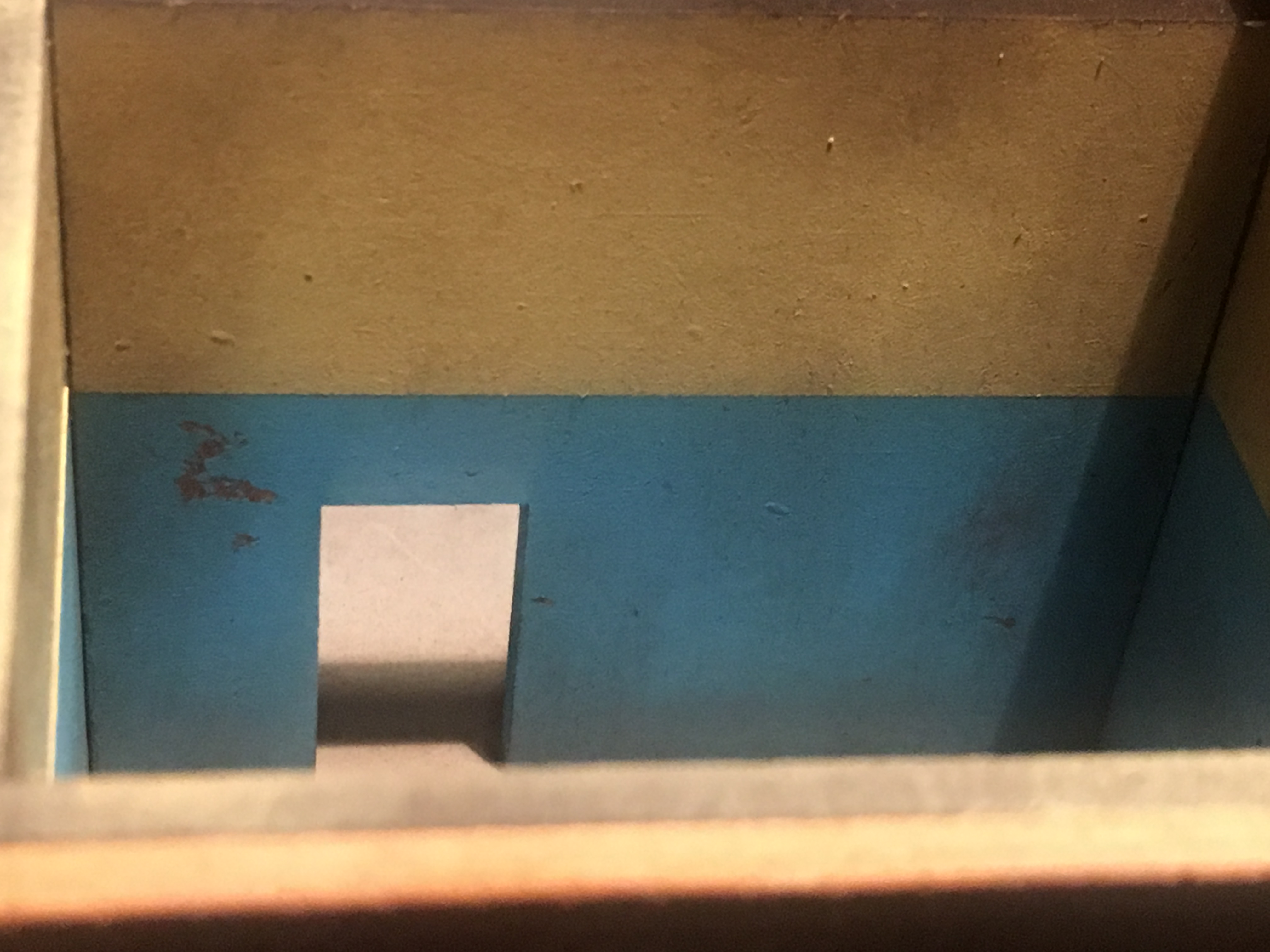 Дело было вечером, делать было нечего. Точнее, делать было что, но на мне была младшая. Увлёк переставляемым банок с краской на минут 40 её и занялся тем, что докрасил стены пристройки. Ещё тонировать их, подогнать по месту покрашенный пару недель назад перегородки в помещении.