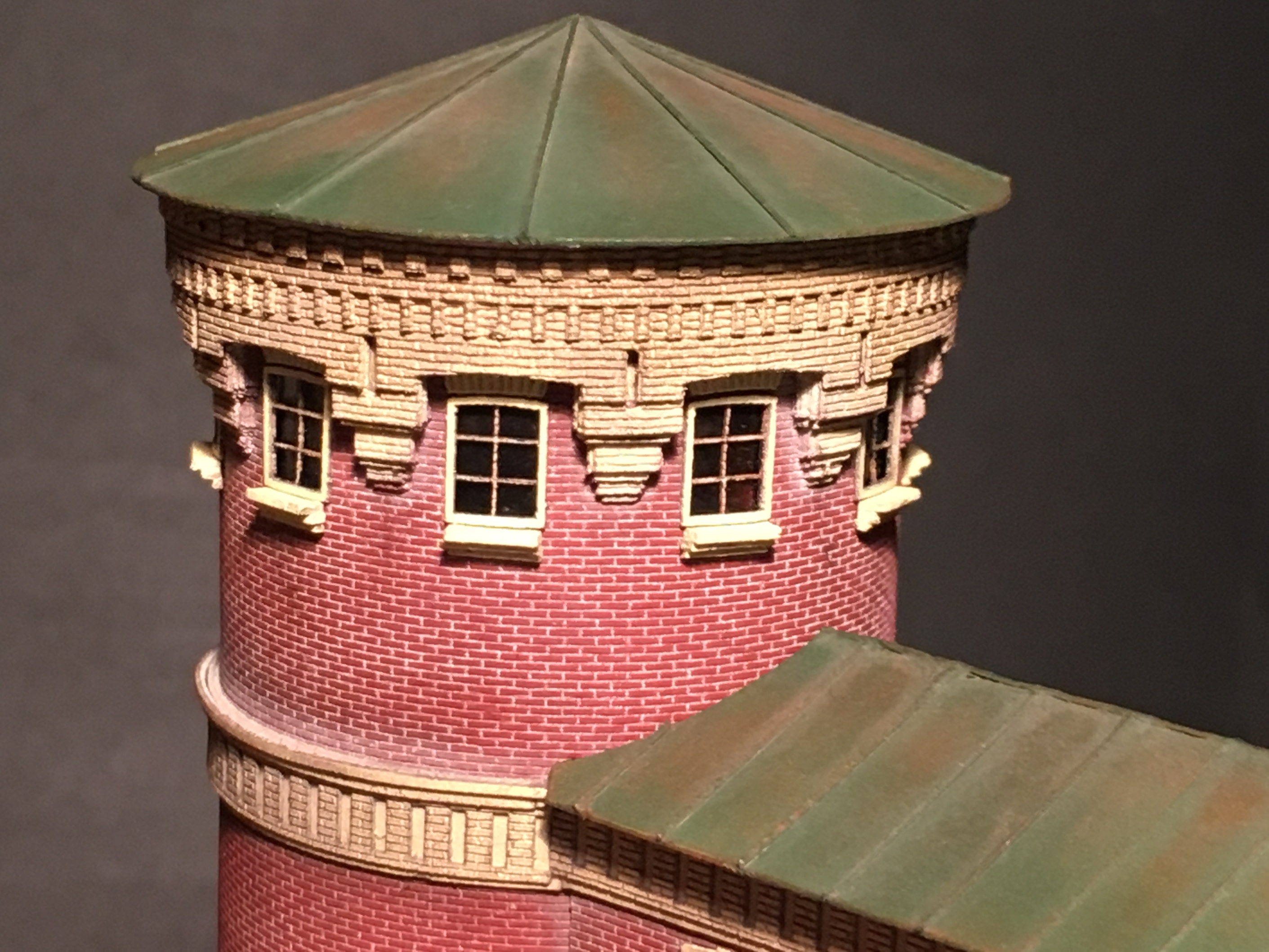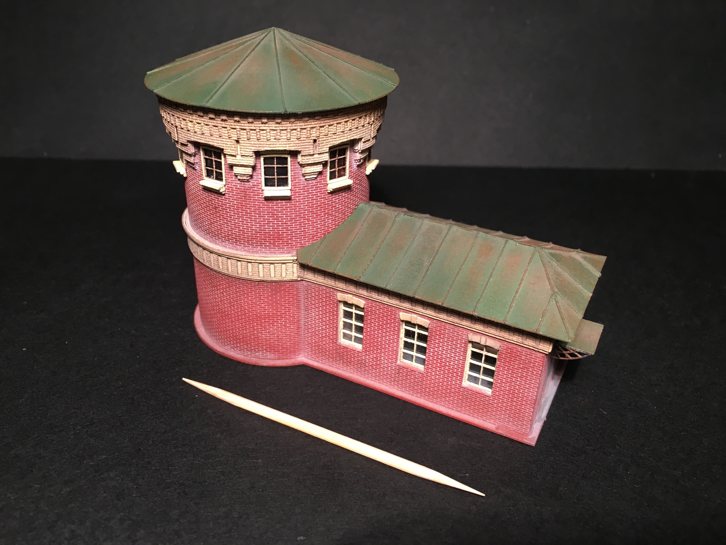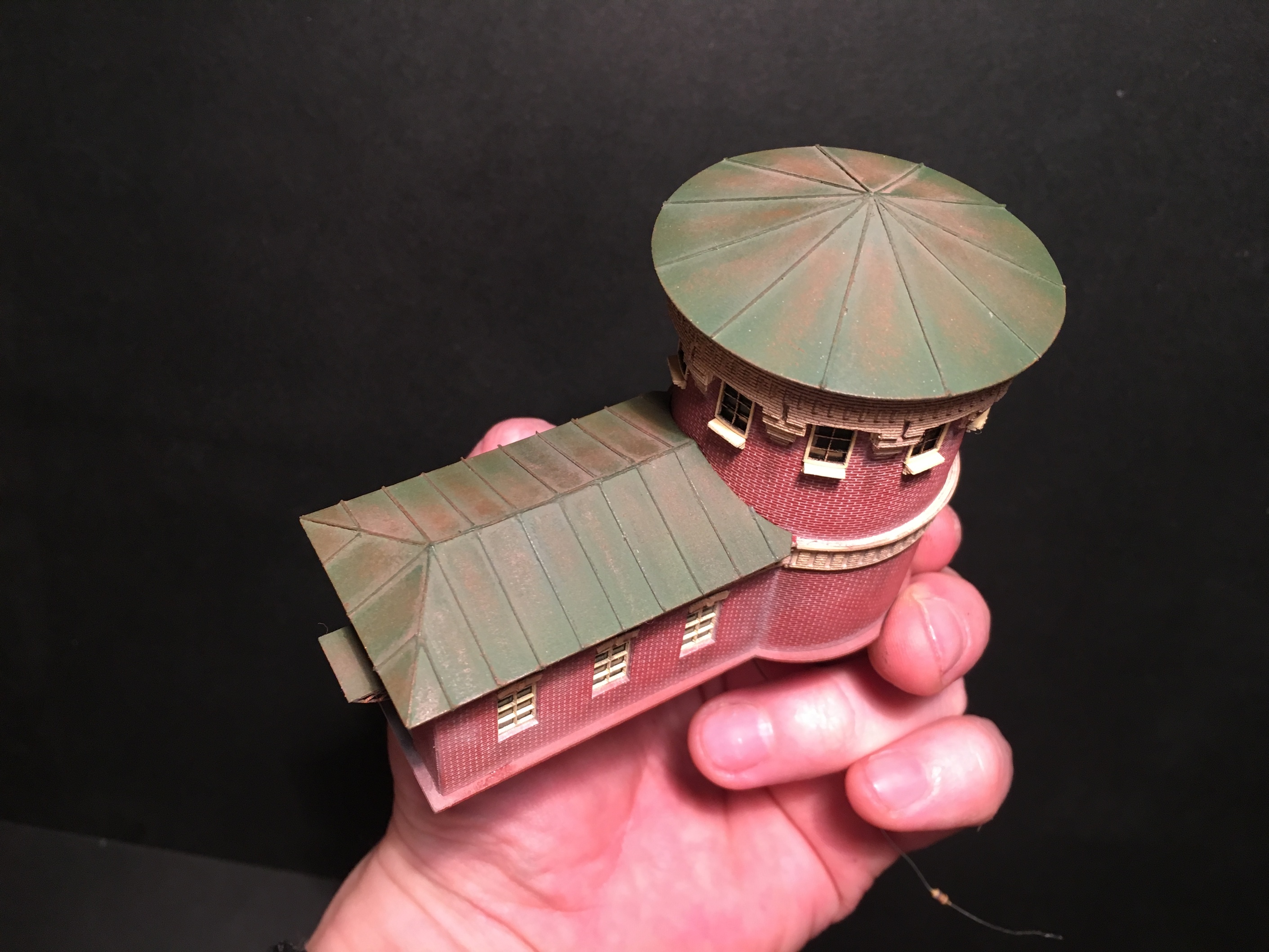 Добрый день. Поработал над крышей. Не скажу, что я доволен, но править уже не буду. Есть пара мыслей по мелочам на крыше пристройки и возможно, кое-что из мелочей, добавлю на крышу депо. Ну и трубы конечно будут. А вечерком, поделюсь фотографиями с выставки в депо Подмосковная. В честь дня жд моделизма, проходили и проходят некоторые мероприятия и выставка.