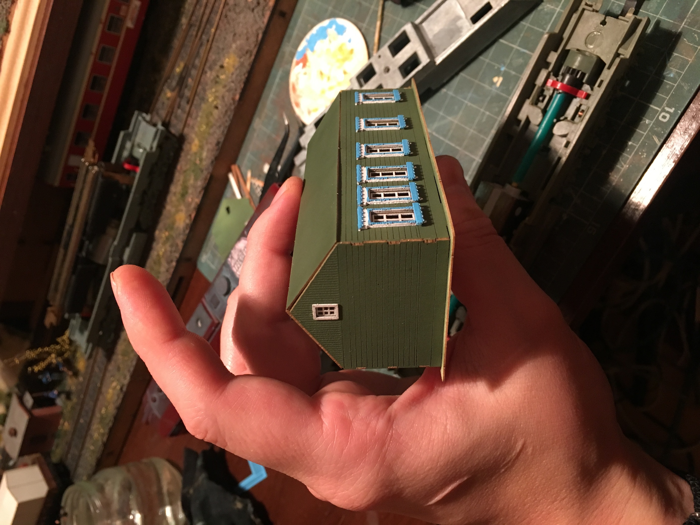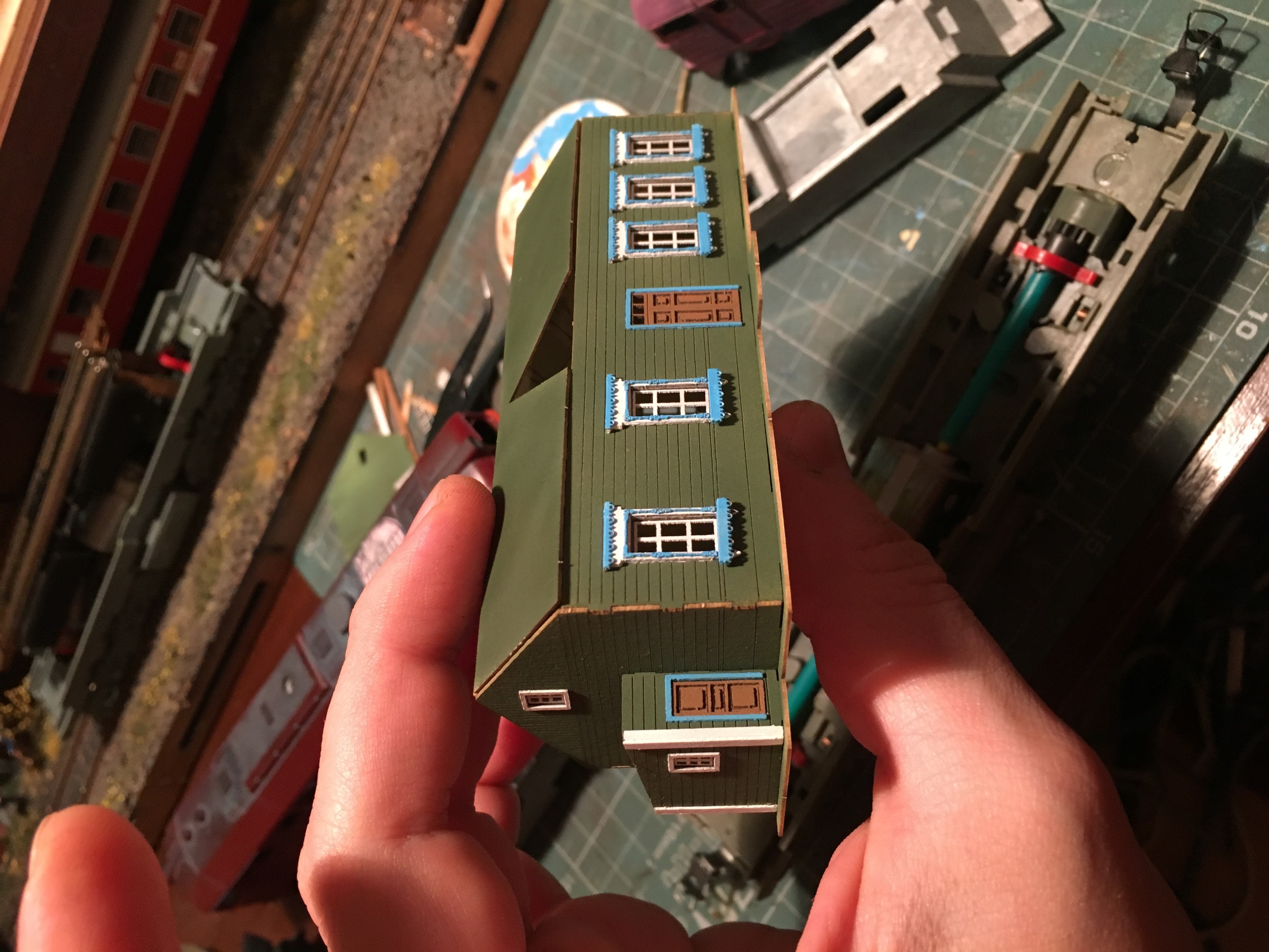 Среди прочих заказов, проскочила сборка и покраска нескольких зданий. Было интересно осуществить их, так это энка. Тот размер для меня был в новинку. Что могу сказать - интересно. Покатушный макет, с большой вероятностью, будет у меня в энке. Так же могу сказать, что в энке вполне реально сделать меблировку помещений. Но не думаю, что это актуально кроме как показать самому себе, что можешь быть похожим на уважаемого Товарища Левшу. Ниже несколько фото.