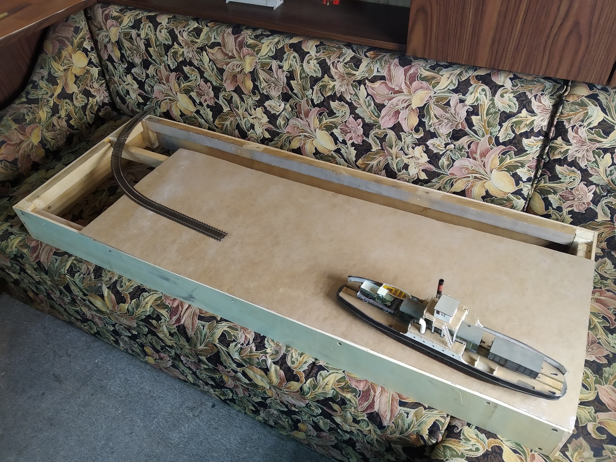 Пока в поиске оптимальной укладки путевого, чтобы осталось достаточно места для отхода парома от рампы.