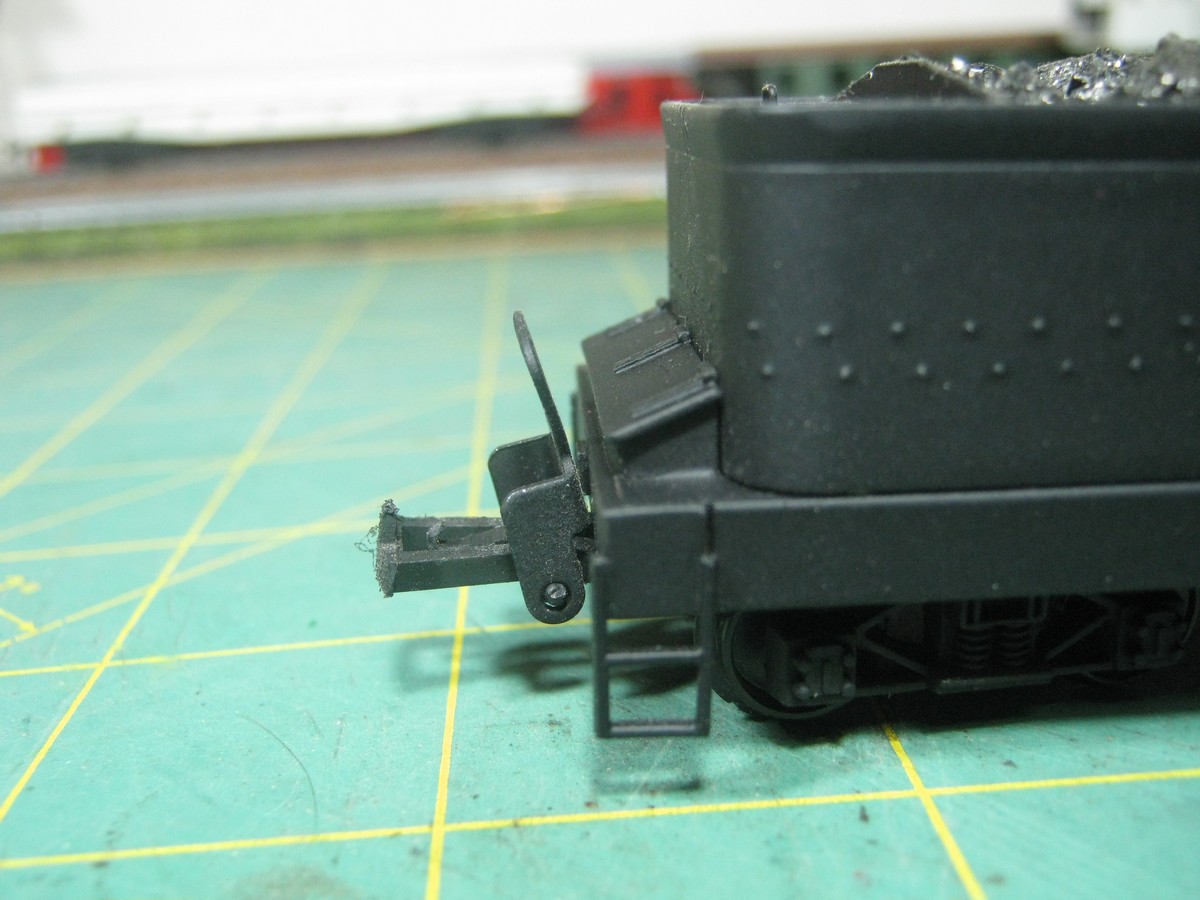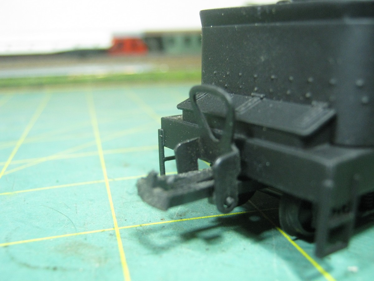 Внизу надо будет подклеить пластину. Толщину подберёшь так, чтобы центр имитации розетки на буферном брусе был на высоте 12 мм от уровня головки рельса. Если буфера стоят нормально, то можно брать эти 12 мм от центра тарелки.