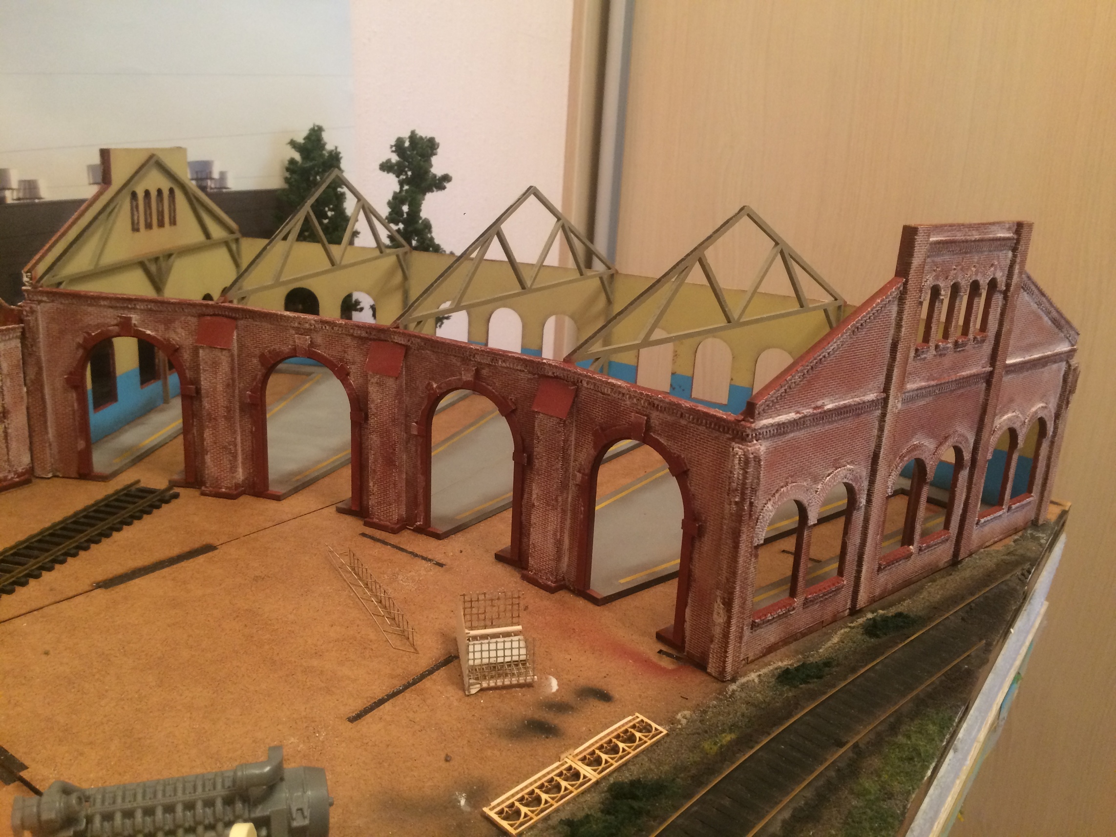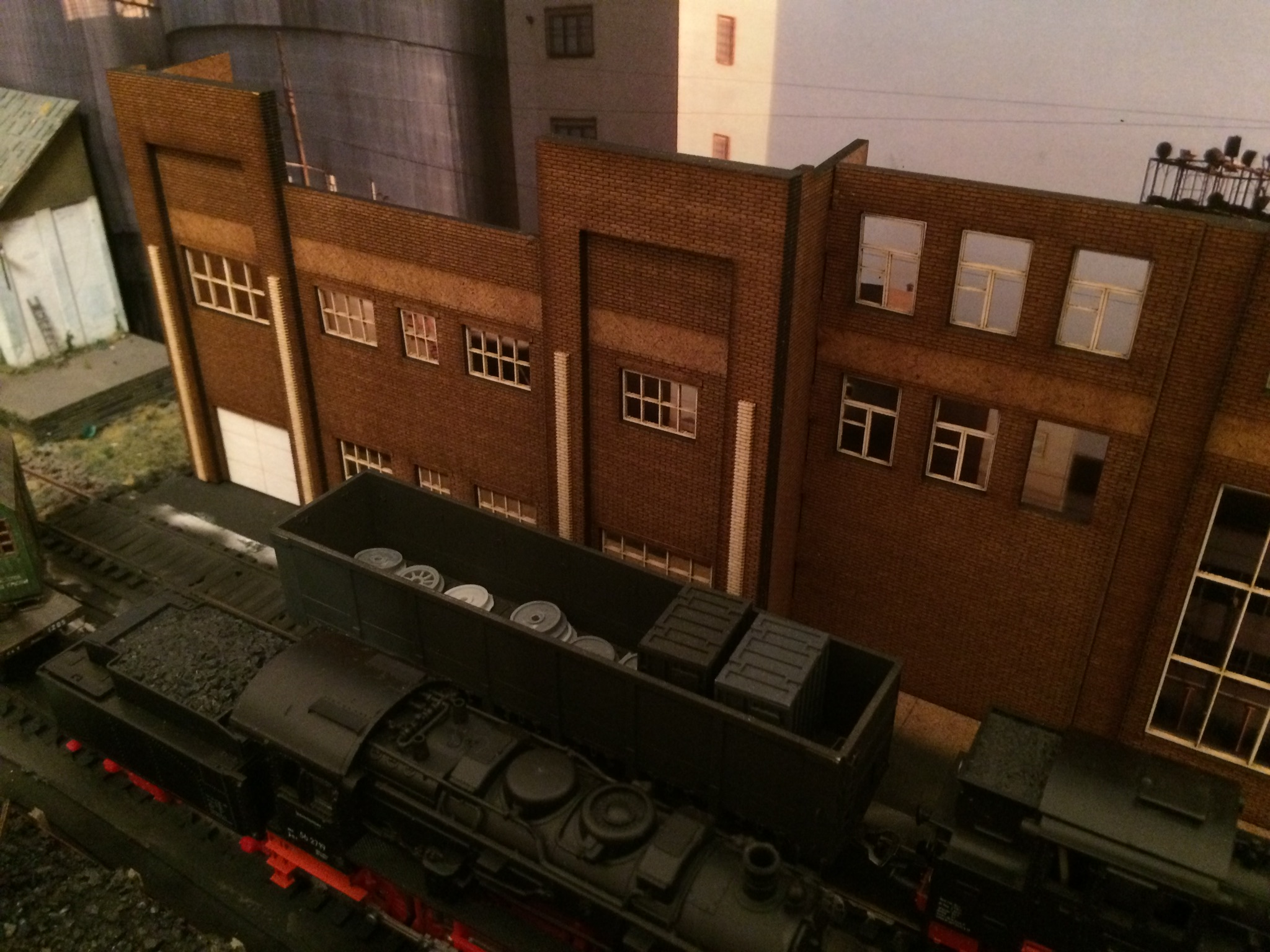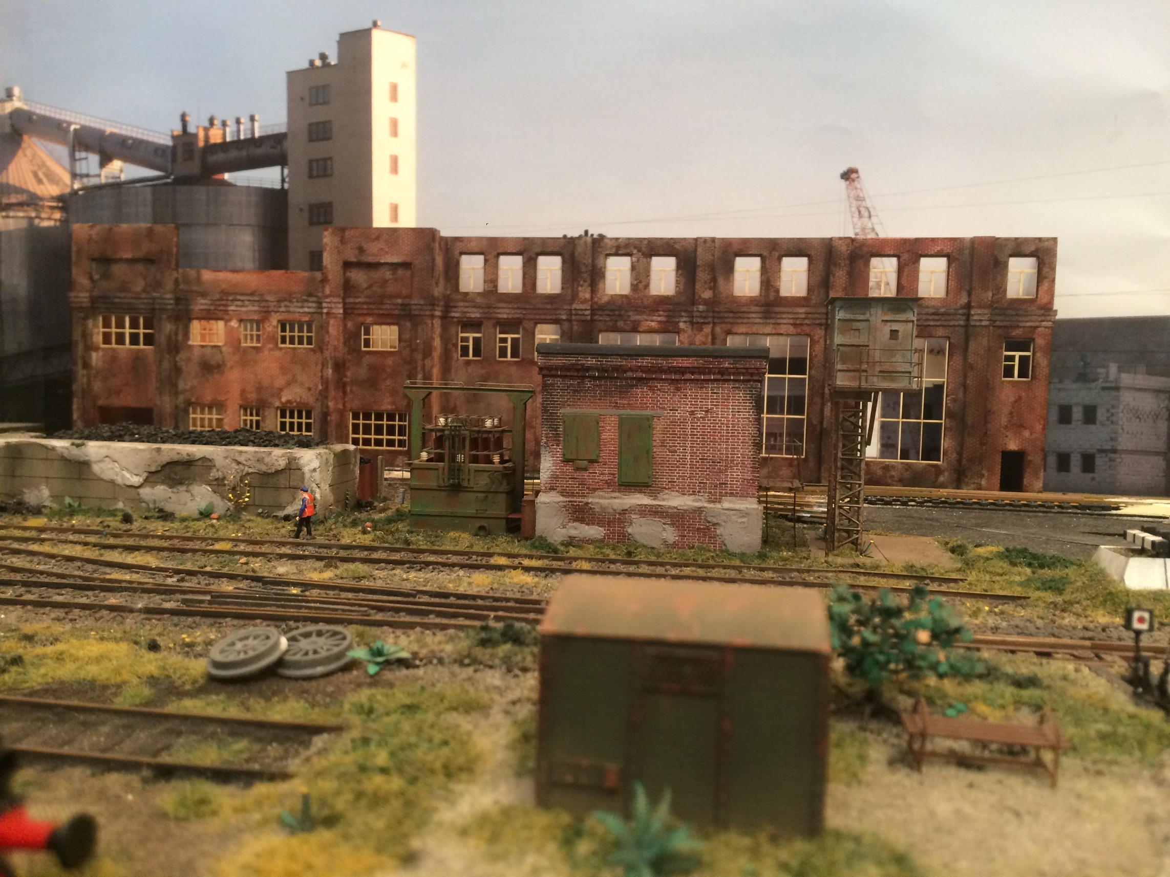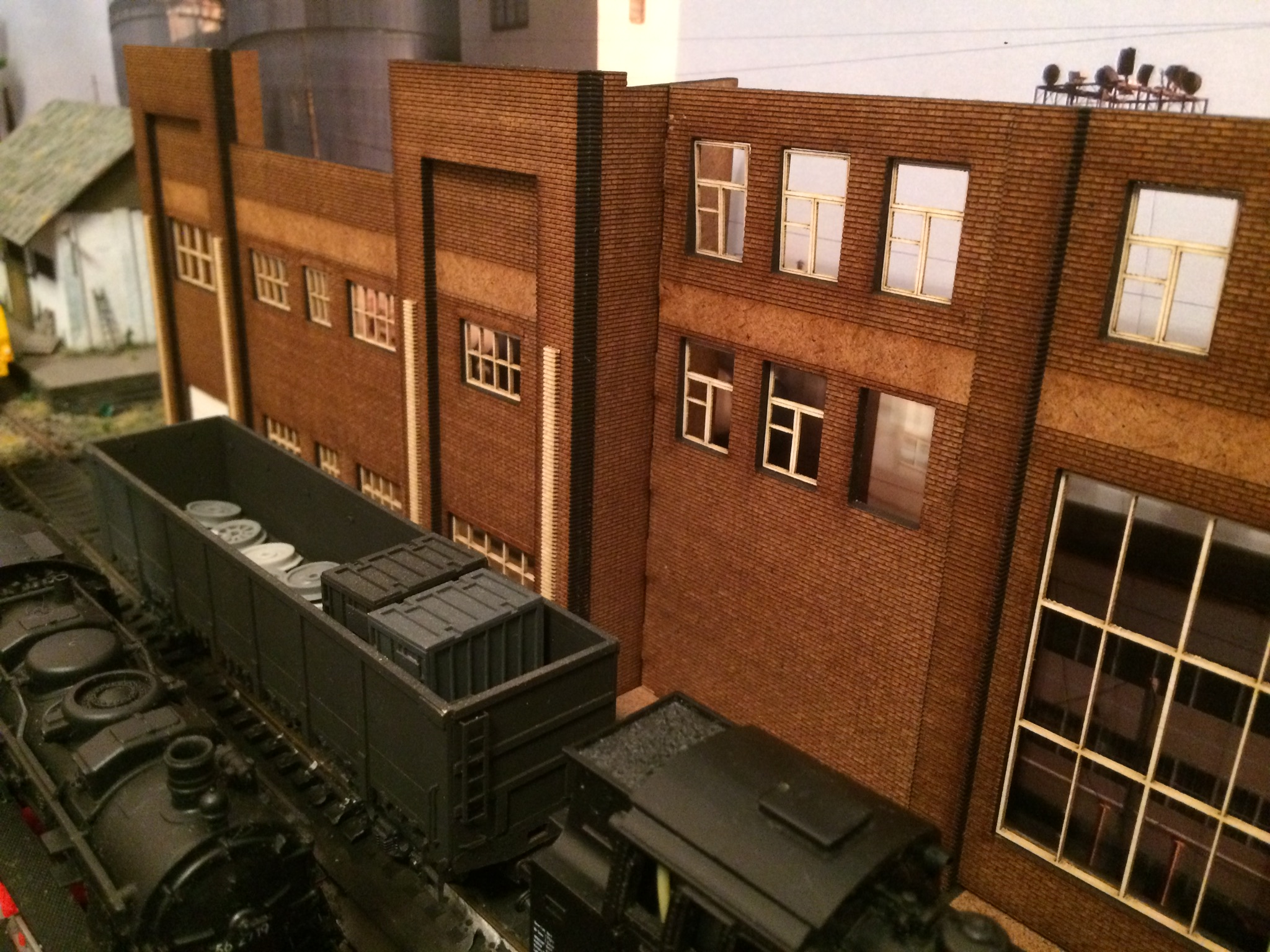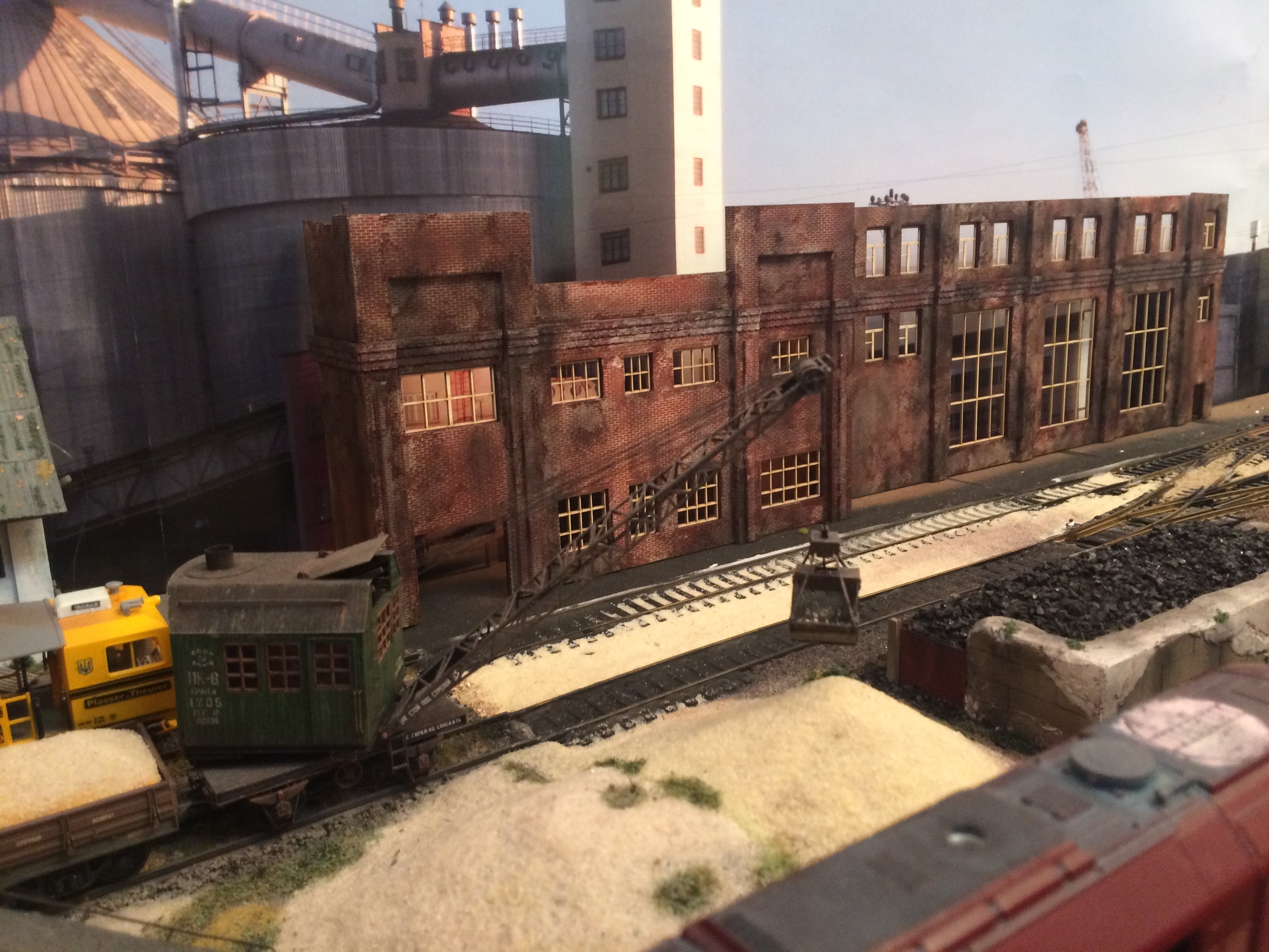 Володя, сарайчик, это спонтанная установка будки, которую планировал на платформу буферную к крану. Прижилась хорошо в том месте. На фото просто показал лёгкое озеленение округи у будки )))) Пакгауз, это белое здание, постройку которого, я одним из первых описывал в теме. Стоит левее фасада, который сейчас строю. Конфликтует этот пакгауз, с общей идеей макета на данный момент.