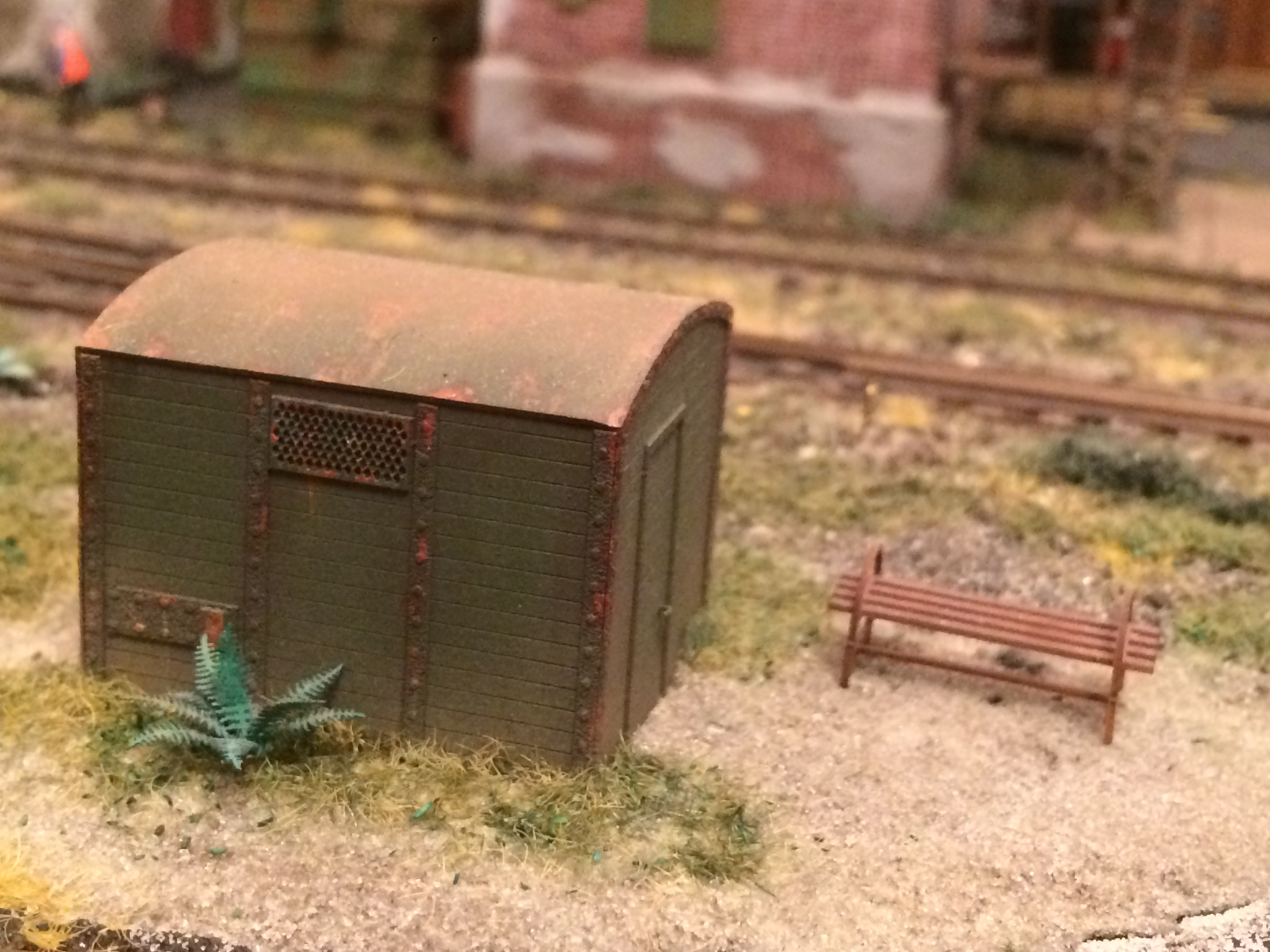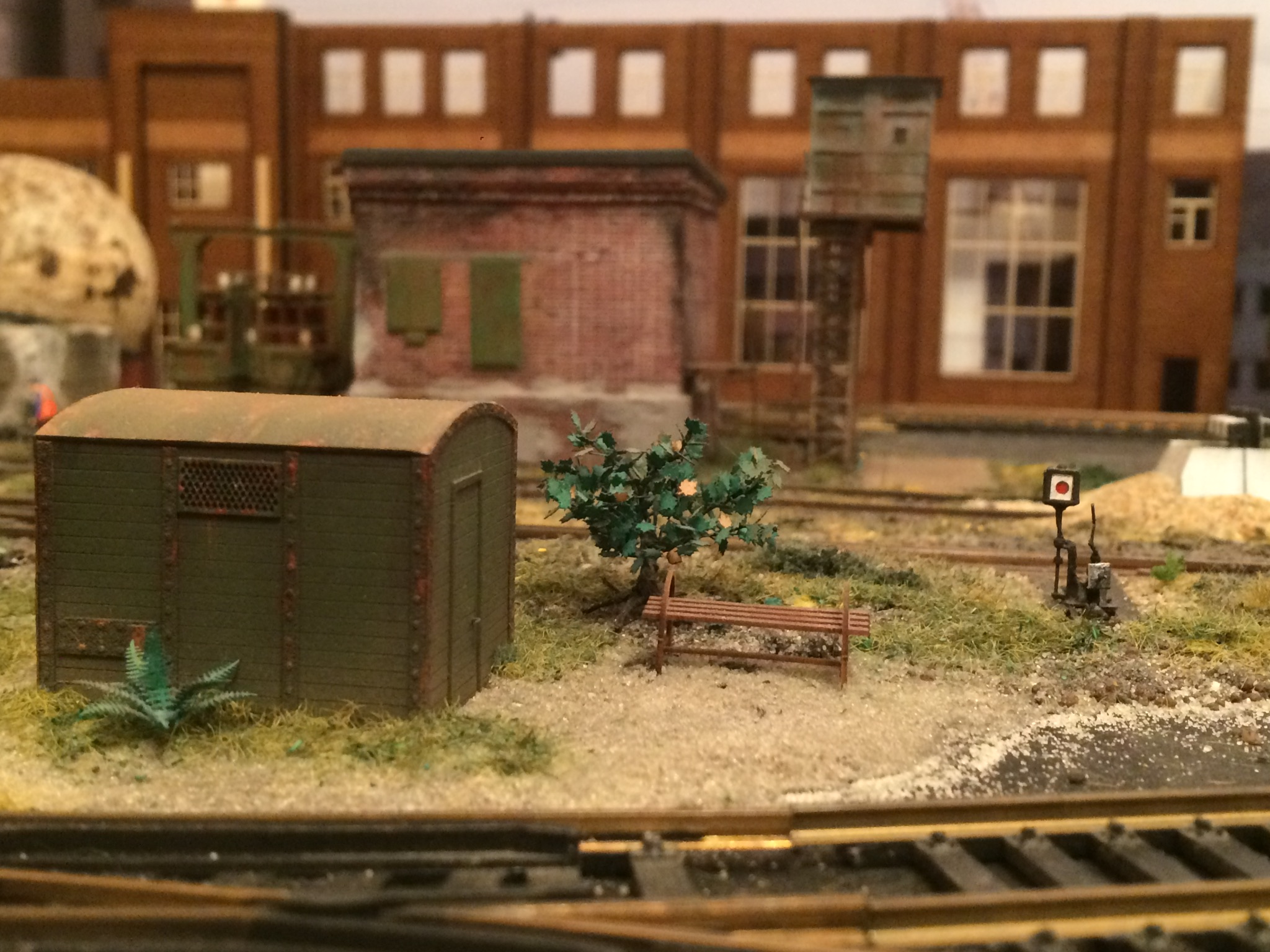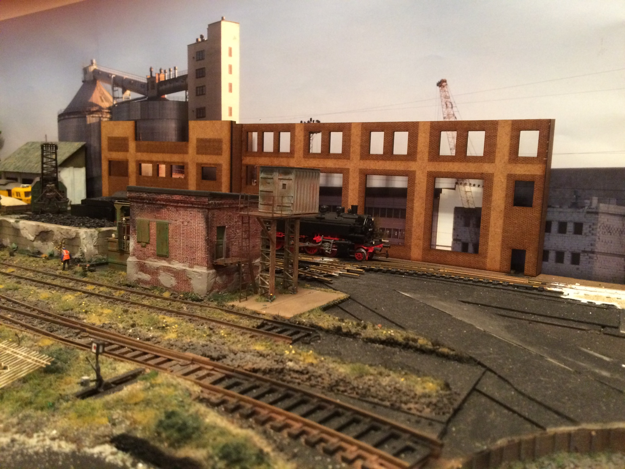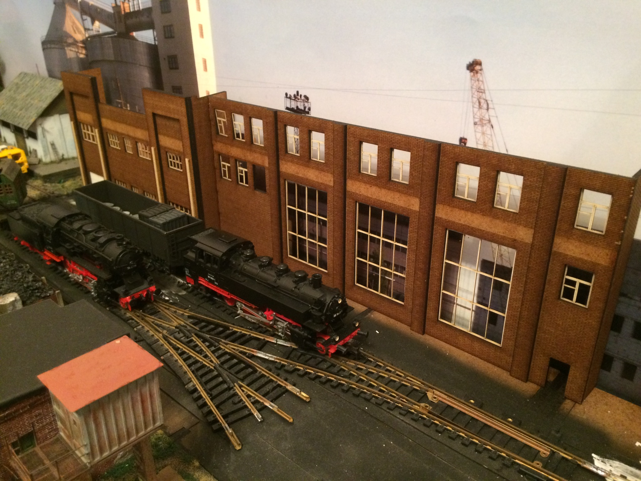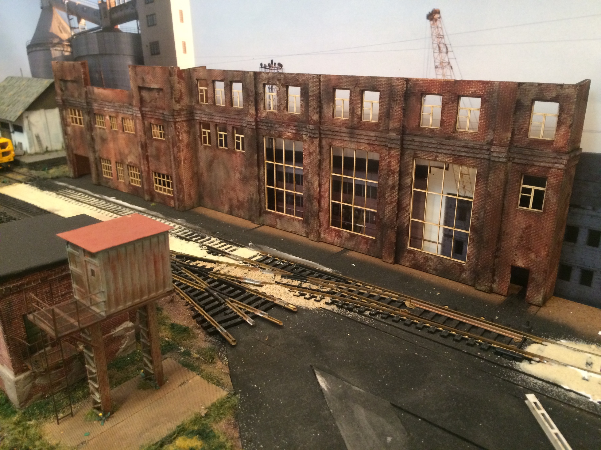 Володя, сарайчик, это спонтанная установка будки, которую планировал на платформу буферную к крану. Прижилась хорошо в том месте. На фото просто показал лёгкое озеленение округи у будки )))) Пакгауз, это белое здание, постройку которого, я одним из первых описывал в теме. Стоит левее фасада, который сейчас строю. Конфликтует этот пакгауз, с общей идеей макета на данный момент.
