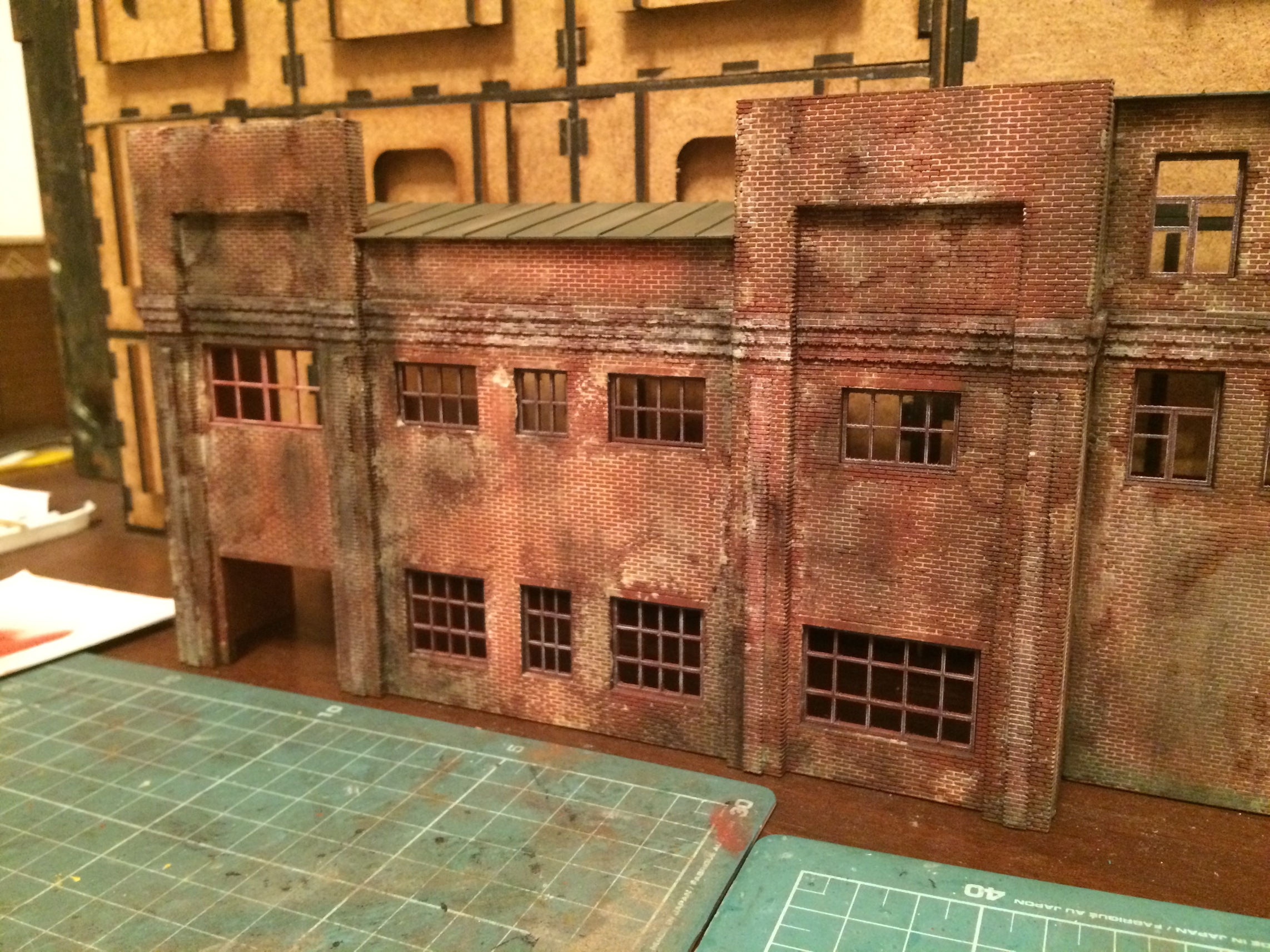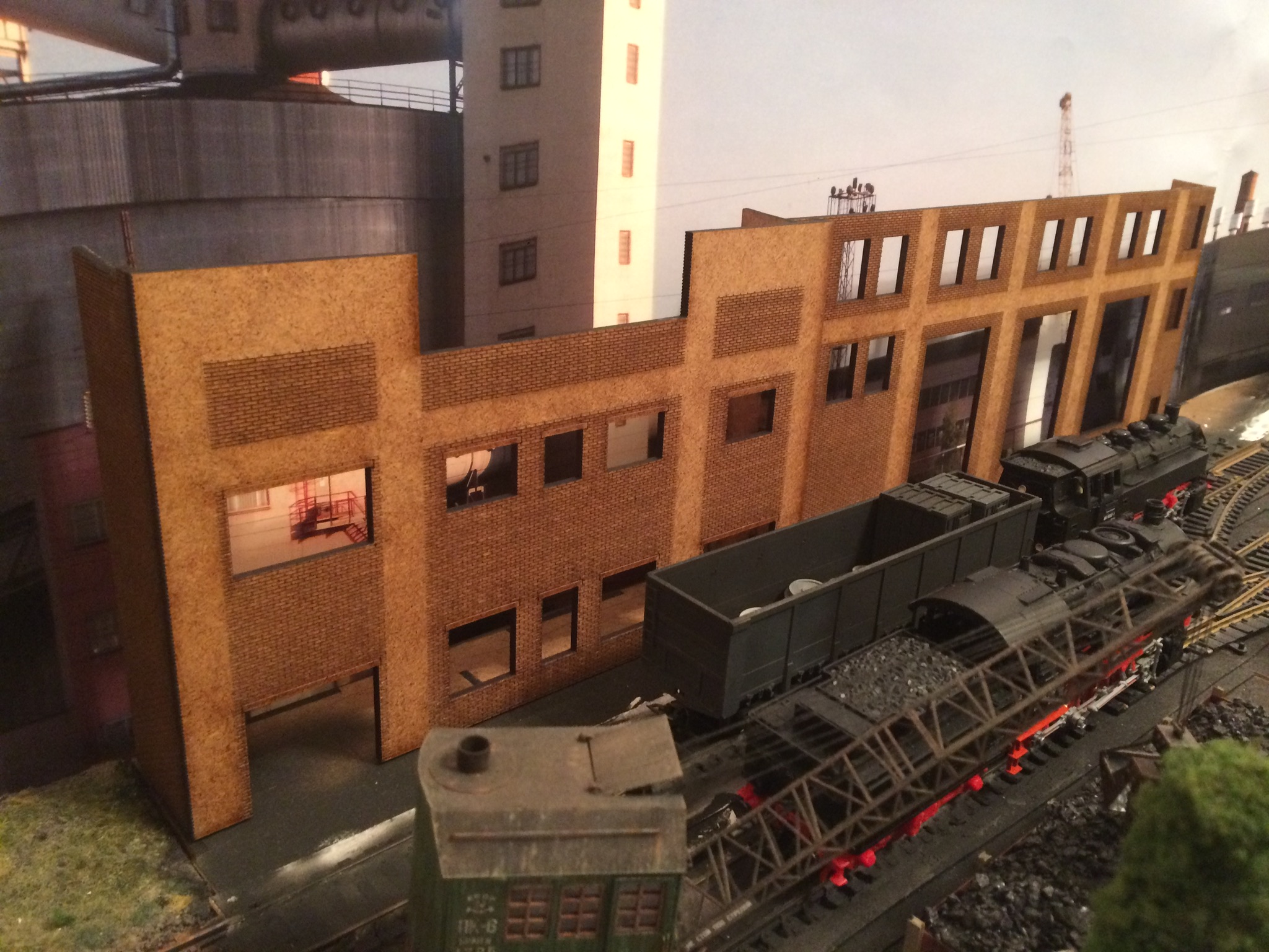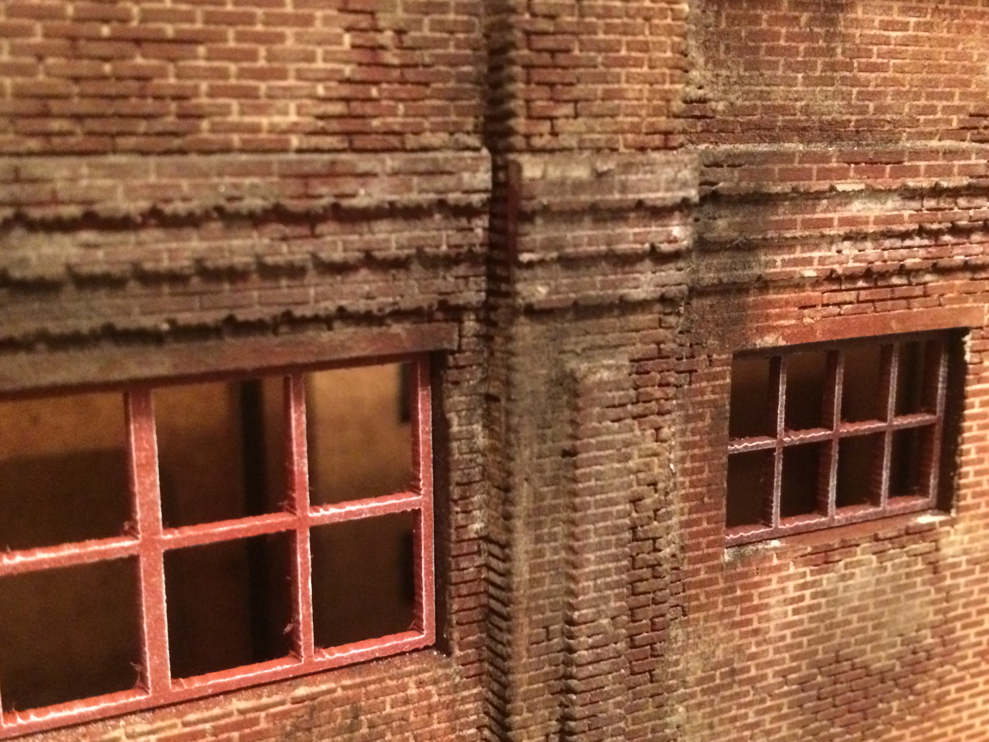 Задул всё кирпичное. Предварительно собрал одностойловое депо. Его и фасад успел затонировать. На фото ощущается перезагаженность. В живую воспринимается совершенно по другому. Не знаю почему так на фото выходит. Как закончу, переснято на фотоаппарат попробую. Может выйдет более внятно.