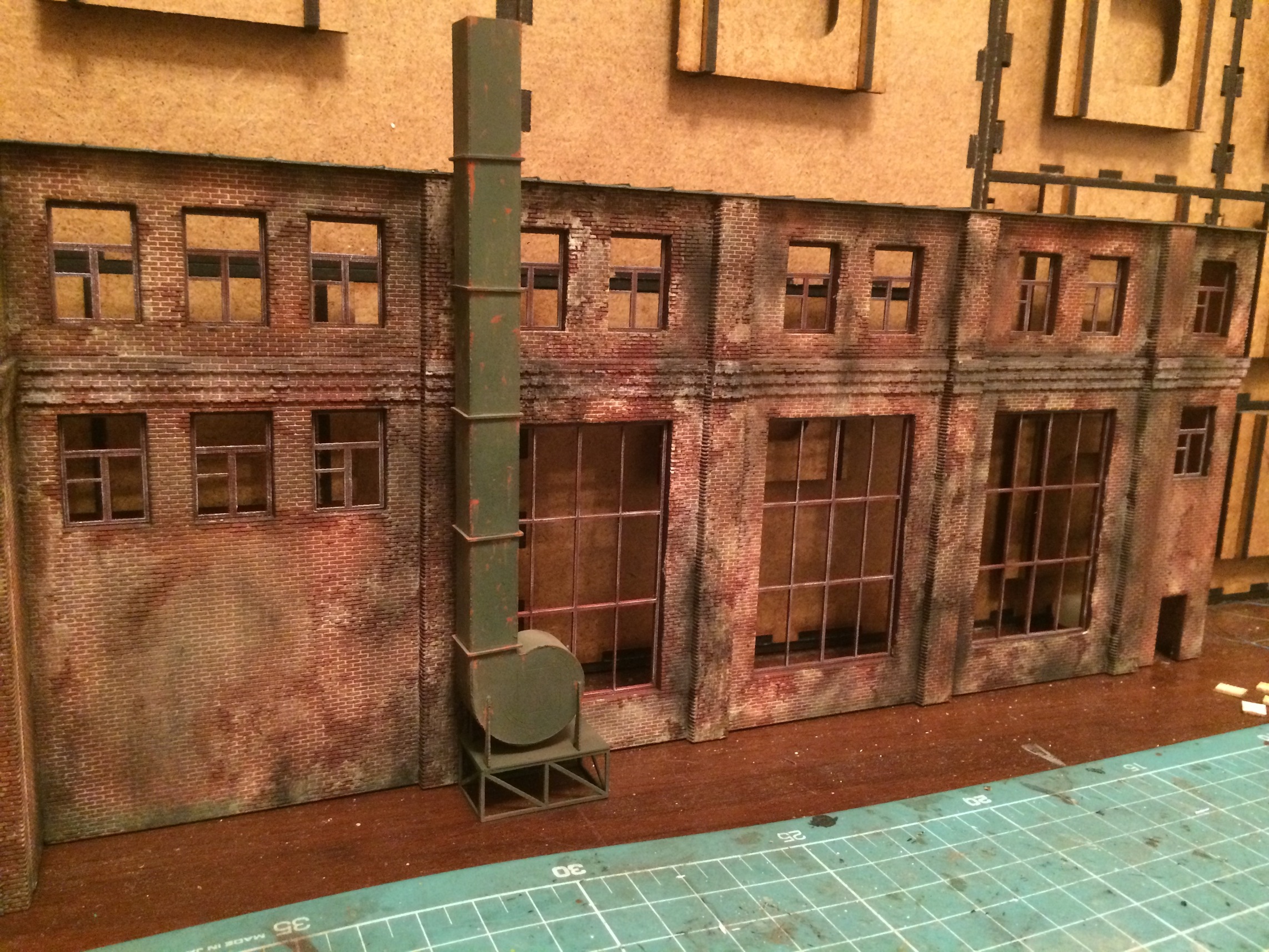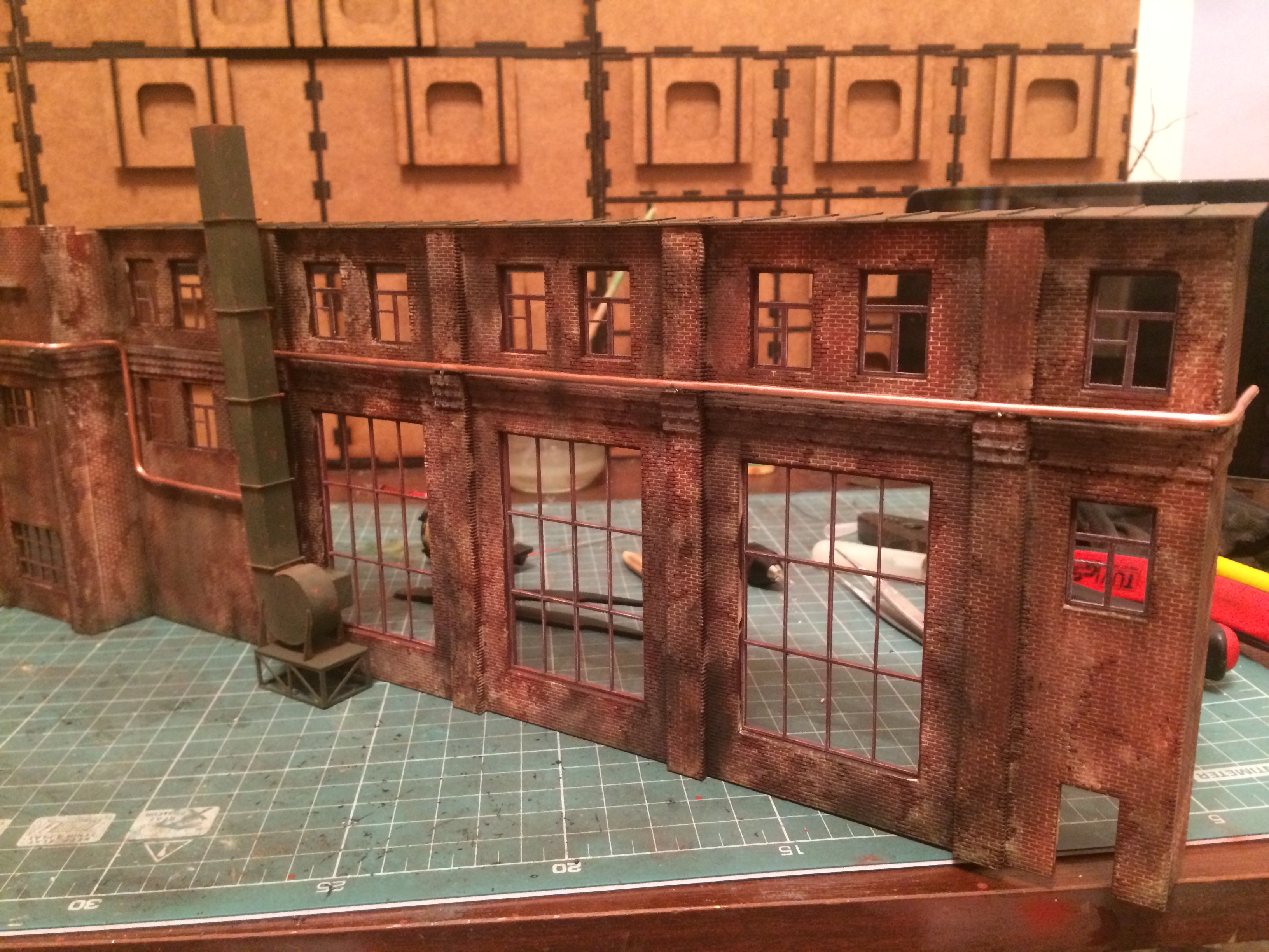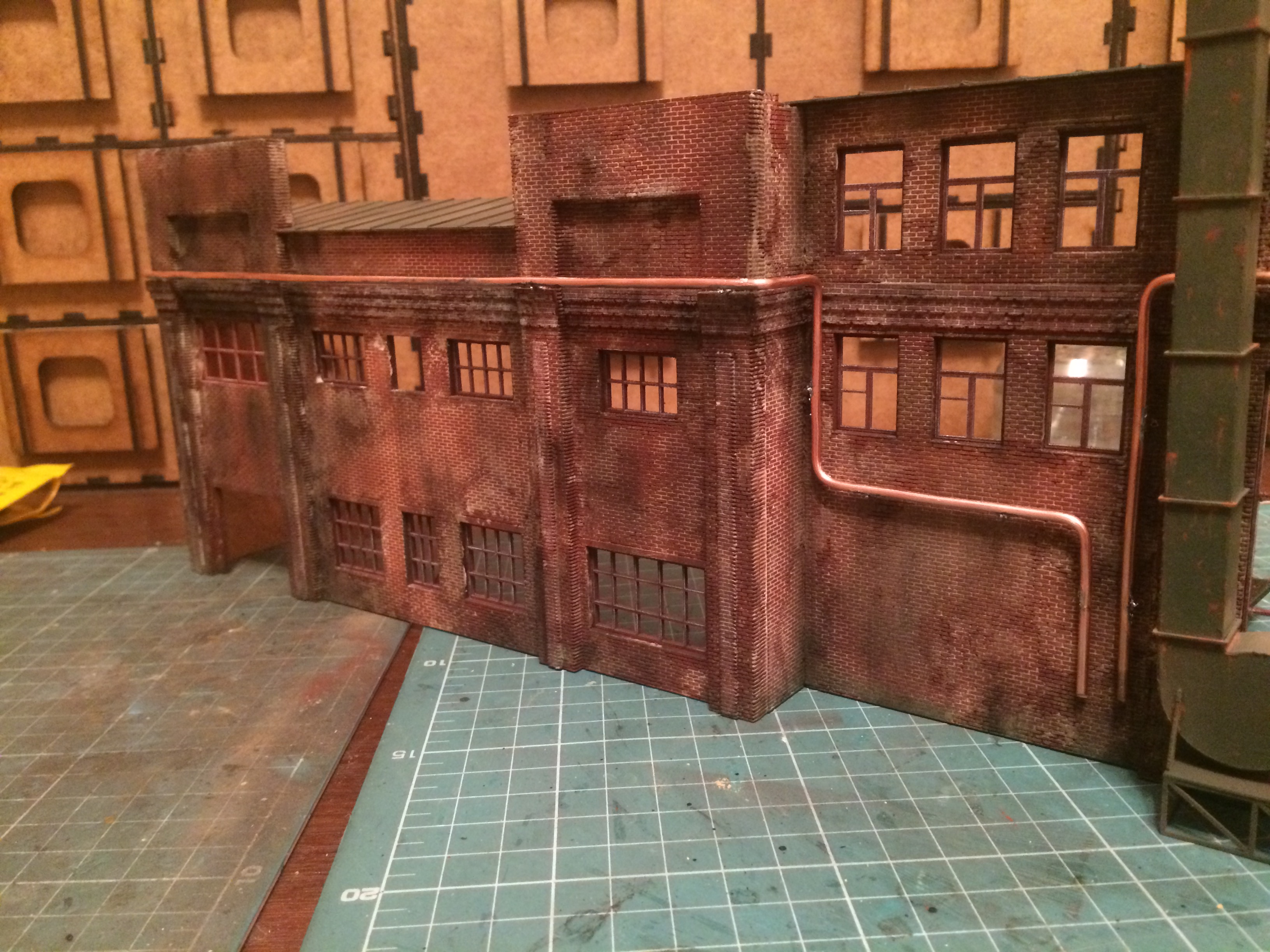 Задул всё кирпичное. Предварительно собрал одностойловое депо. Его и фасад успел затонировать. На фото ощущается перезагаженность. В живую воспринимается совершенно по другому. Не знаю почему так на фото выходит. Как закончу, переснято на фотоаппарат попробую. Может выйдет более внятно.