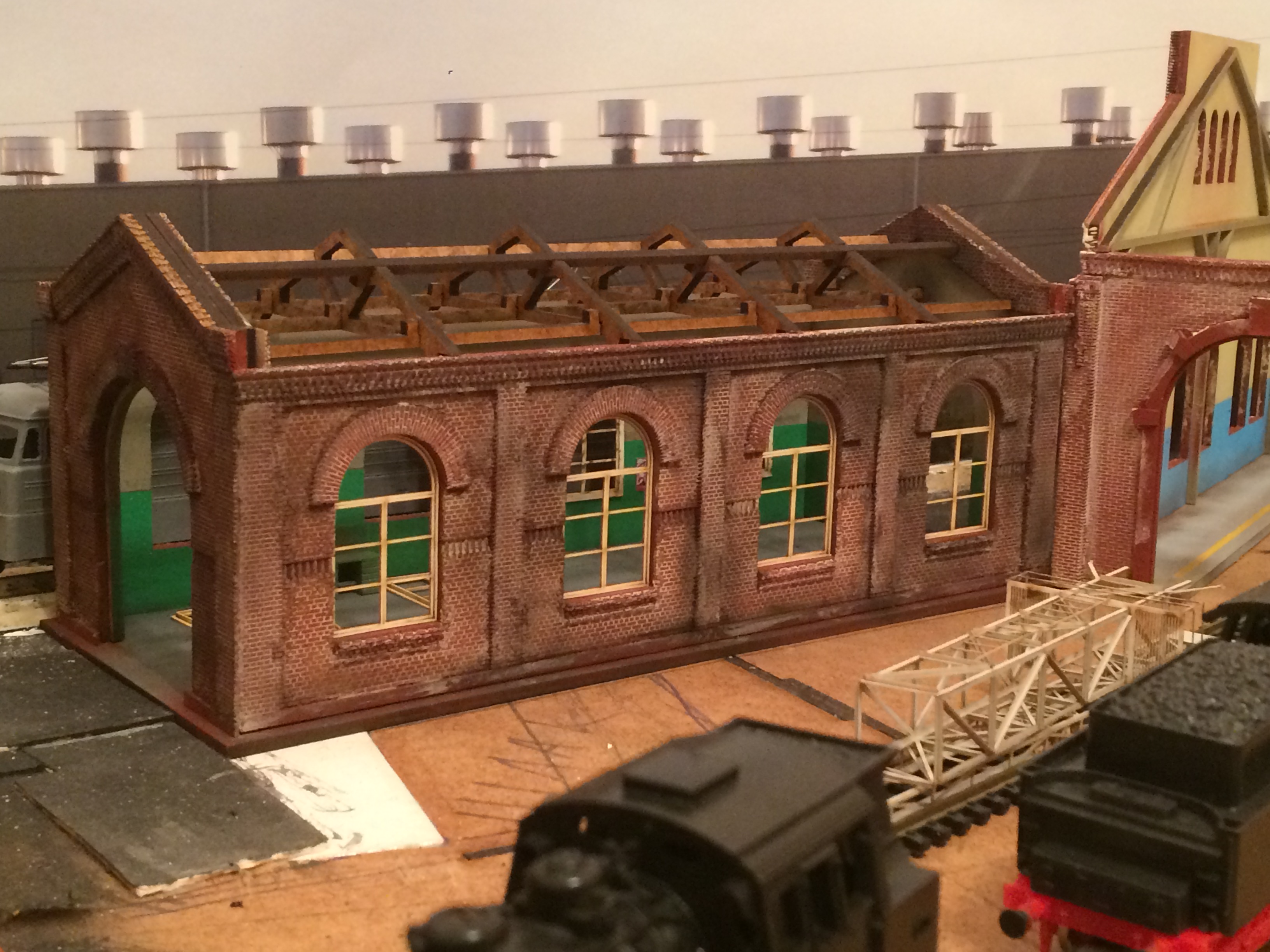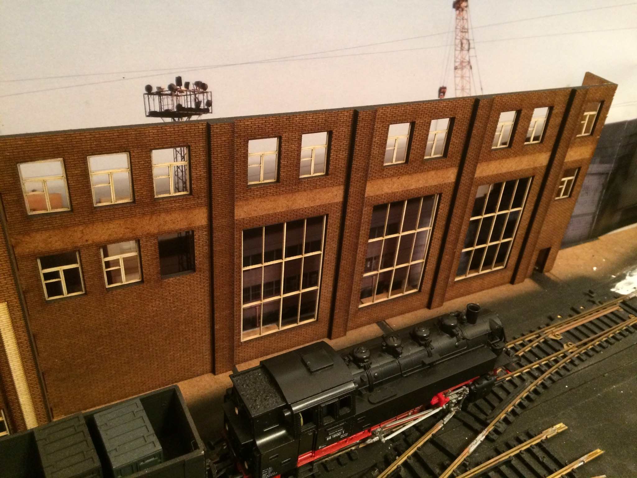 По самому макету, не было времени чем-либо заниматься. Потихоньку начал строительство фасада здания, под задник. Депо я там не хочу ставить. Мало места, чтоб даже сам фасад гармонично воткнуть и облагородить. Остановил выбор на каких-то мастерских, как мне кажется, с депо Октябрь, в Харькове. Мне кажется, что образ выбран удачно. А после оформления и навески разной мелочи, здание должно заиграть.