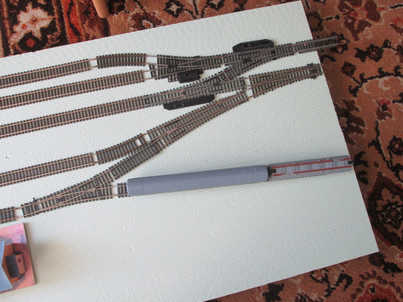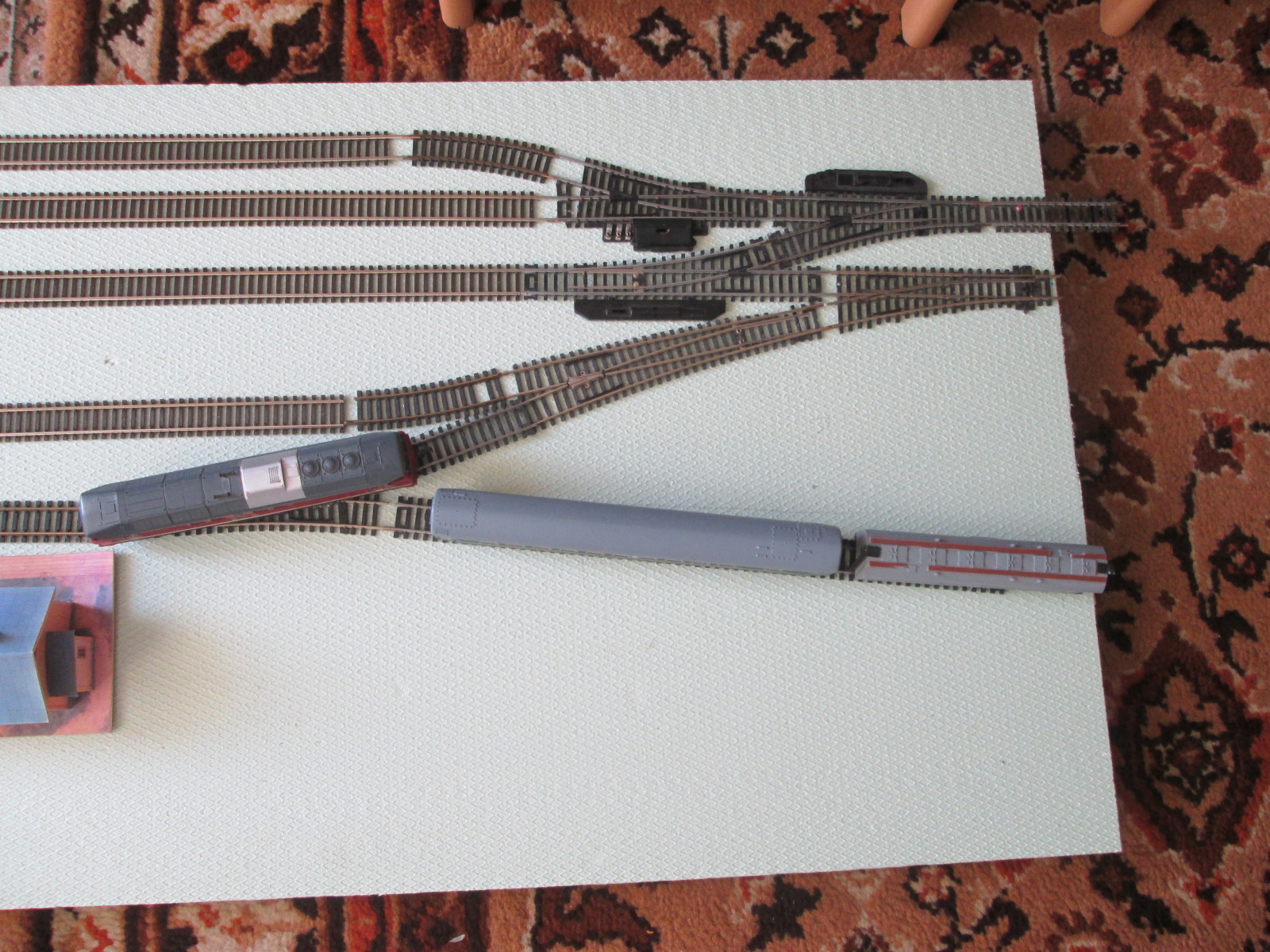 У меня был опыт использования подобного стрелочного перекрестия (да простят меня гуру терминологии), не могу сказать точно, какой фирмы, но по-моему Кляйнбан. На тот момент у меня было три локомотива, из них только один проходил эту стрелку более-менее нормально, остальные, могли либо внезапно на ней сойти, либо застрять из-за проблем с токосъемом. Причем один тепловоз, в основном сходил с рельс, а трехосный паровоз, в основном застревал. Так что, я решил от подобной стрелки отказаться, может у других фирм они лучше, но я уже рисковать не буду.