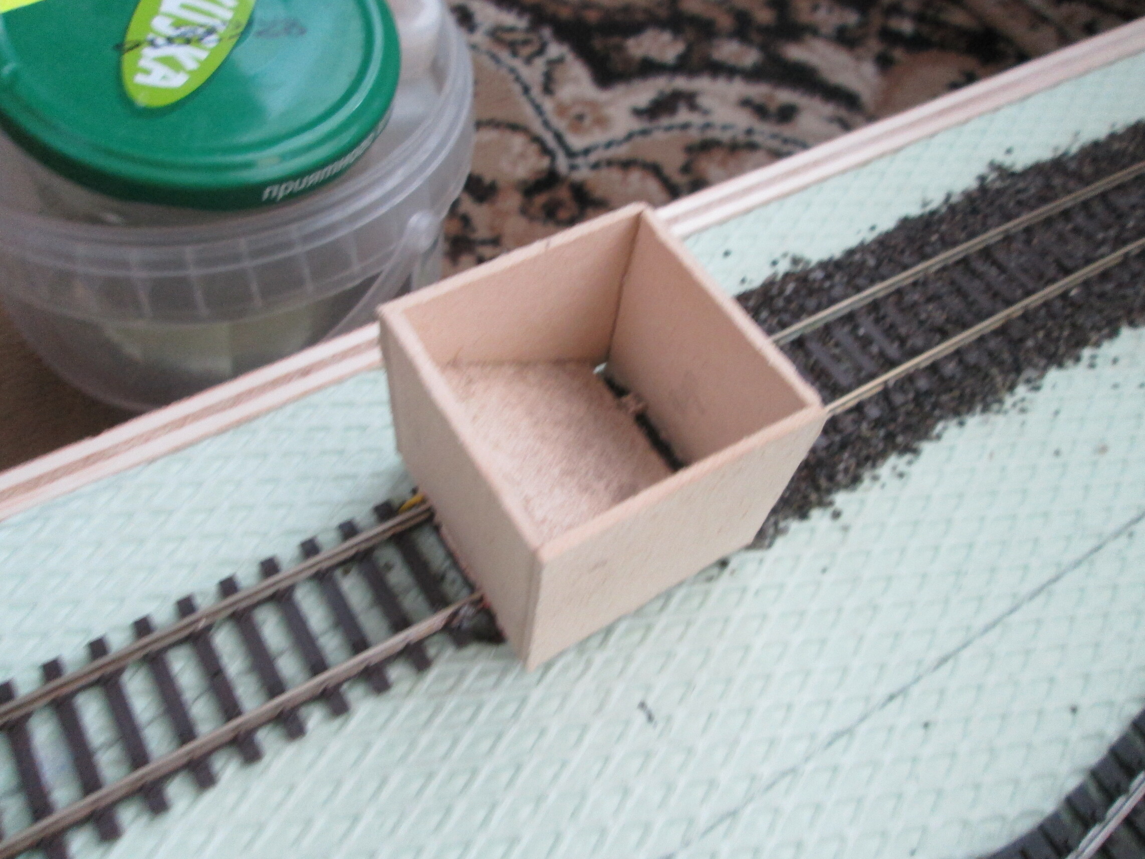 материал: фанера толщиной 10 мм и стиродур, основание первого модуля под вокзал готов