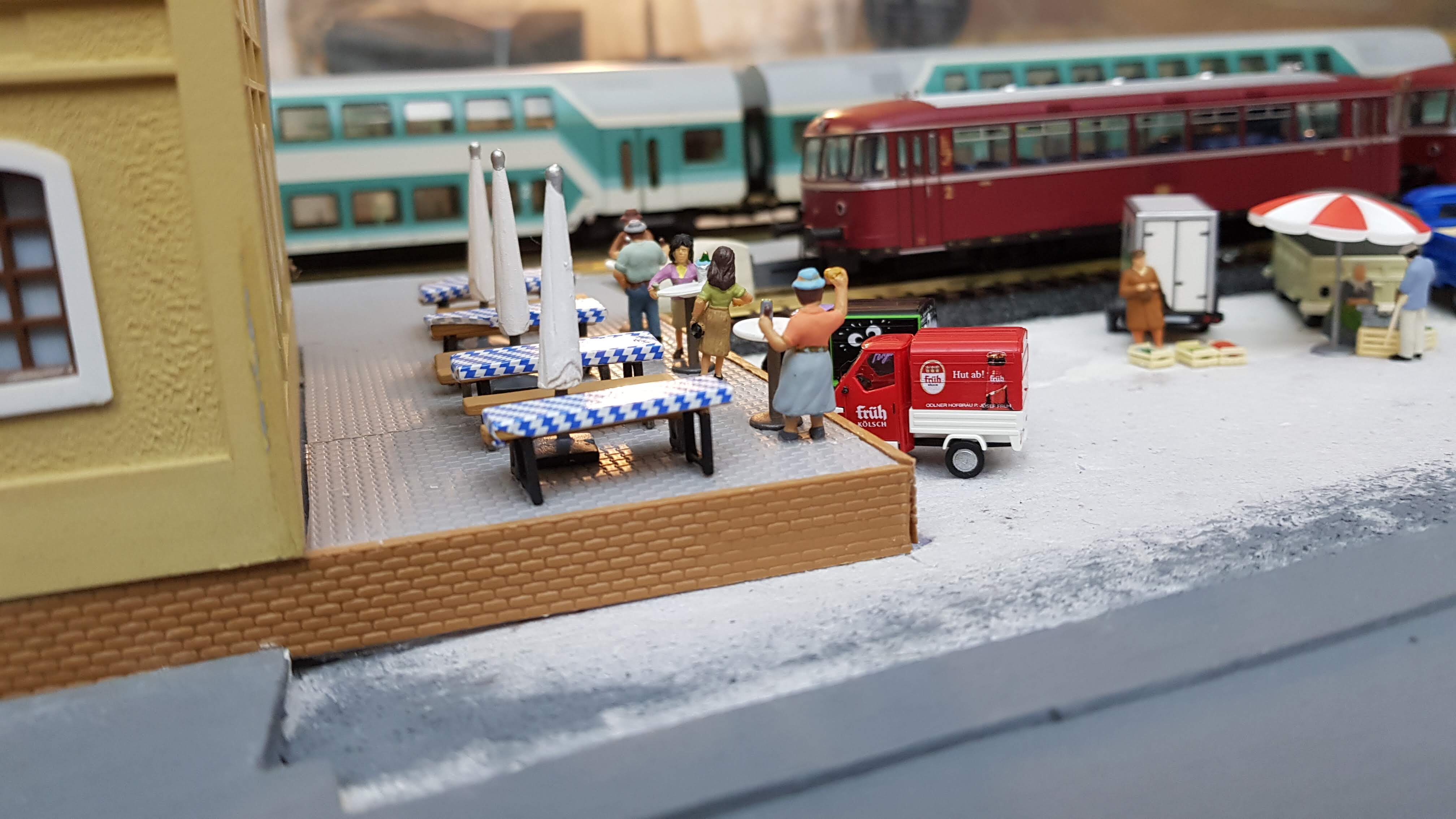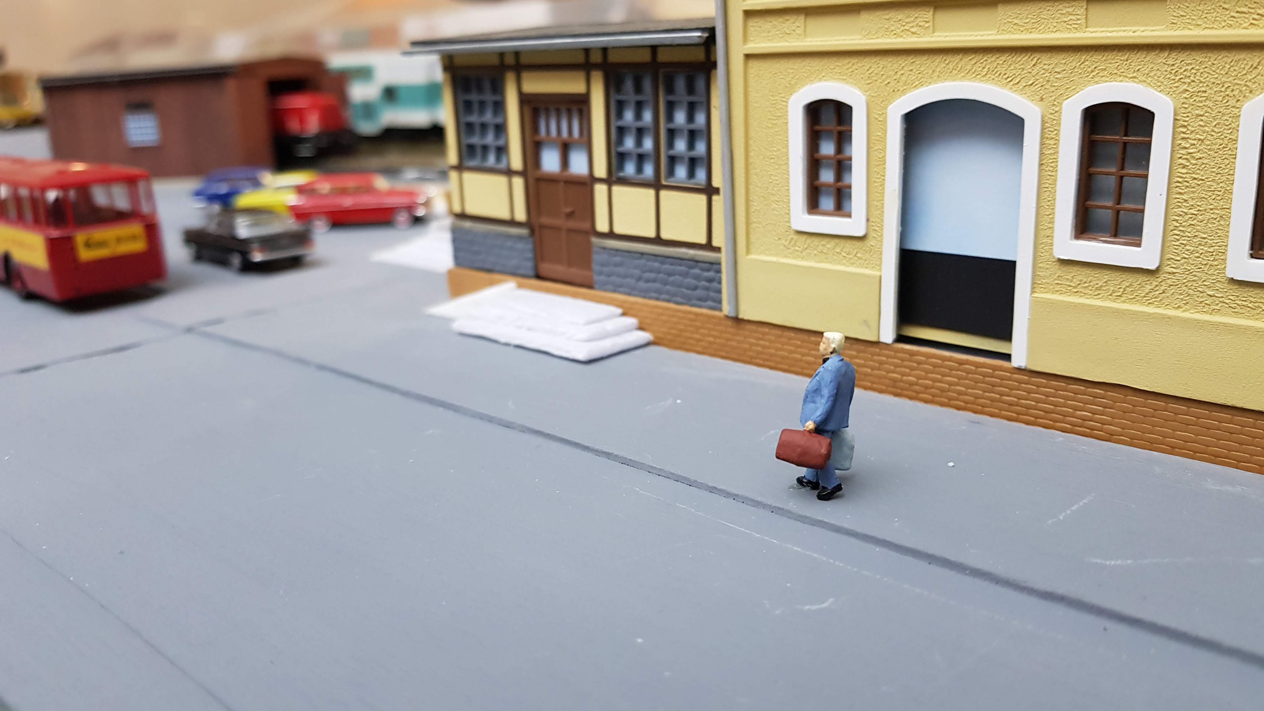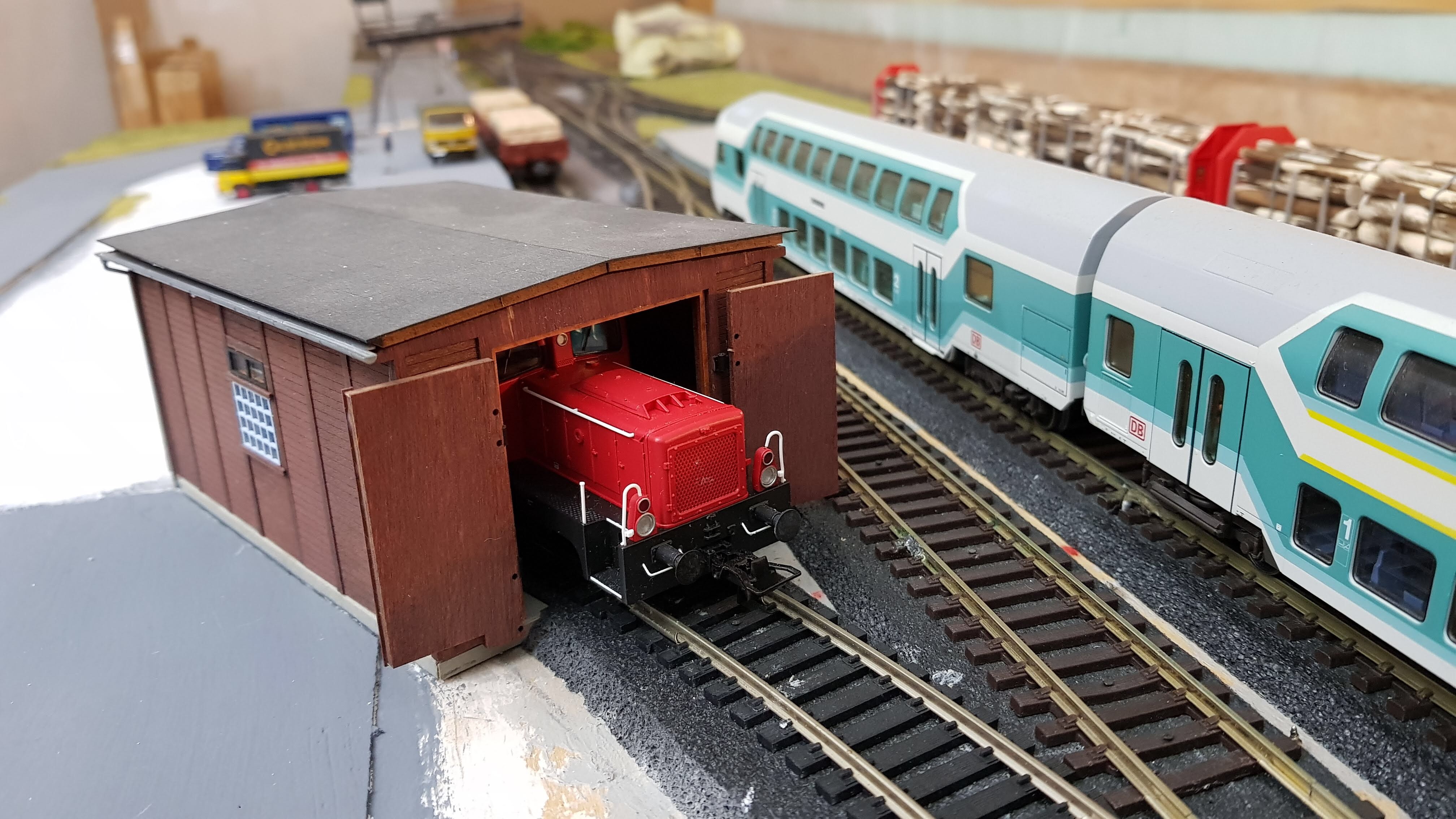 По другому не получится поставить депо, макет делается ещё и с расчетом на автомобильное движение, иначе не пройдут в повороте на рампу фуры.