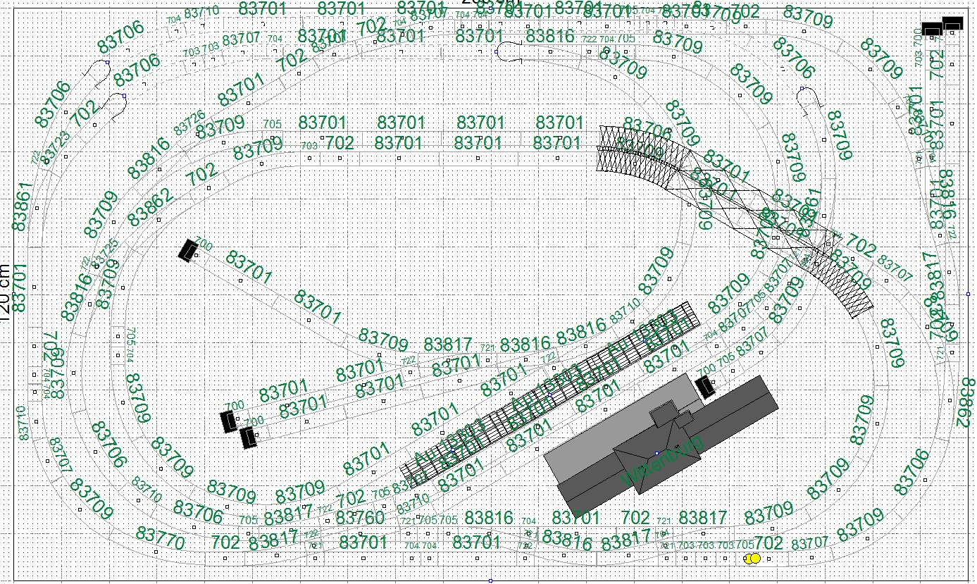 Возможны неожиданности (не самые приятные) в прохождении такого макета вашим подвижным составом. Кривые, подъемы, сближение поездов идущих на соседних путях желательно проверять испытаниями. К примеру, товарищ думал у себя сделать "восьмерку" на макете, с мостом на пересечении. Однако на выделенной площади получался довольно крутой подъем на мост, и почти весь подвижной состав начинал "шлифовать" рельсы. Пришлось для малых собирать обычный овал. Ваш "гоночный трек" в этом плане был гораздо лояльнее - радиусы довольно пологие, много прямых участков.больше витиеватости и неожиданностей.