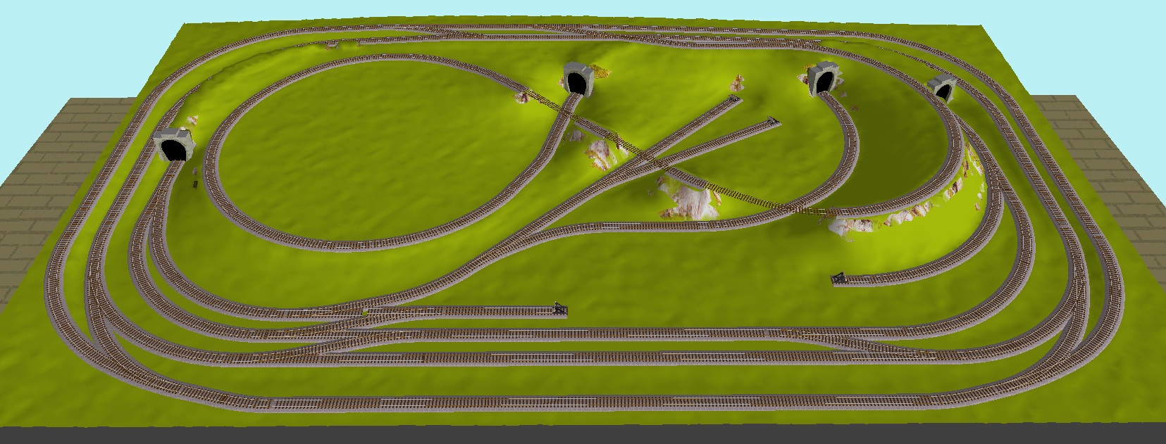 Теперь это 4 независимых кольца, по которым могут гонять 4 лока и даже если кто-то пойдет кушать или завтыкает в мульт, то ничего страшного не случиться, каждый на своем кольце. А если захочется маневров, то можно отточить мастерство на перекидывании локов между кольцами или на внутреннем кольце, где есть пространство для маневров.