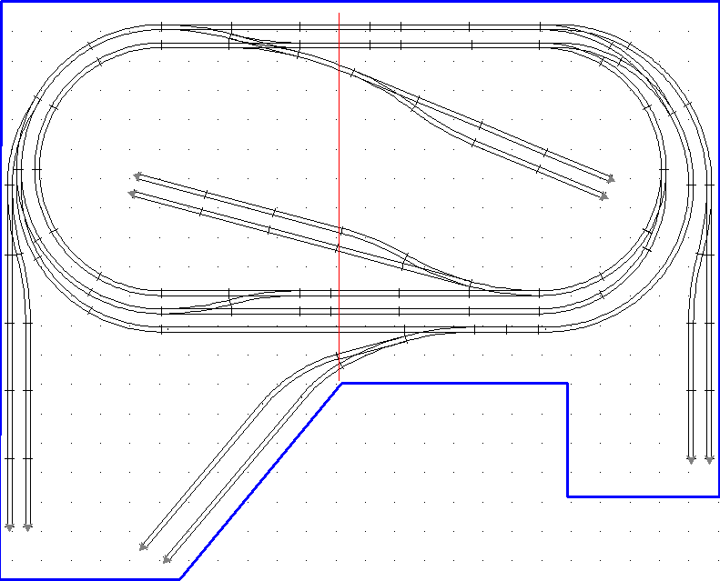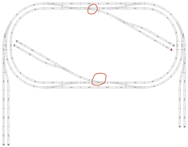 Изменил план макета. Добавил английскую стрелку. Но чтобы тупики не упирались во внутреннее кольцо, сделал выезд на них с помощью рельс r2 и r9. На сколько правильное данное решение? Если сделать две r9, придется сокращать тупики