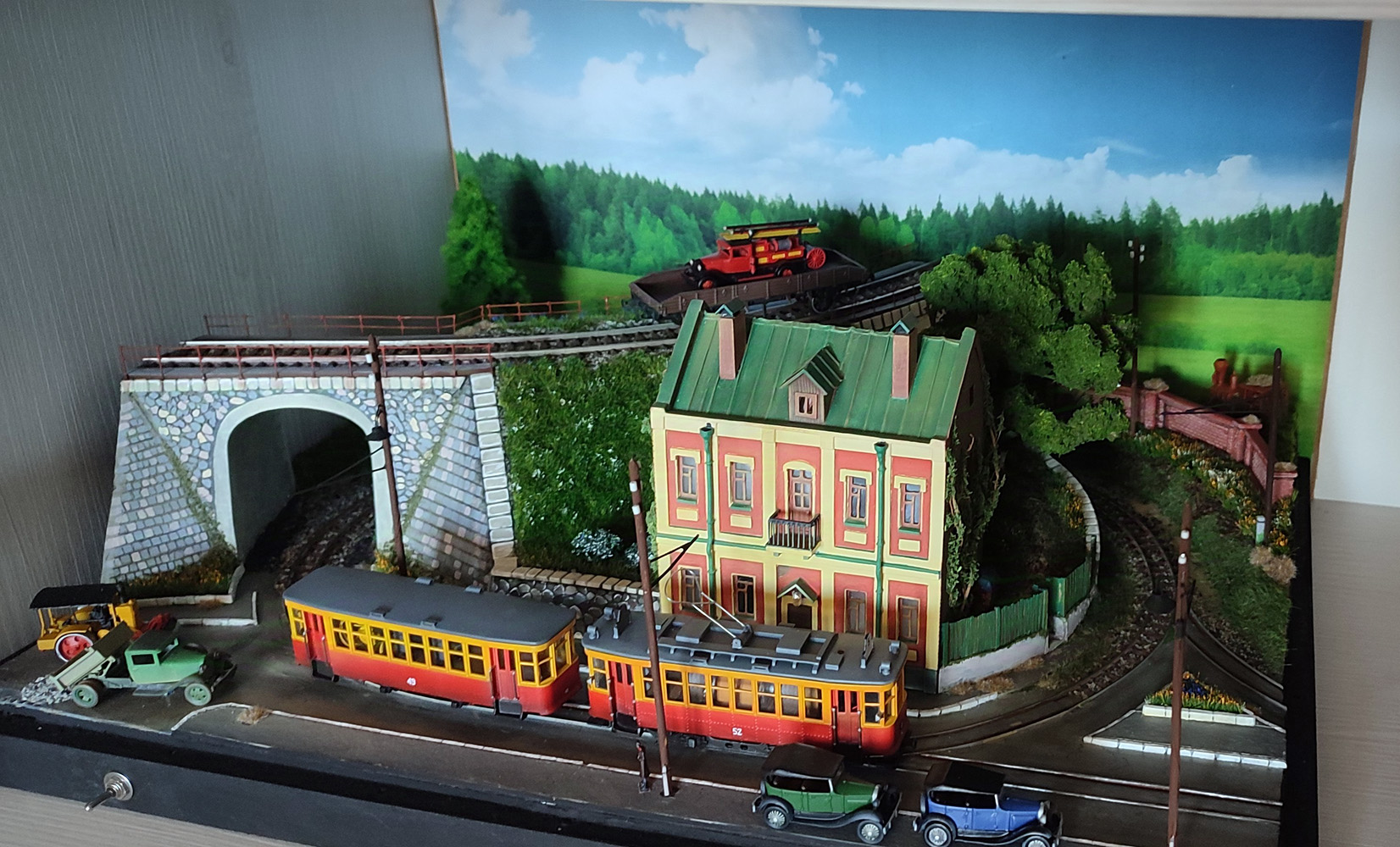 некоторое время назад youdmit выкладывал на формуме задник что он купил у китайцев. Я искал когда то тоже, но не подумал что он есть на Али. Поискал и выбрал такой же, как самый подходящий, только маленький. Макет стоит в книжном шкафу, поэтому делать и сбоку фон смысла мало, так как там створки дверцы. В жизни фон выглядит чуть лучше, чем на фото, так как почти полностью перекрывает поле зрения на макете