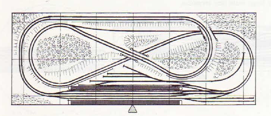 В перекуре, опять-же, были просмотрены имеющиеся заготовки путевых схем и остановился на варианте взятом, кажется, у англичан - точно сейчас не вспомню. Вроде того, что схема была для N, но это не столь важно. Общая концепция меня вполне устраивает - двухпутное движение на всём протяжении трассы. Путевое развитие станции переработаю, часть путей скрою в тоннелях. Всё это надо разместить на площади 3400х1350. По длине проблем нет, по ширине немного напряжённо, но получается. Ширину рамы больше делать нельзя потому, что тогда макет, при перемещении в юго-восточный угол, будет частично перекрывать проход в станочную и малярку.